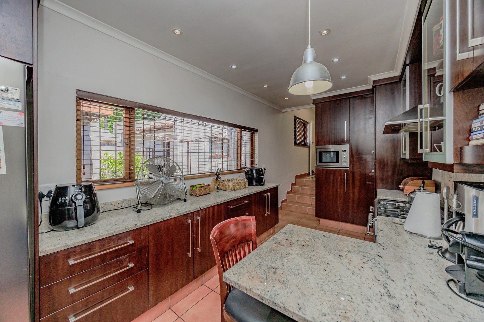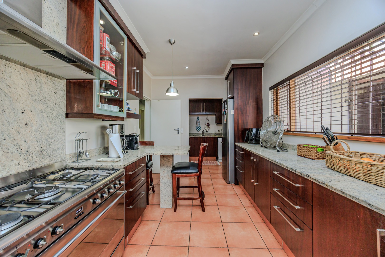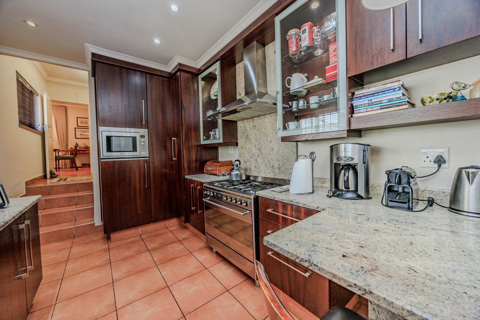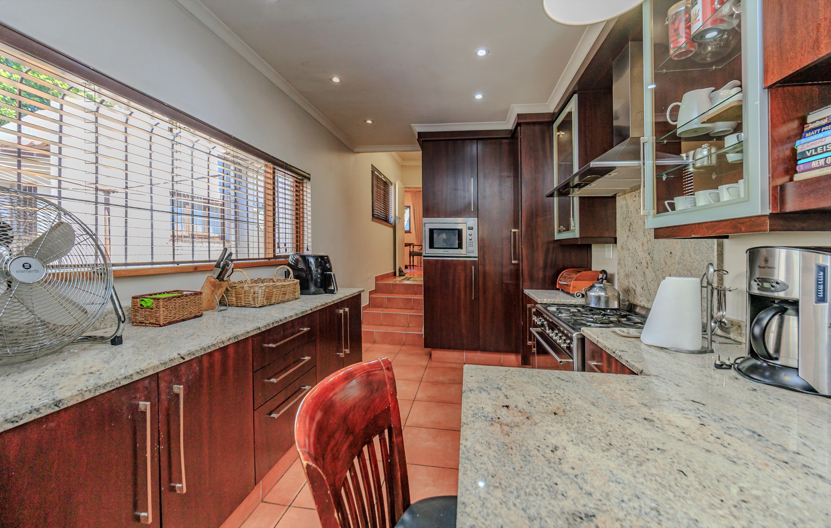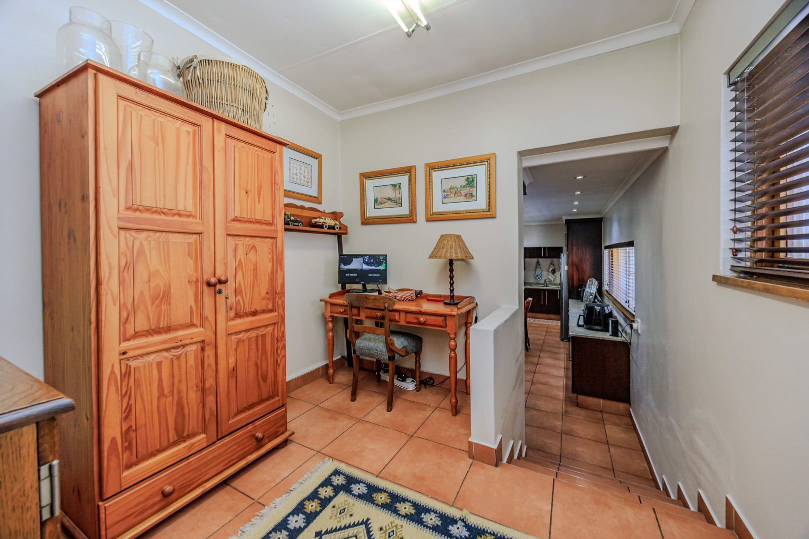 Adjacent to the modern kitchen, you'll find a sophisticated dining room, perfect for hosting dinner parties or enjoying family meals. The kitchen itself is a chef’s delight, with Smeg hob and built in microwave, offering a separate scullery and laundry room for added convenience. A cozy study nook located by the kitchen provides the perfect spot for homework or a home office.