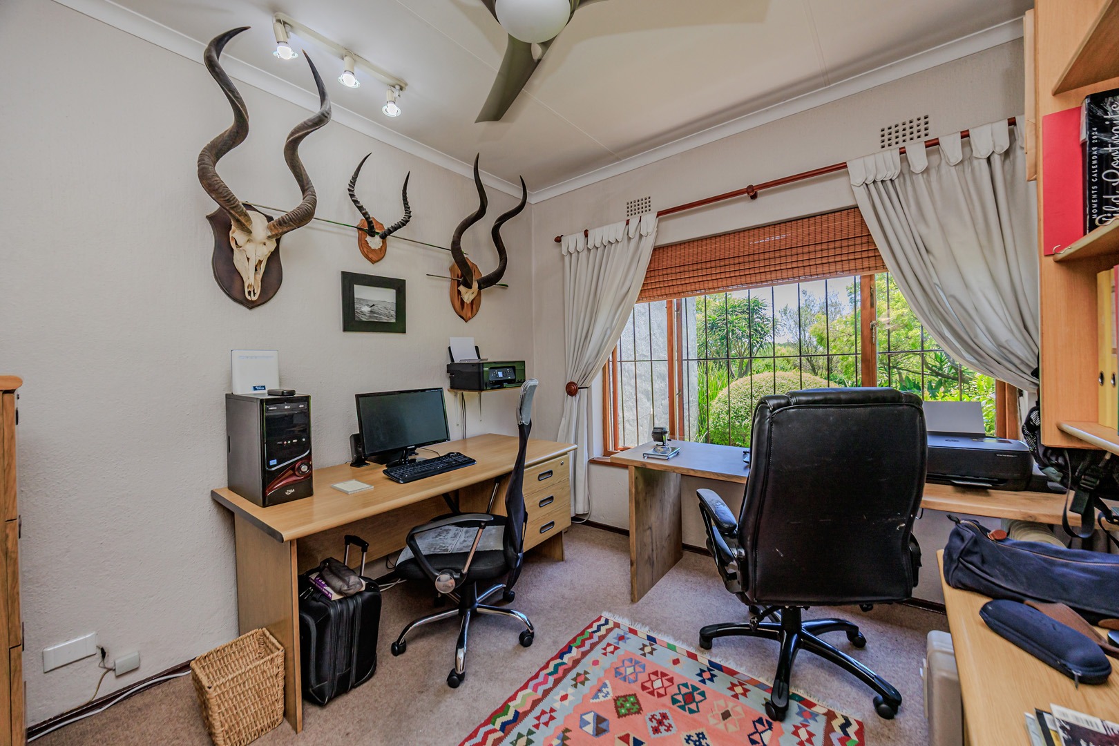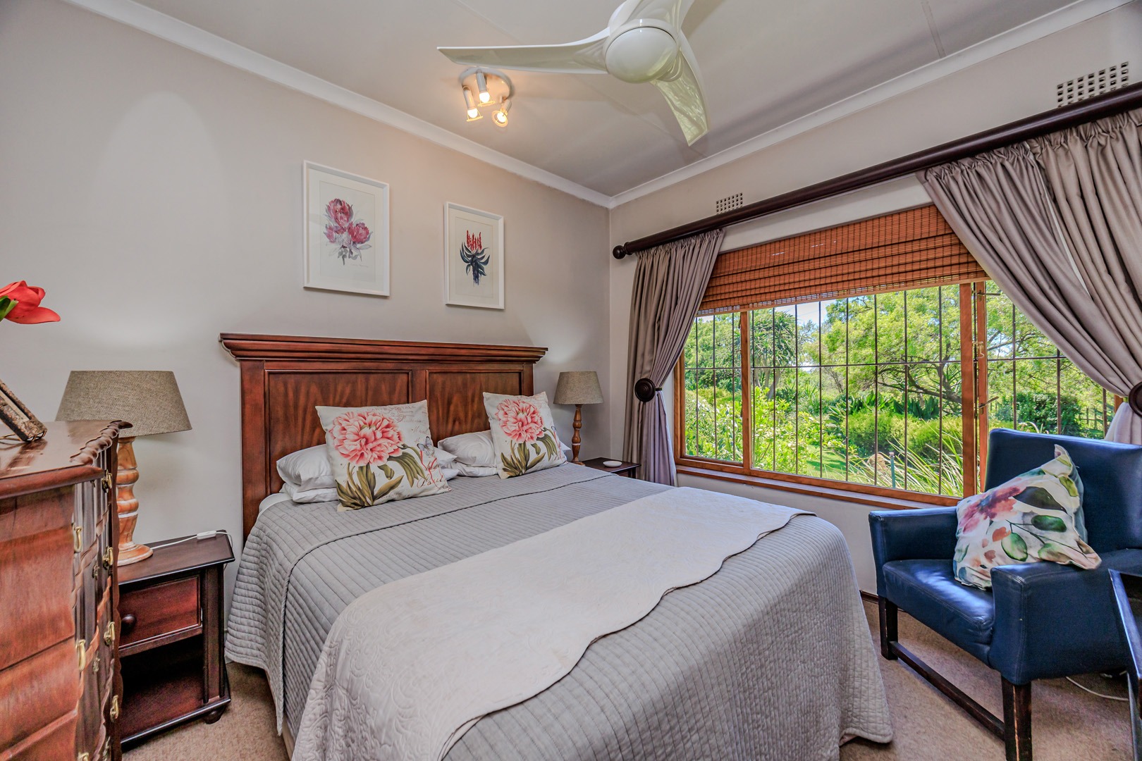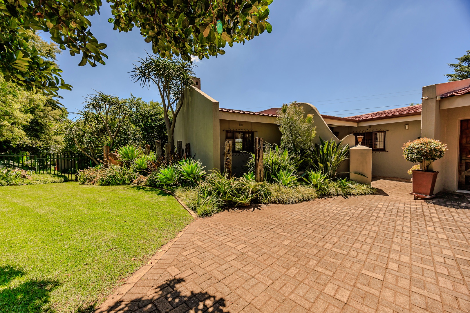 Parking is provided by three garages with direct access into the home as well as additional off street parking. Staff accommodation as well as additional storage space is also available. The garden is equipped with a borehole and water tank, along with a backup water tank for the home. The large stand offers a unique opportunity for subdivision and future development.