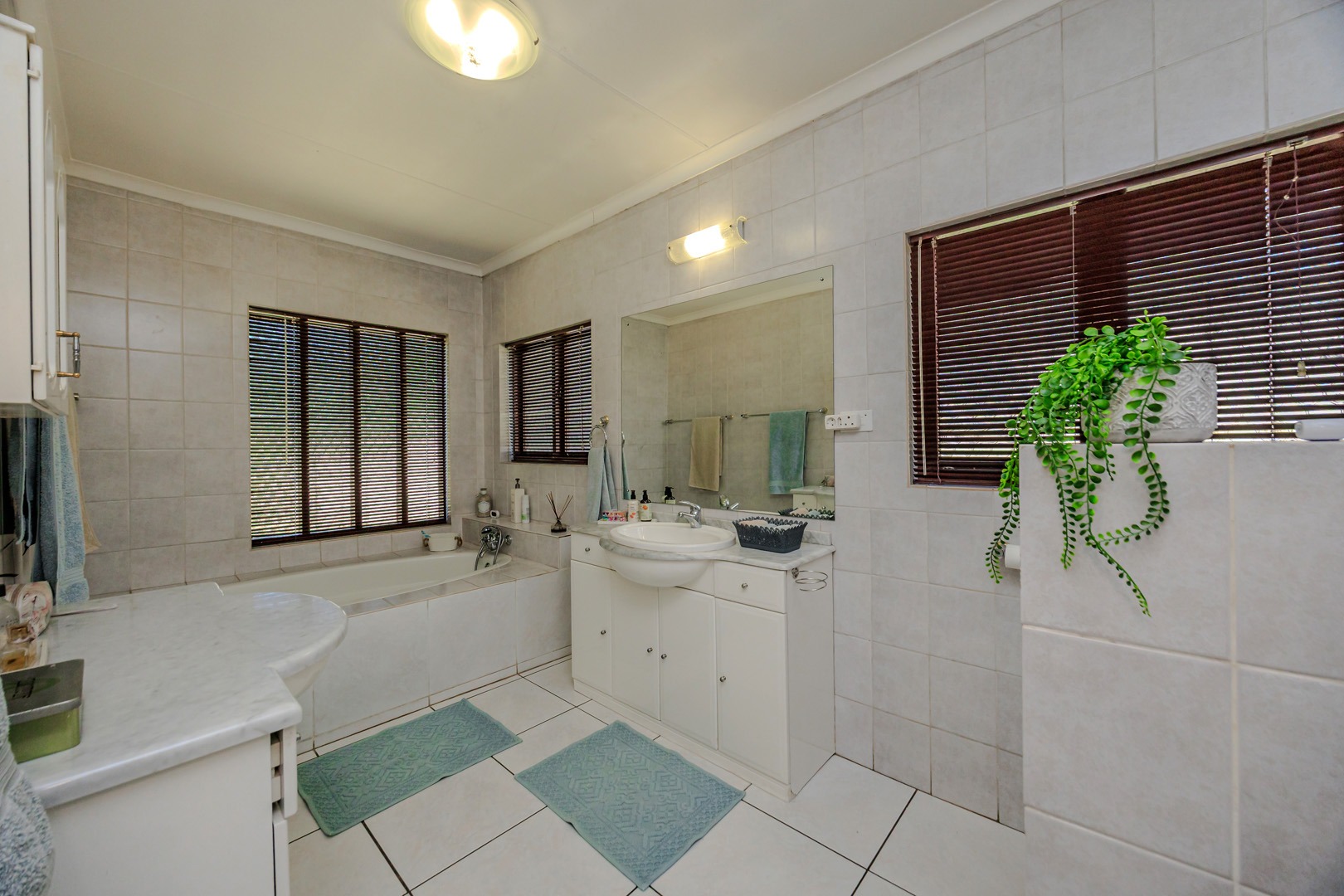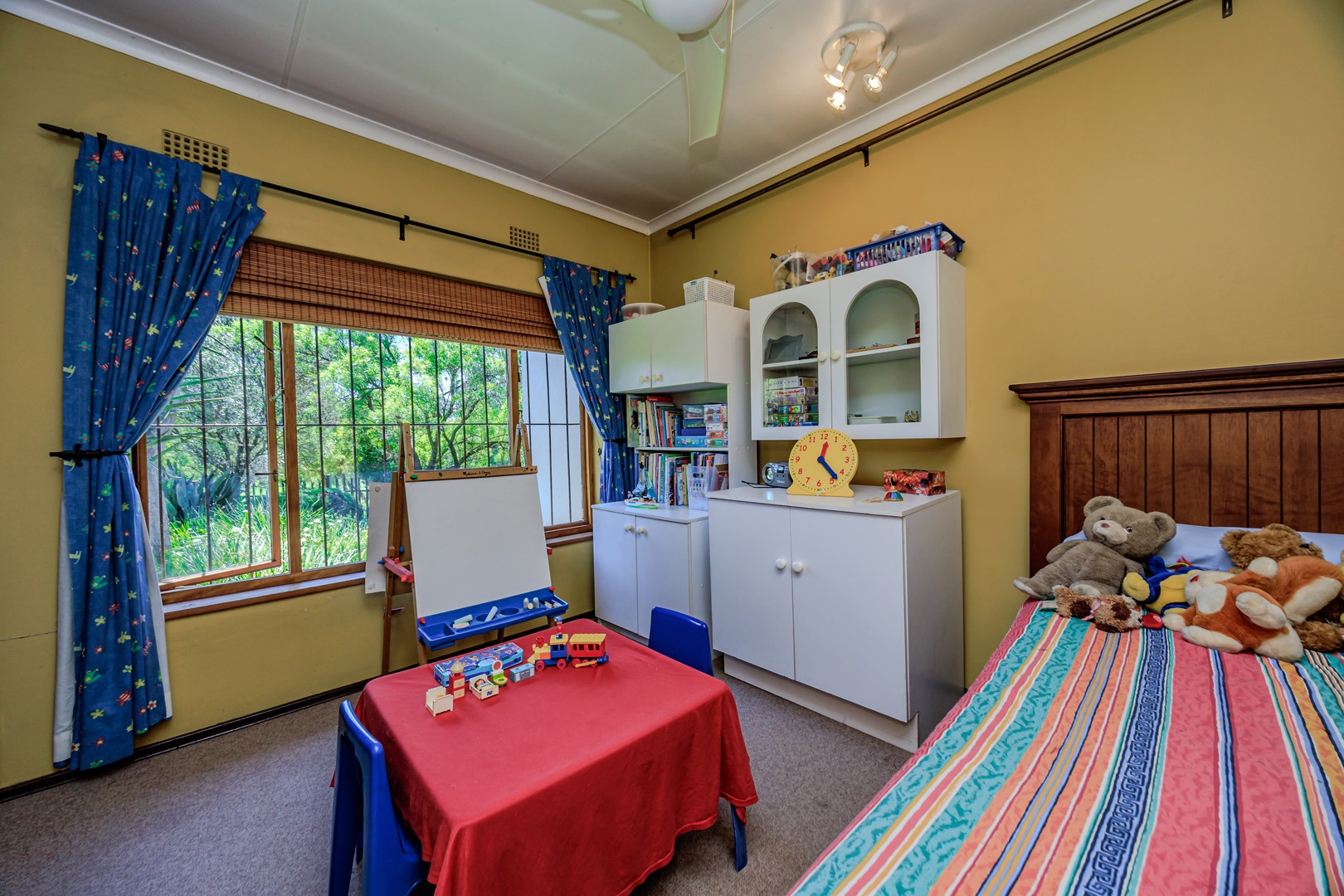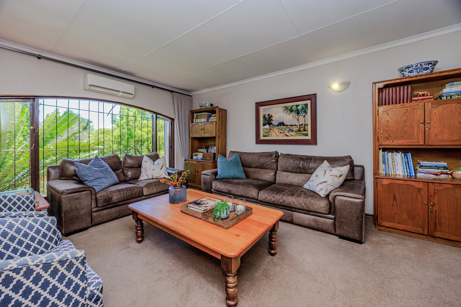 The home offers four spacious bedrooms, ensuring ample space for the whole family. The main suite is a private retreat, complete with air conditioning and an en-suite bathroom. The additional three bedrooms are serviced by a well-appointed family bathroom.