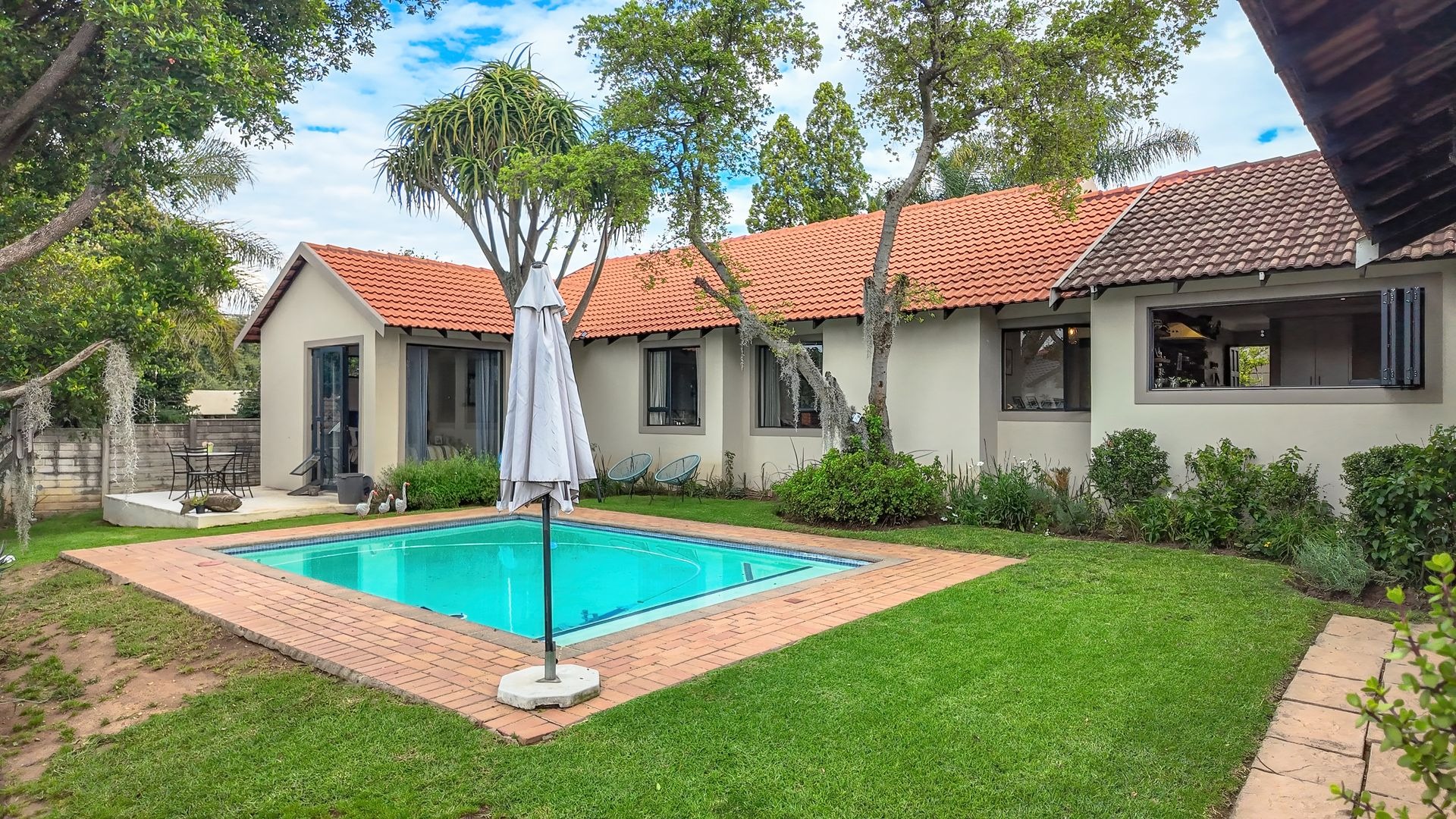 Mature garden and sparkling pool