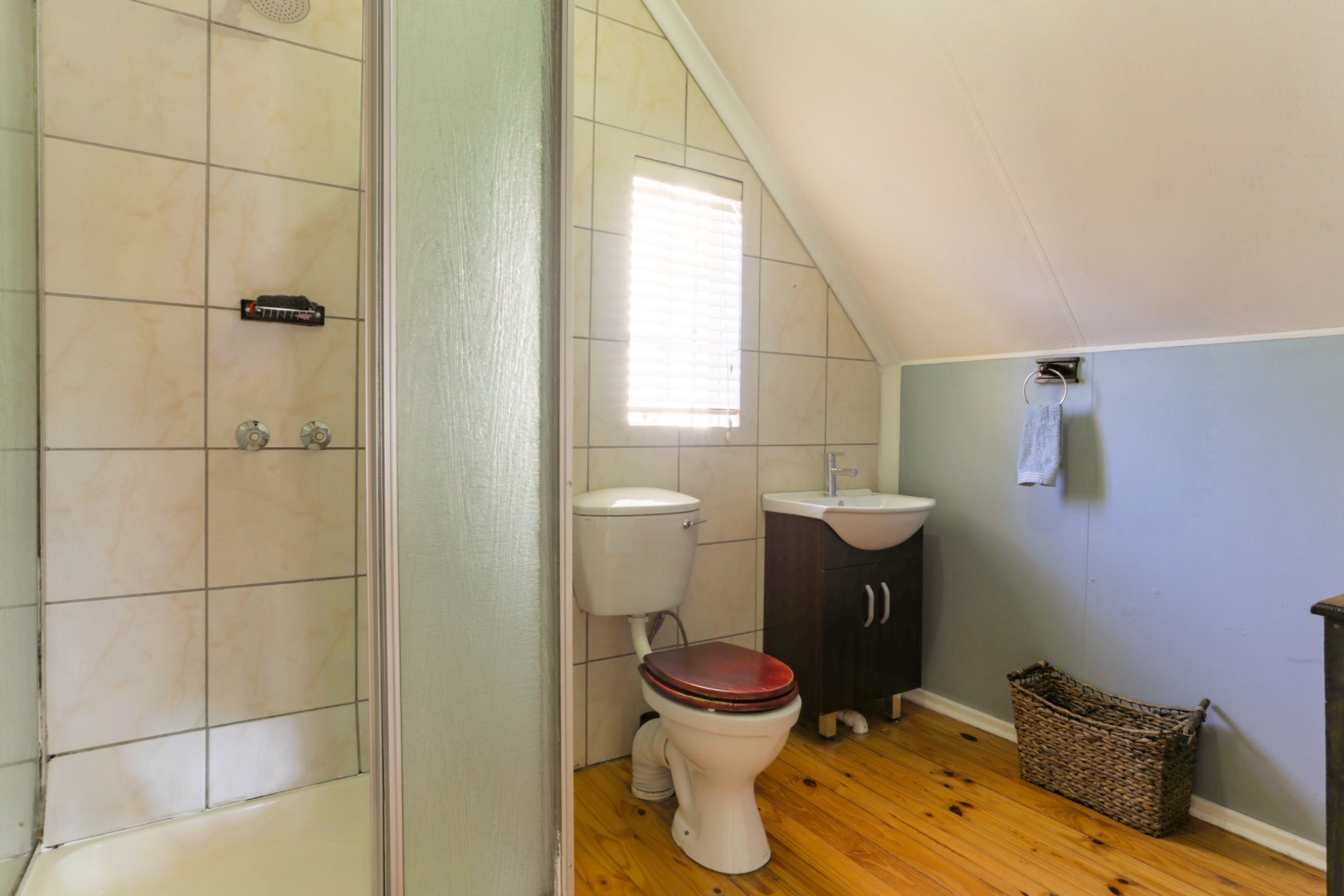 2 bathrooms, downstairs a full bathroom and upstairs bathroom featuring a shower.