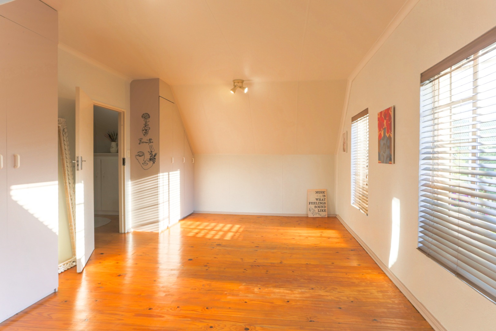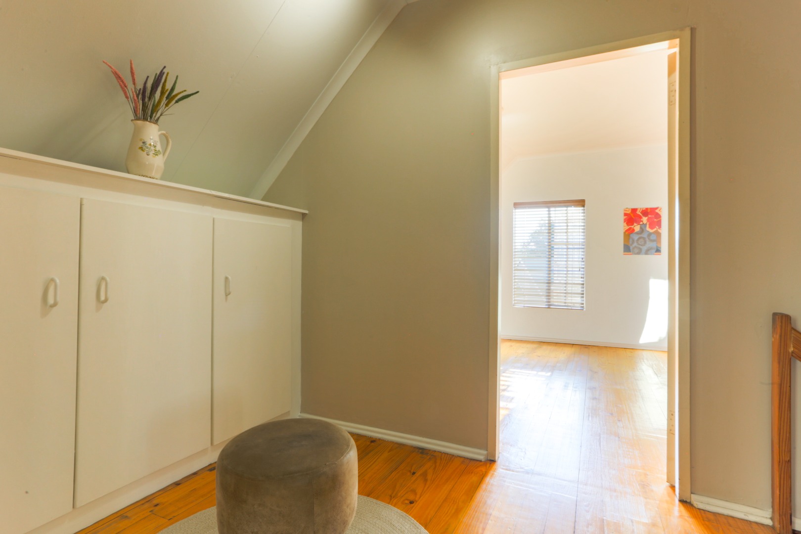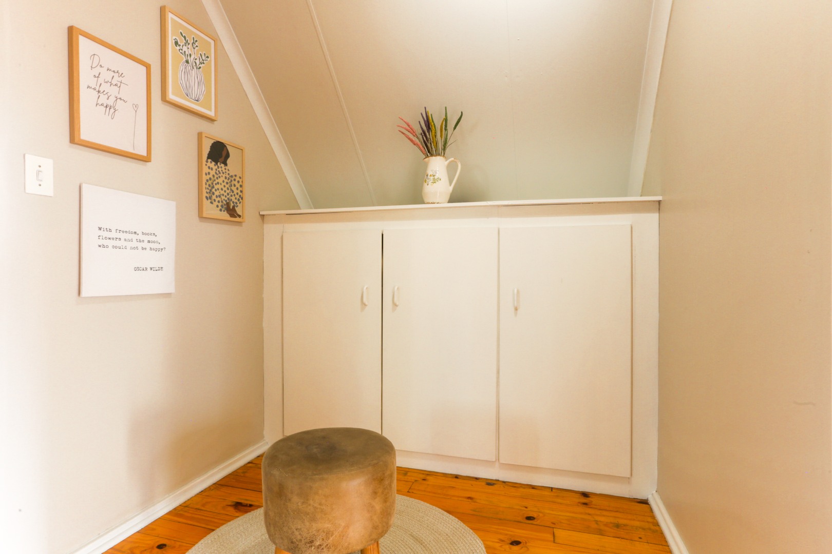 3 well-sized bedrooms, all fitted with built-in cupboards. 1 bedroom downstairs and 2 upstairs