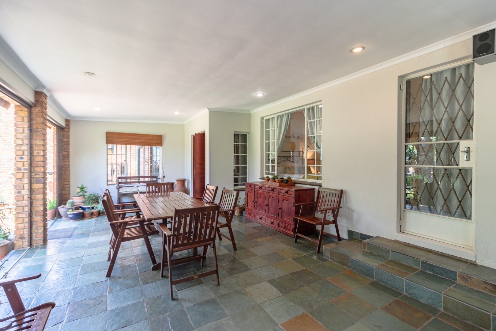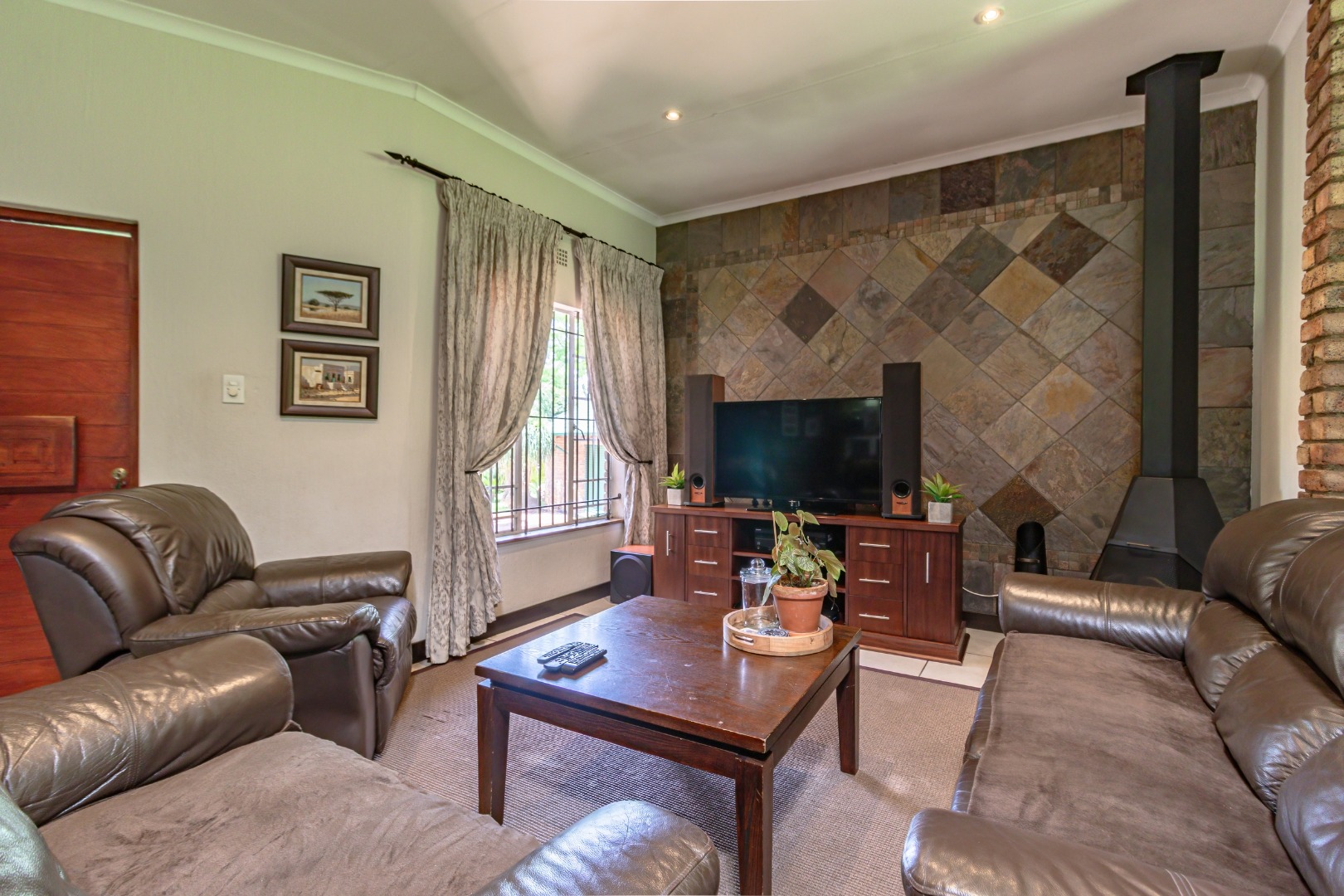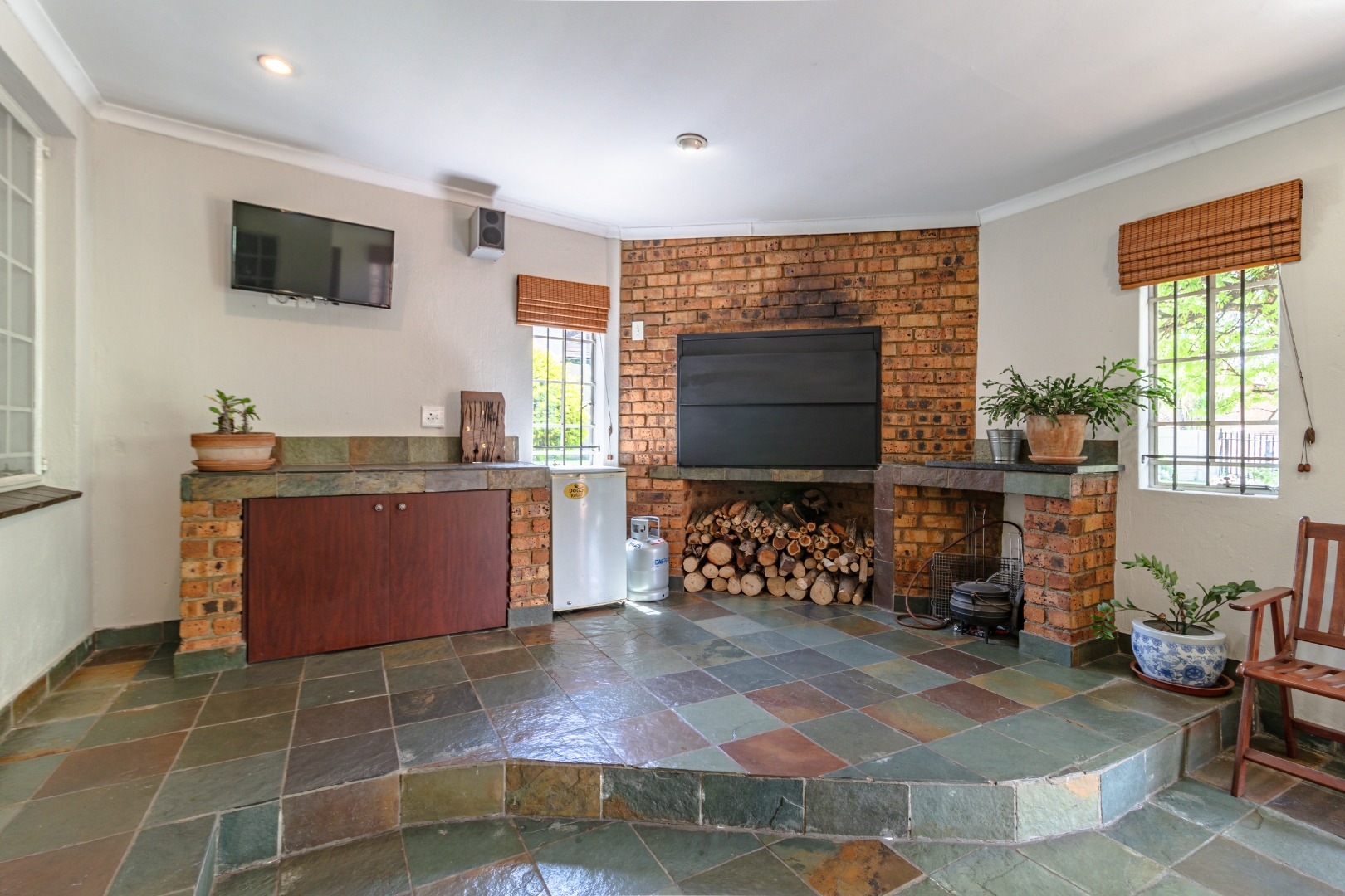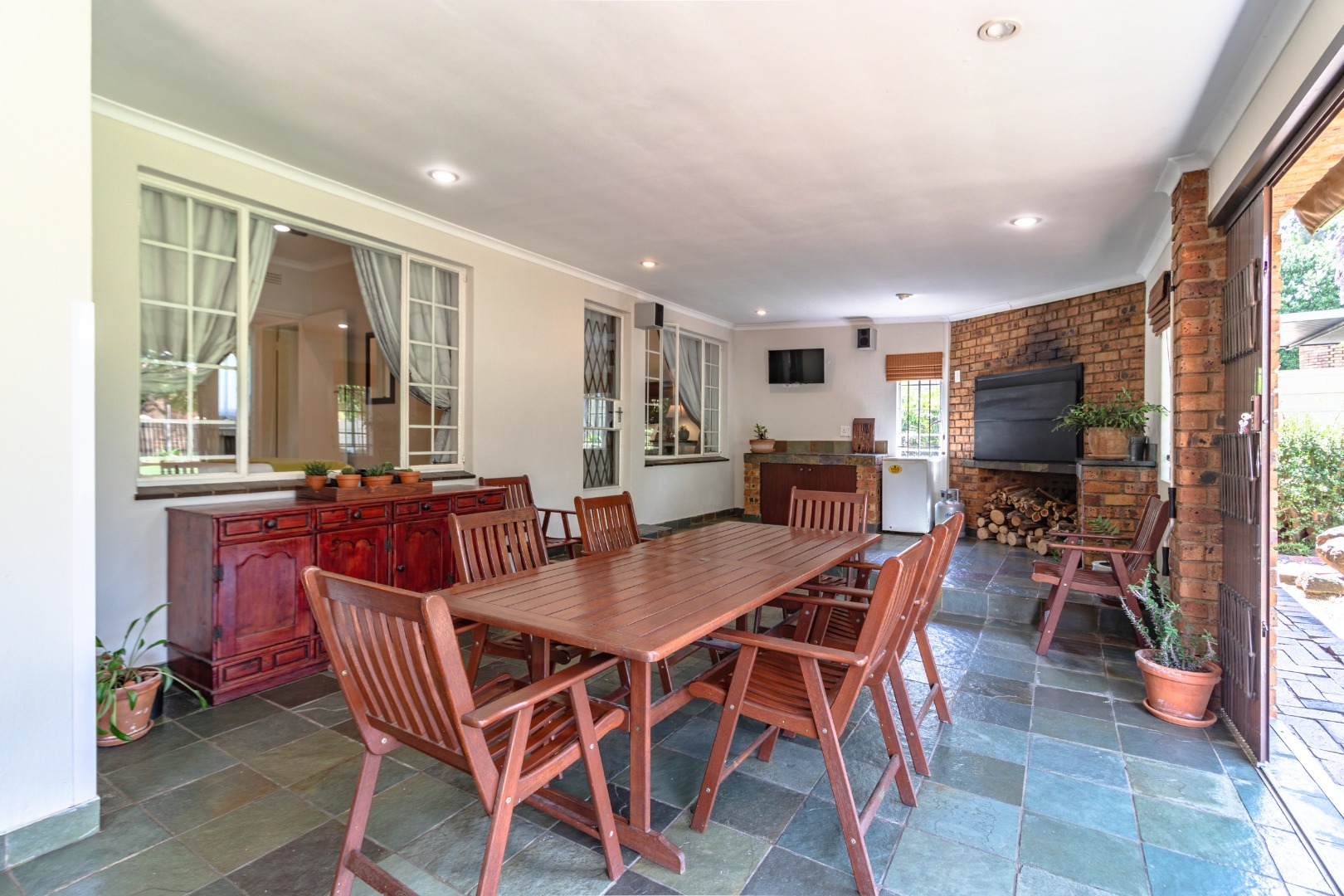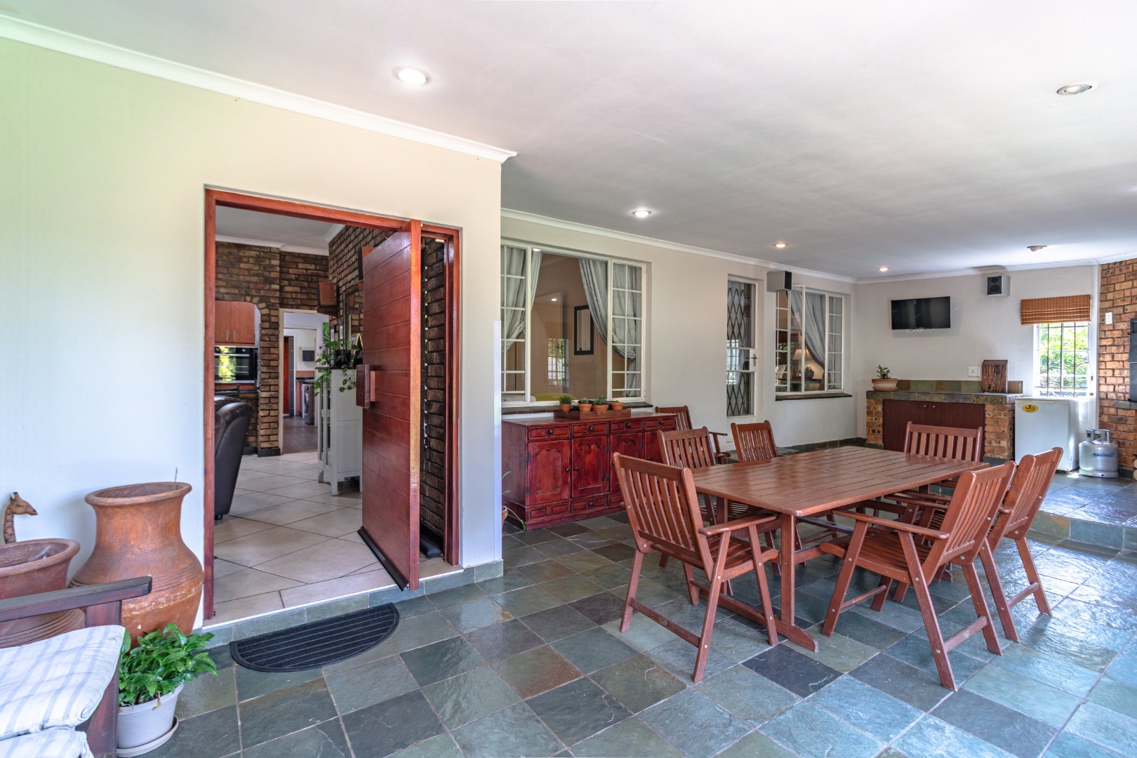 An impressive, covered patio forms the heart of the outdoor entertainment area, complete with a built-in braai, preparation counter — ideal for hosting family and friends all year round.