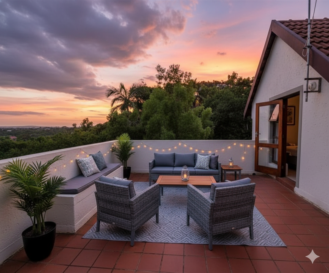 - Private upstairs spacious outdoor balcony, perfect for entertaining