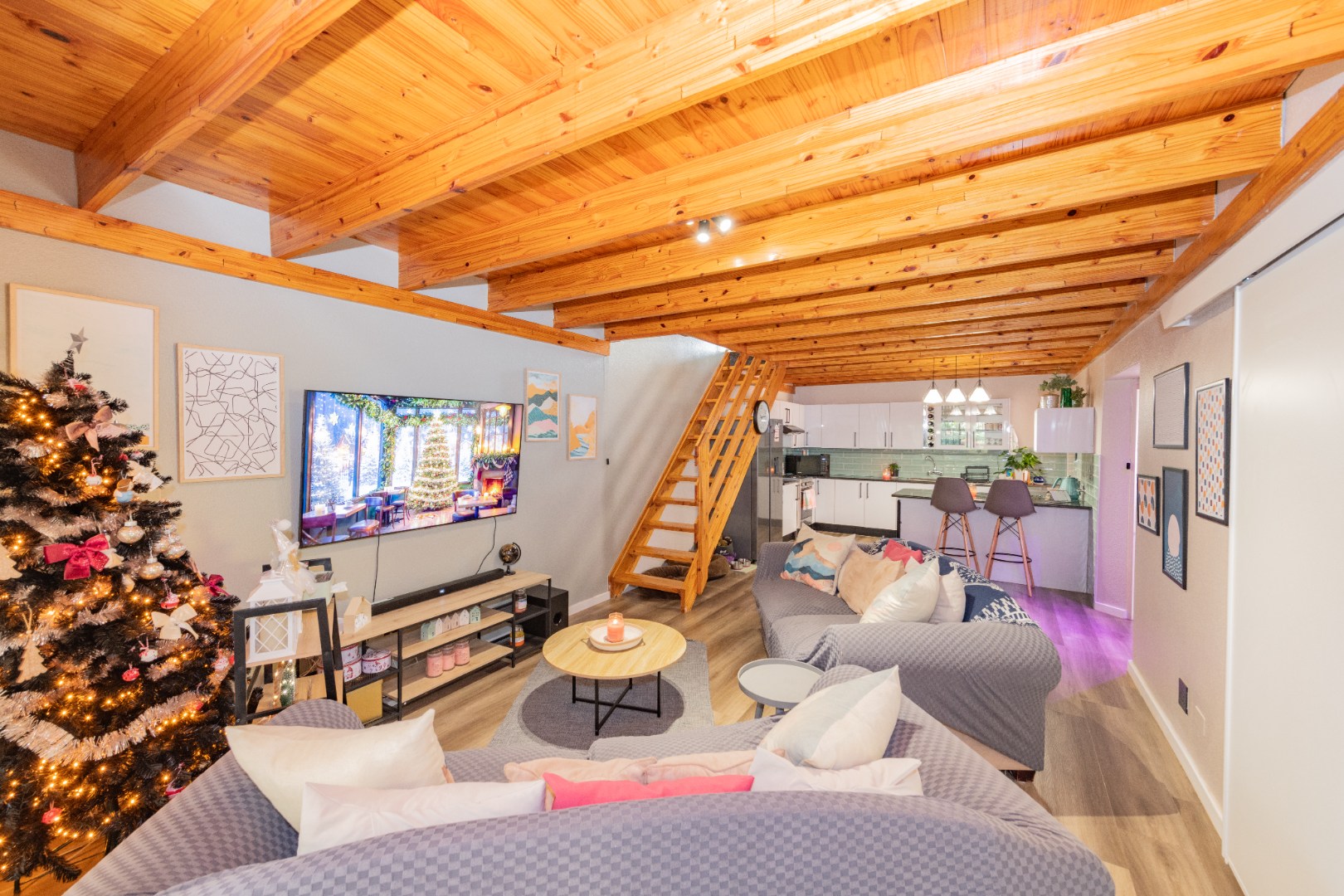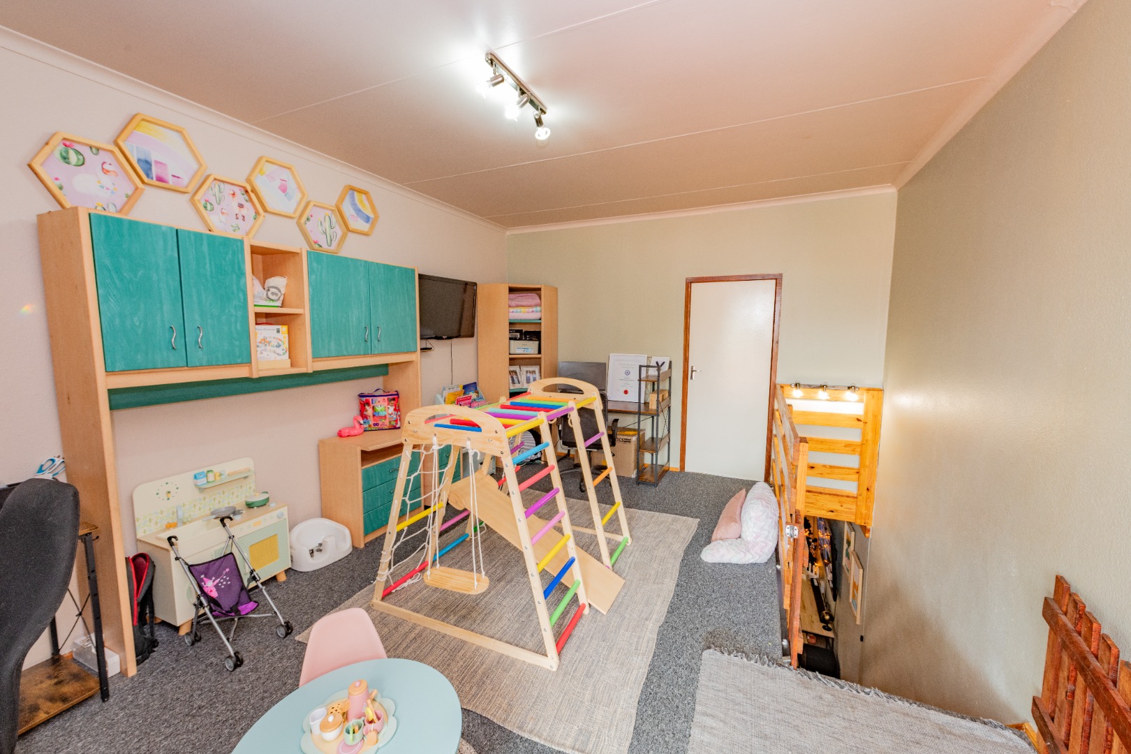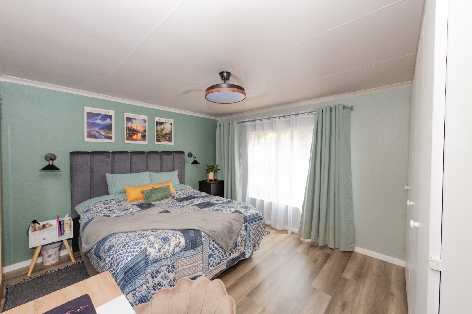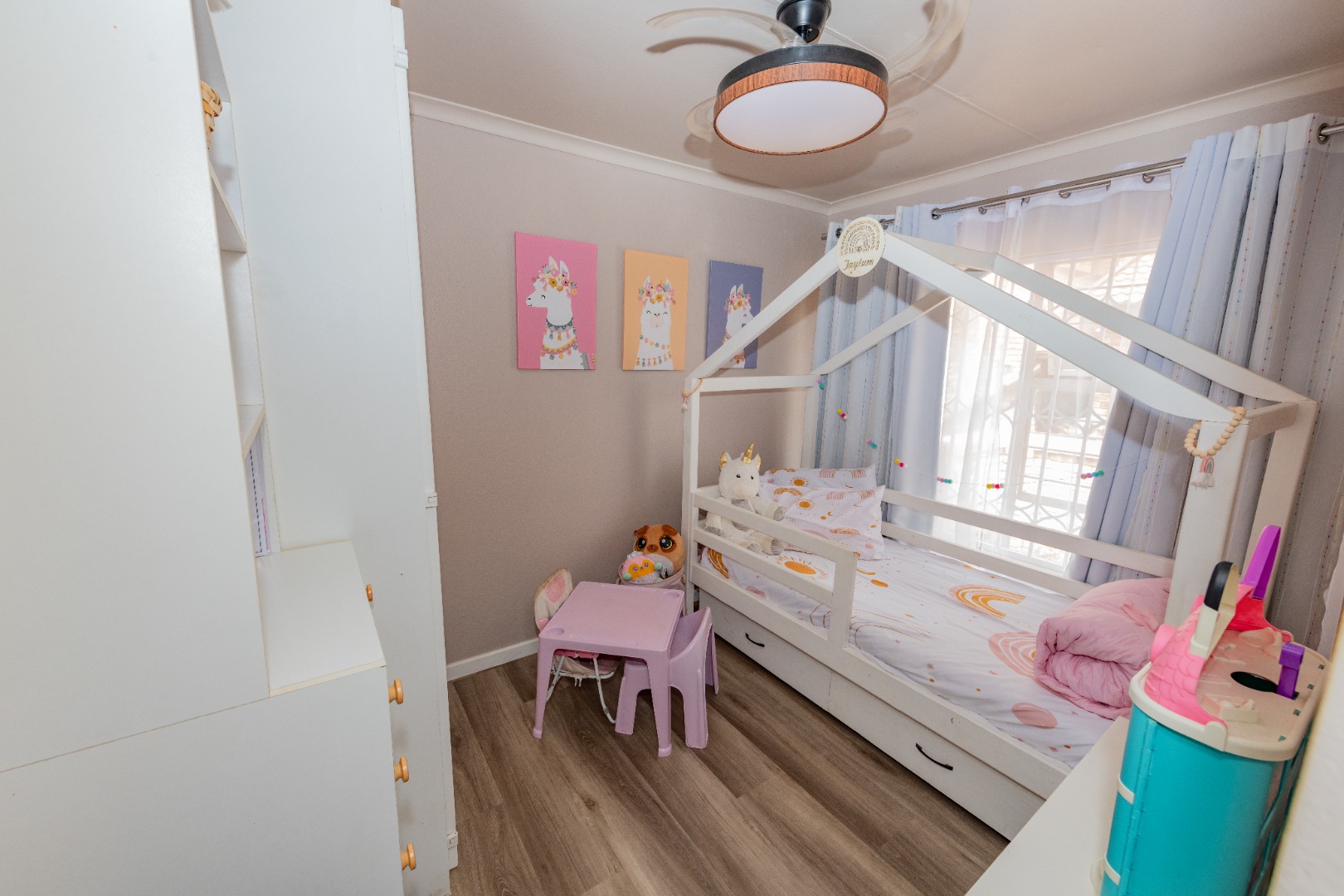 A newly renovated top-to-bottom 4 bedroom, 3 bathroom duplex with its vinyl flooring, and all bedrooms feature splendid ceiling fans. The 2 ultra modern full bathrooms (mes) are serviced by a gas geyser.