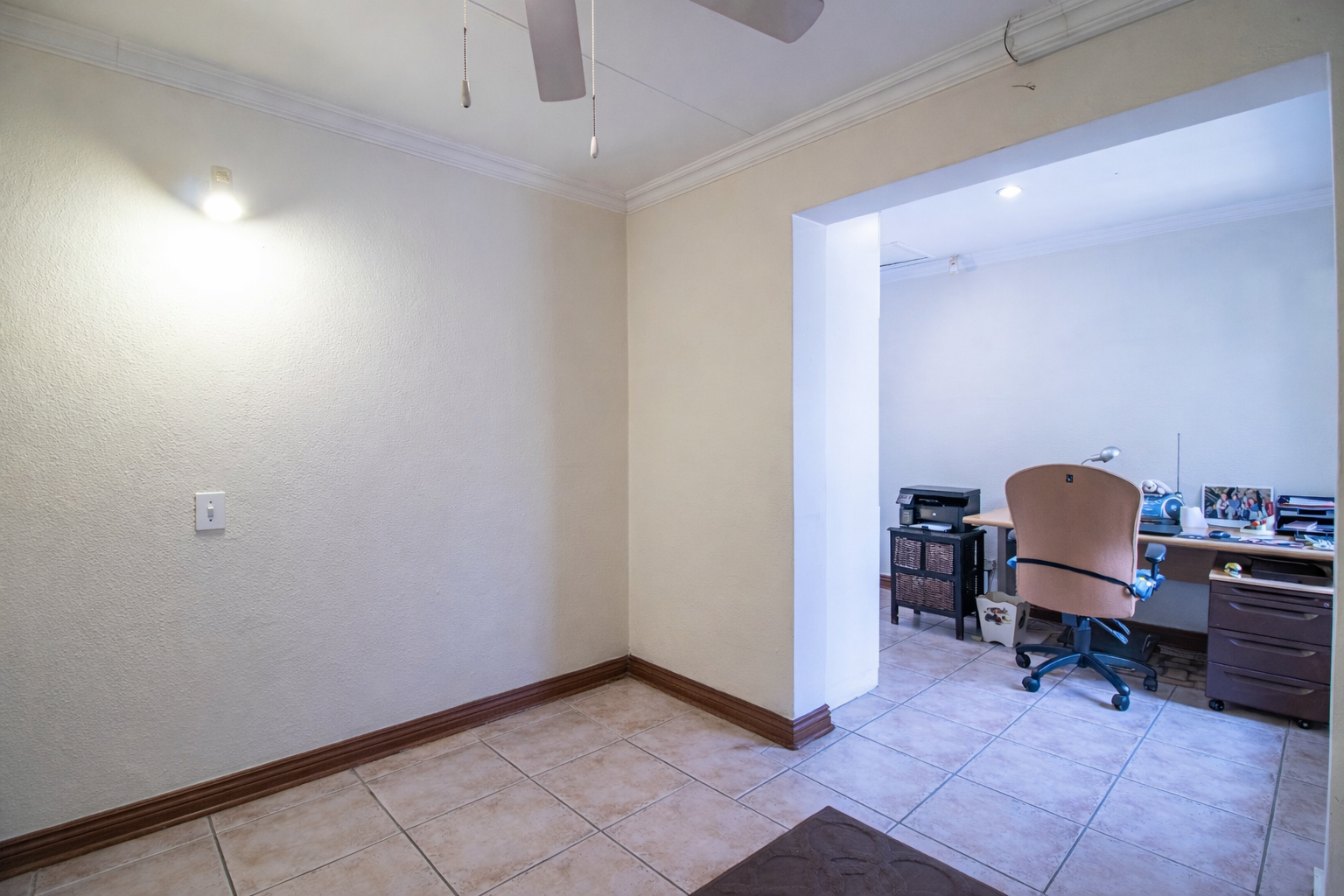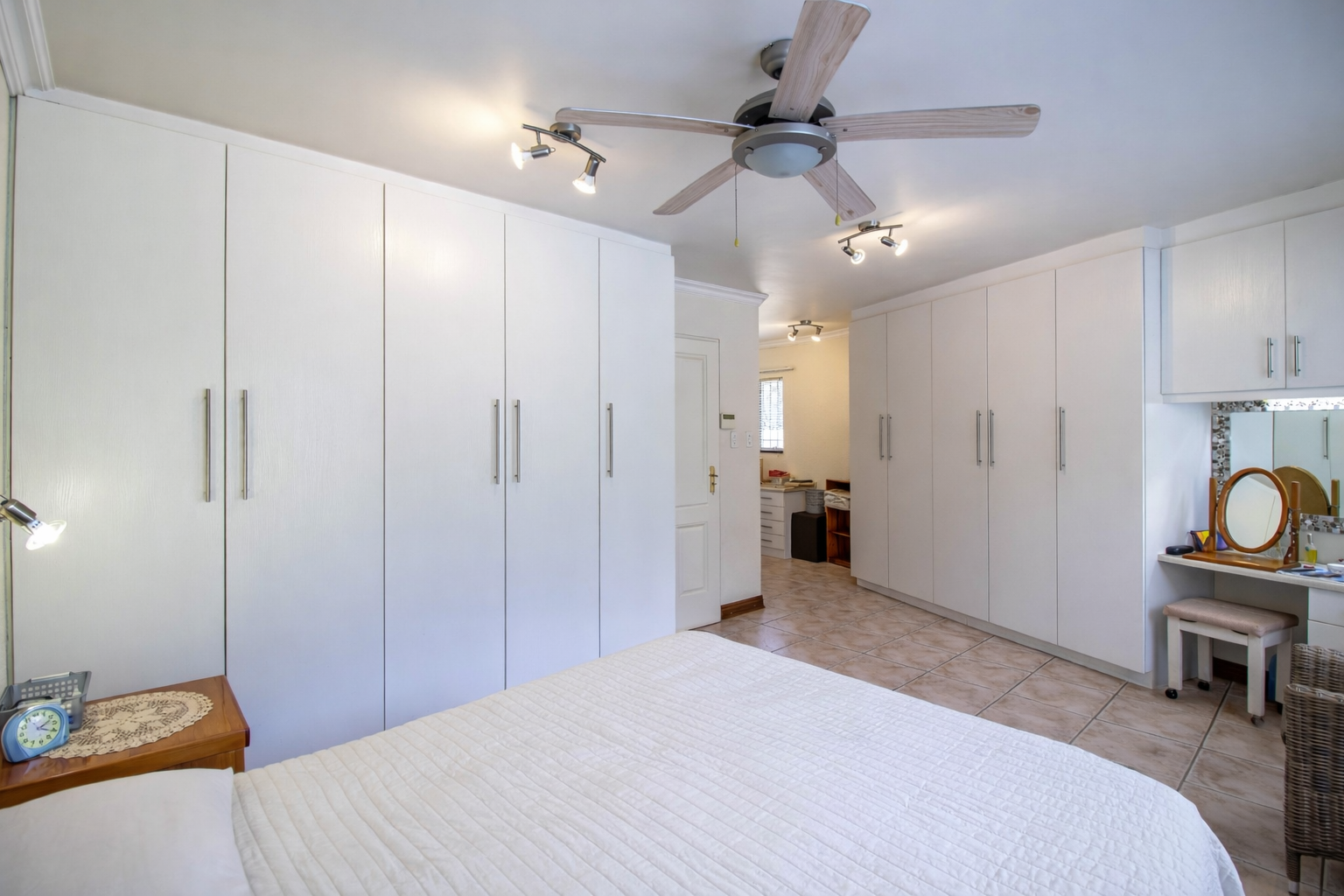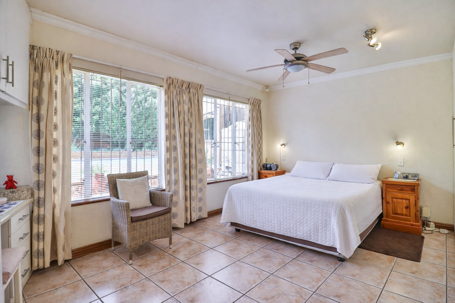- Main bedroom with pool views, ceiling fan, study nook, ample cupboards, and a full en-suite bathroom