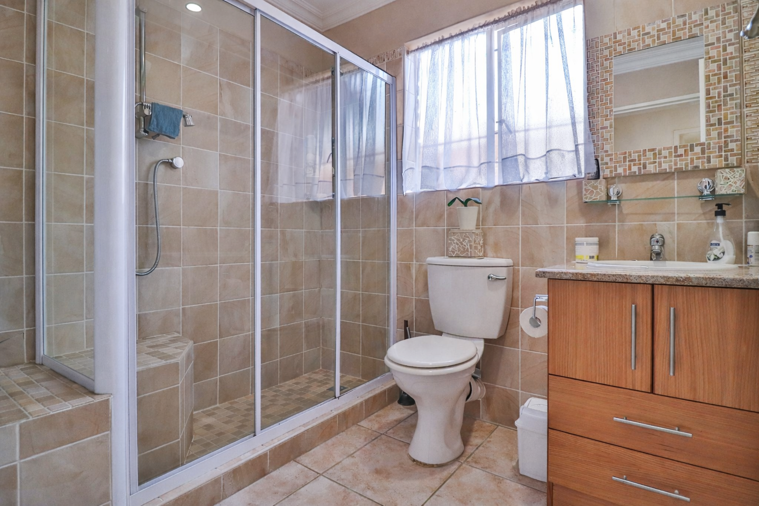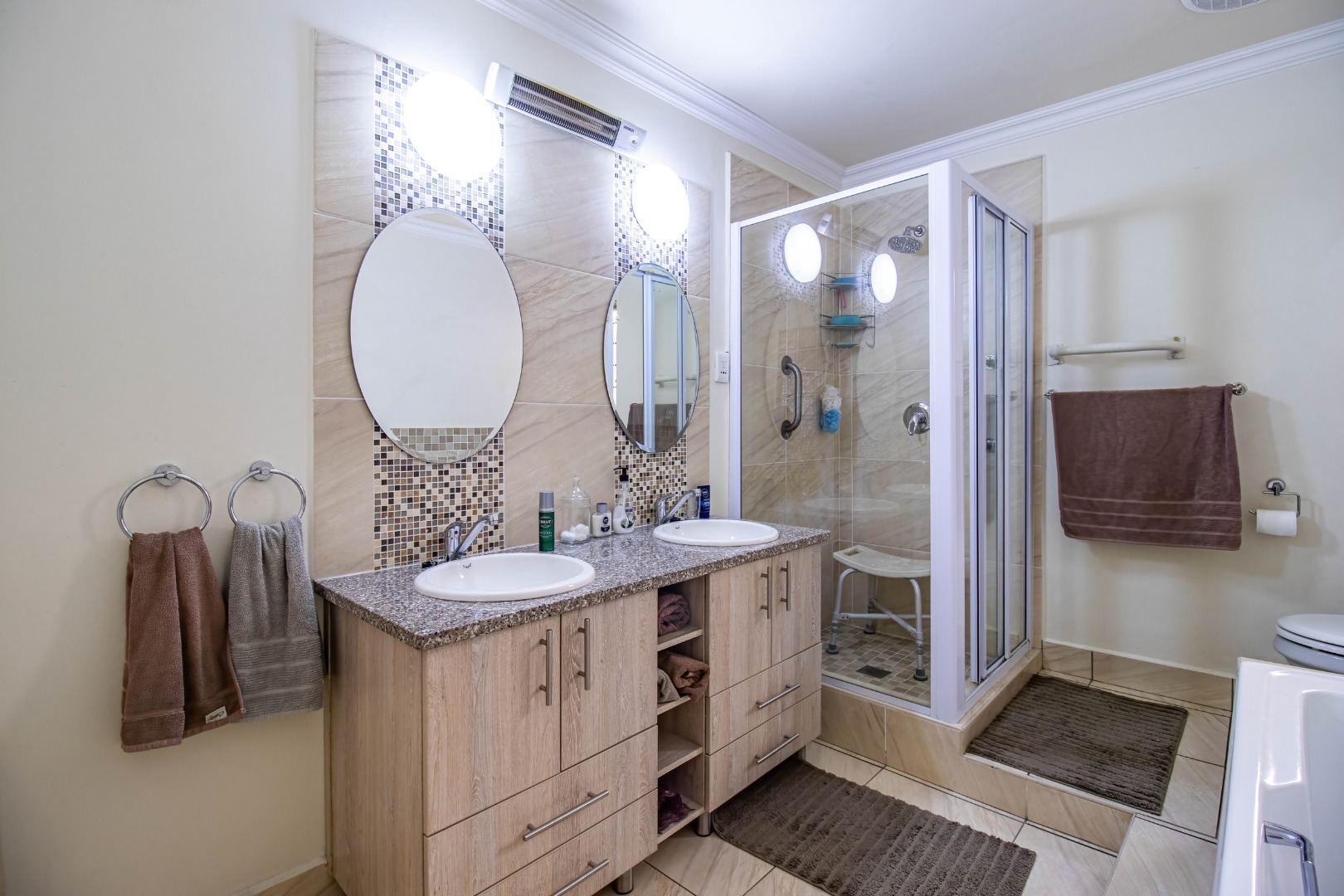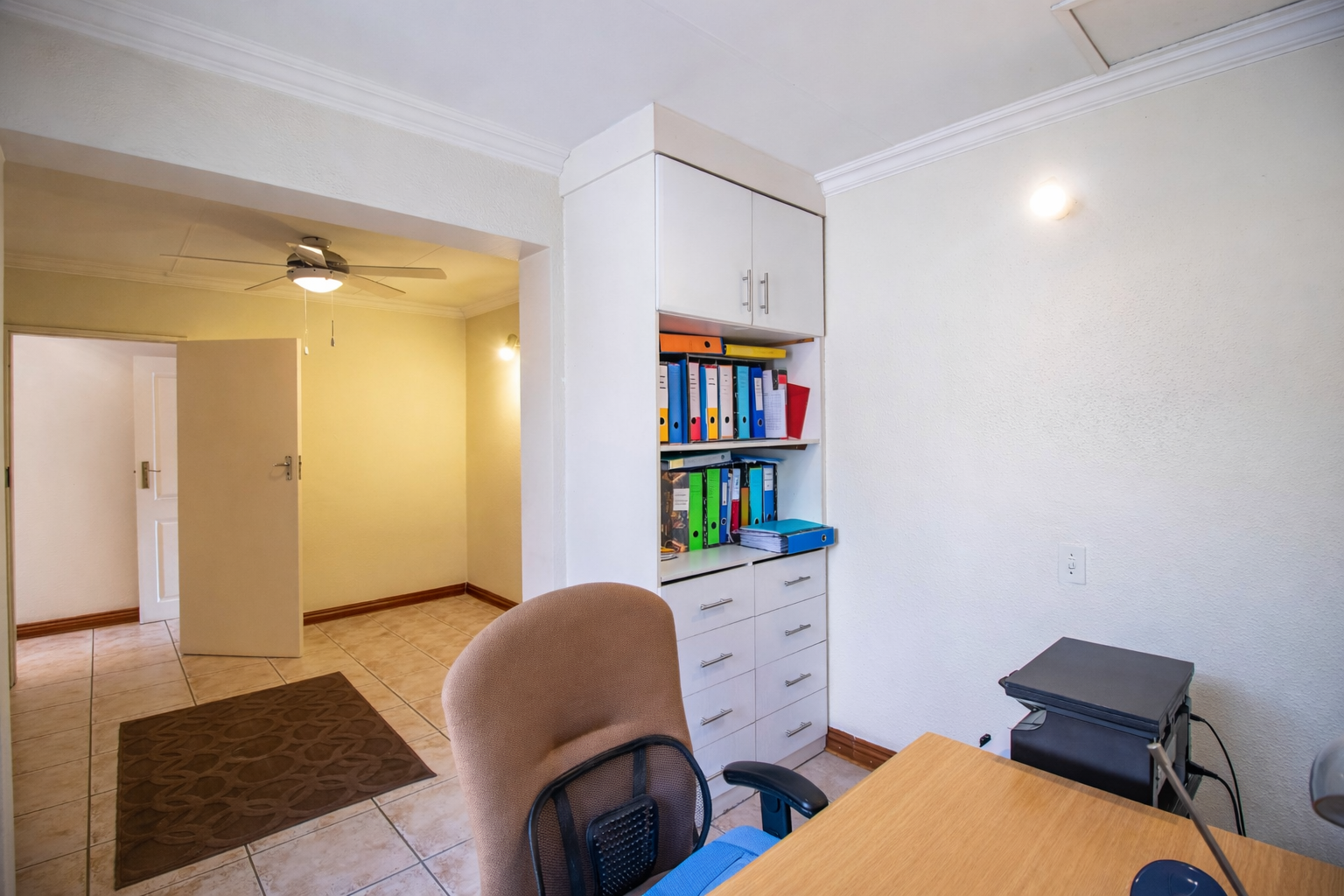 - Main bedroom with pool views, ceiling fan, study nook, ample cupboards, and a full en-suite bathroom