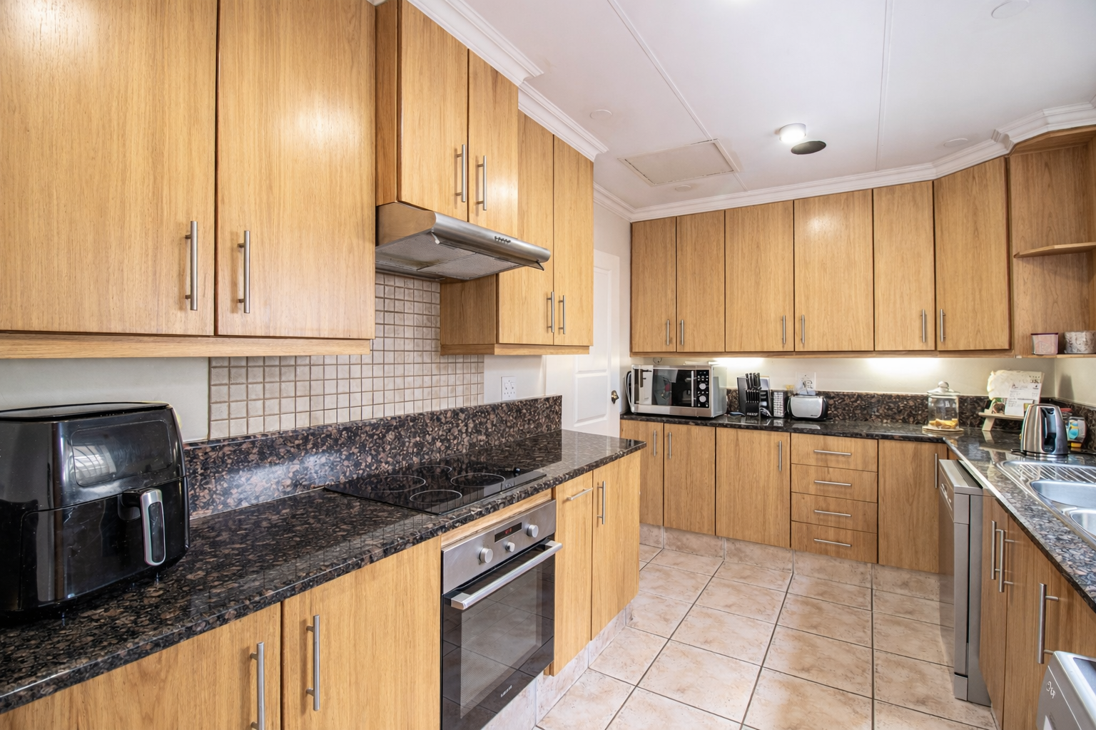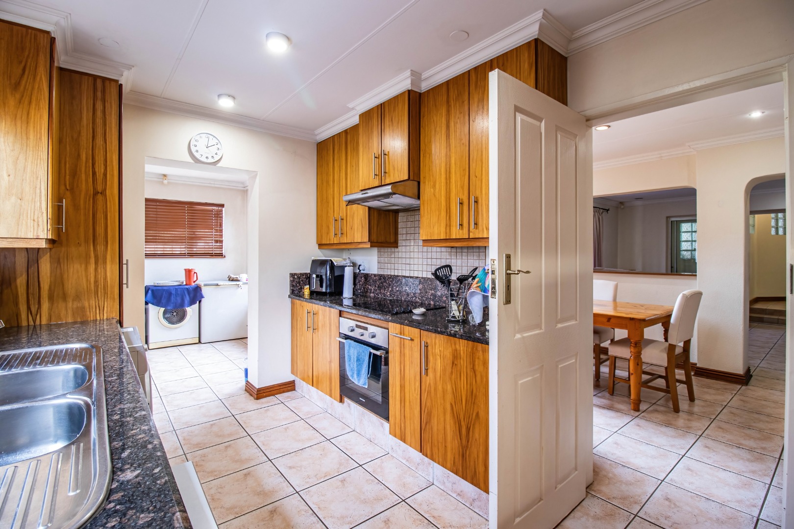 - Generous kitchen with separate scullery, ample cupboard space, space for two appliances and a double-door fridge, plus a casual eat-in area opening to the garden