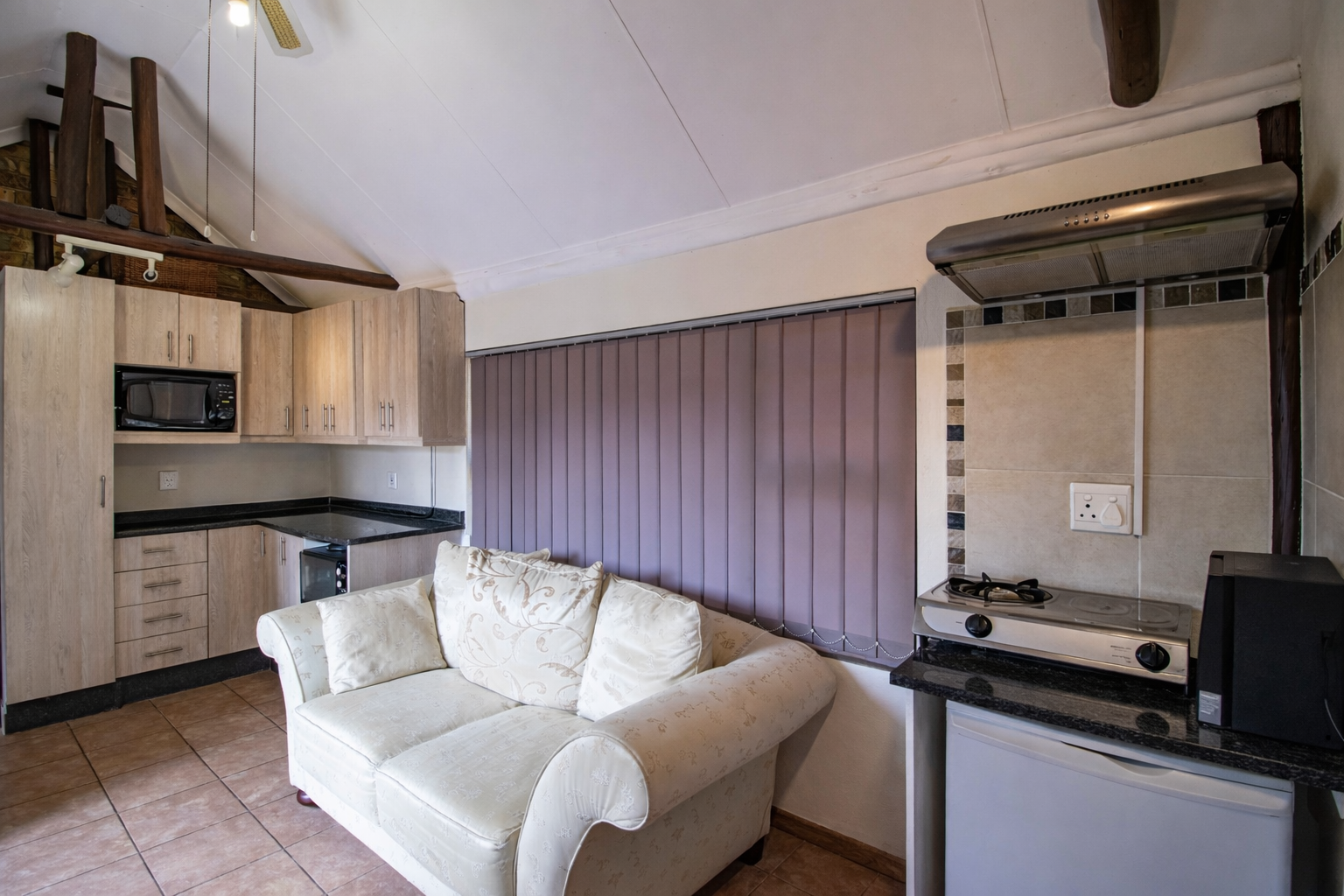 - One-Bedroom Cottage: Spacious kitchen, open-plan lounge, bedroom with en-suite shower, gas geyser, prepaid electricity