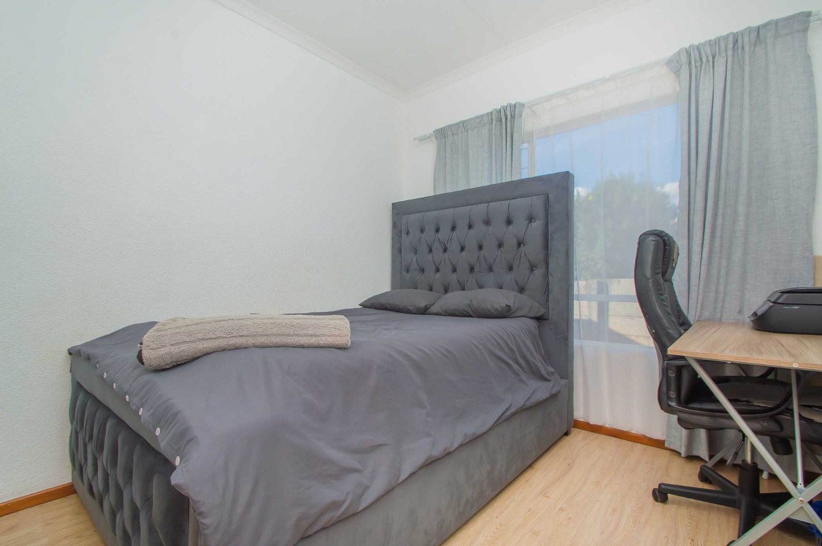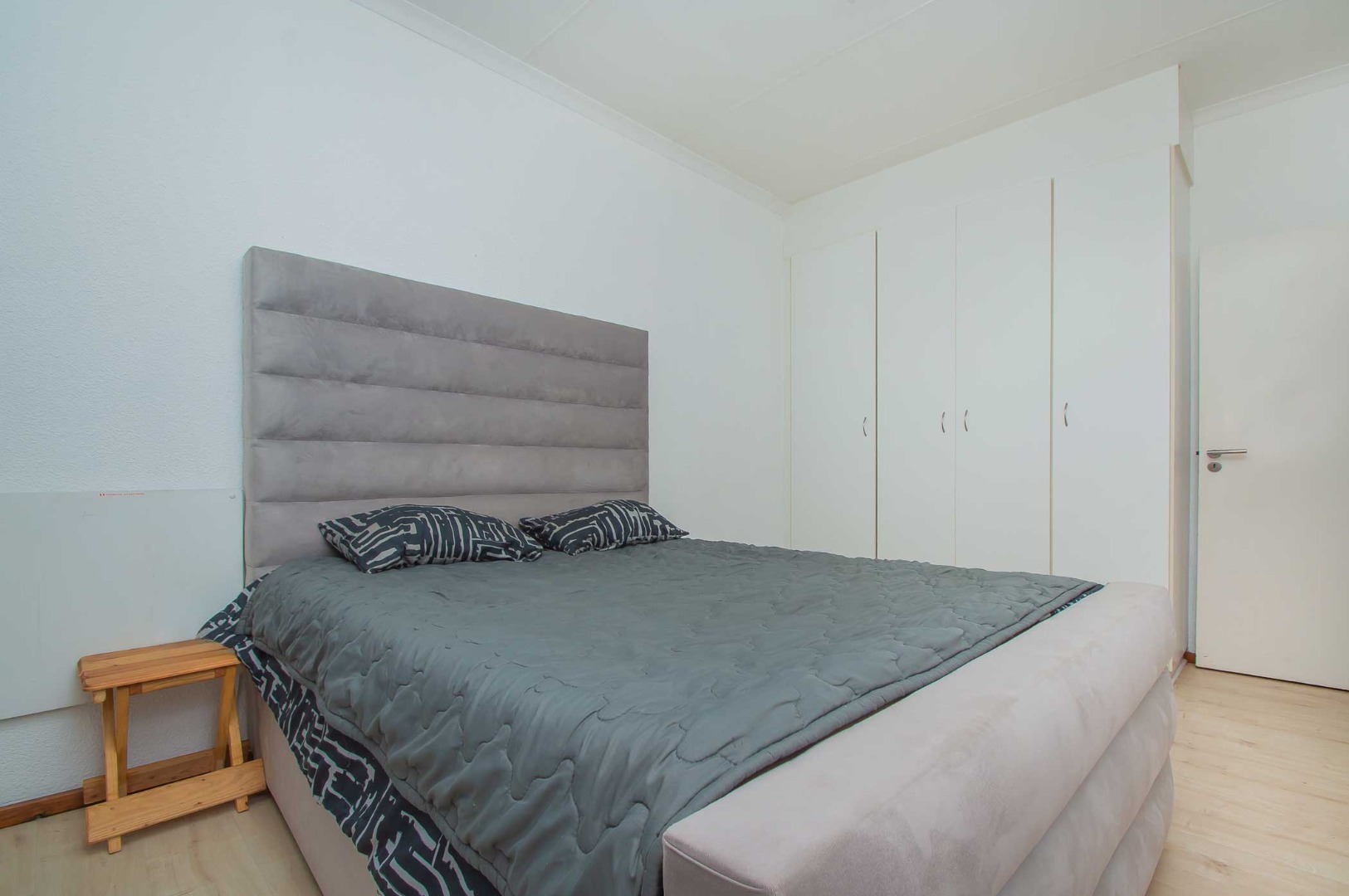 Both bedrooms are generously sized, featuring laminate flooring and built-in cupboards. They are serviced by a neat full bathroom, designed for comfort and practicality.