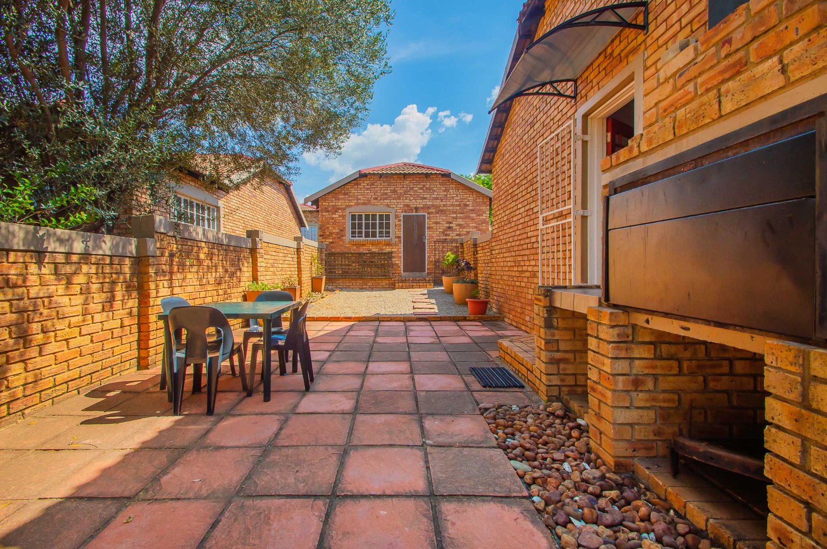 Discover this charming 3-bedroom, 2-bathroom residence nestled within a well-maintained complex in Amorosa, Roodepoort. Boasting a durable face brick exterior and tiled roof, this property offers excellent kerb appeal. The spacious paved driveway and courtyard provide ample parking, leading to a secure double garage. Mature trees enhance the natural aesthetic and offer welcome shade, creating a welcoming first impression for this suburban home. Step inside to an inviting open-plan living area, seamlessly connecting the lounge and a modern kitchen. The kitchen features white cabinetry, a practical breakfast bar, and durable tiled flooring that extends throughout the main living spaces. Large windows ensure abundant natural light, creating a bright and airy atmosphere. The home comprises three comfortable bedrooms, including one with an ensuite bathroom, providing privacy and convenience for residents. Outdoor living is a highlight, with a private, low-maintenance paved patio area perfect for entertaining. This space includes a built-in braai, ideal for social gatherings, and is shaded by an established tree. The property also features a secure, walled backyard with a mix of paved and gravel areas, complemented by an outdoor storage shed and a separate brick outbuilding offering potential for additional utility. Enhanced security is provided by burglar bars on windows and security gates on entry points. Situated in the desirable Amorosa suburb of Roodepoort, this home offers a tranquil residential environment. Its location provides convenient access to local amenities and transport routes, making it an ideal choice for comfortable family living. Key Features: * 3 Bedrooms, 2 Bathrooms (1 En-suite) * Open-plan Lounge & Modern Kitchen * Double Garage & Paved Driveway * Private Paved Patio with Built-in Braai * Low-Maintenance Walled Yard * Outdoor Storage Shed & Outbuilding * Durable Face Brick Exterior * Enhanced Security Features