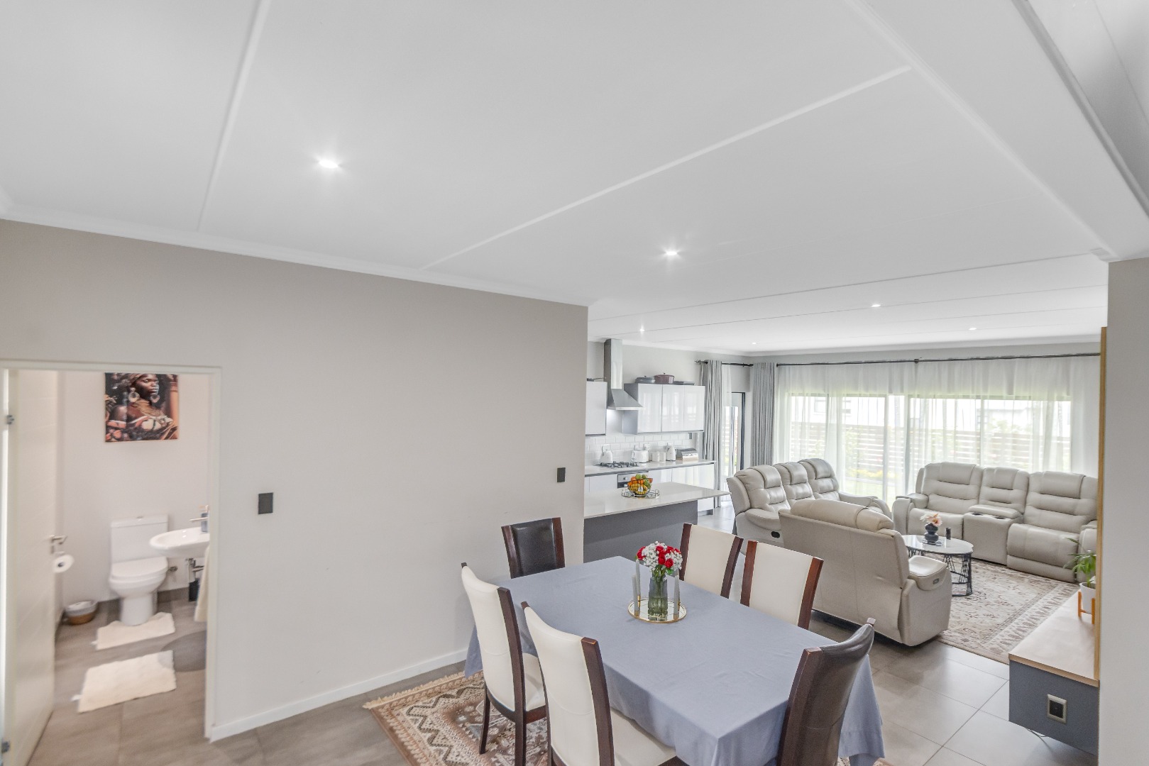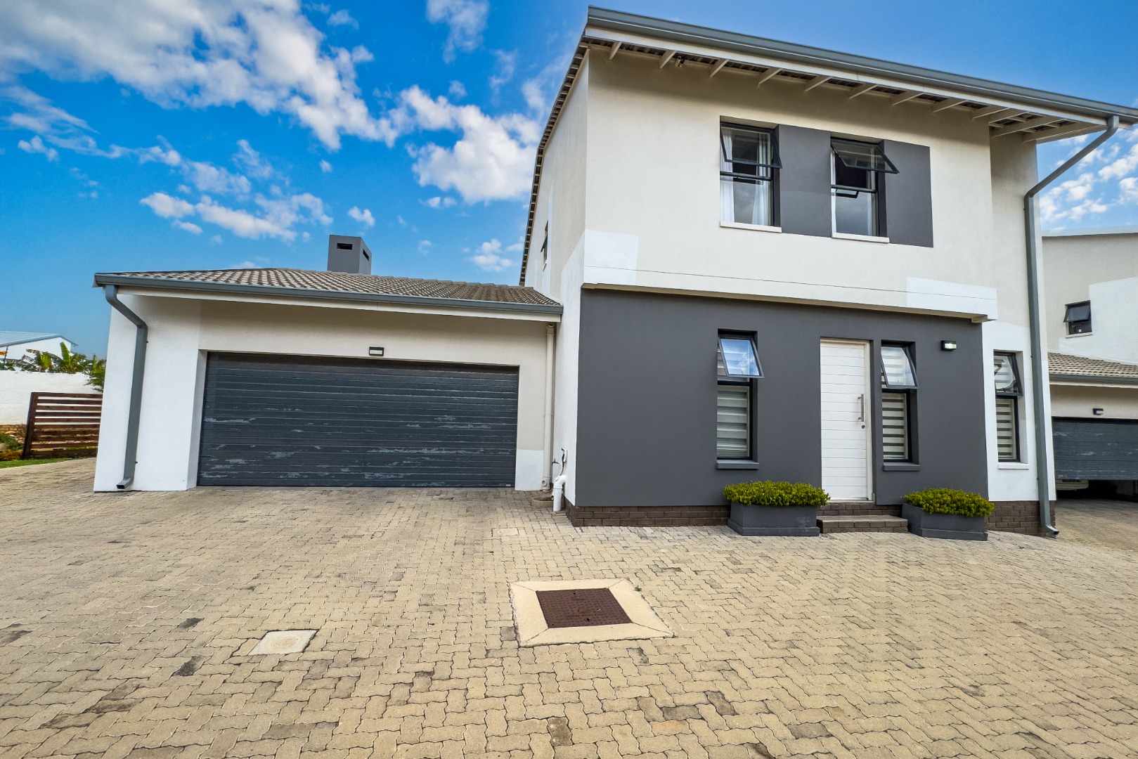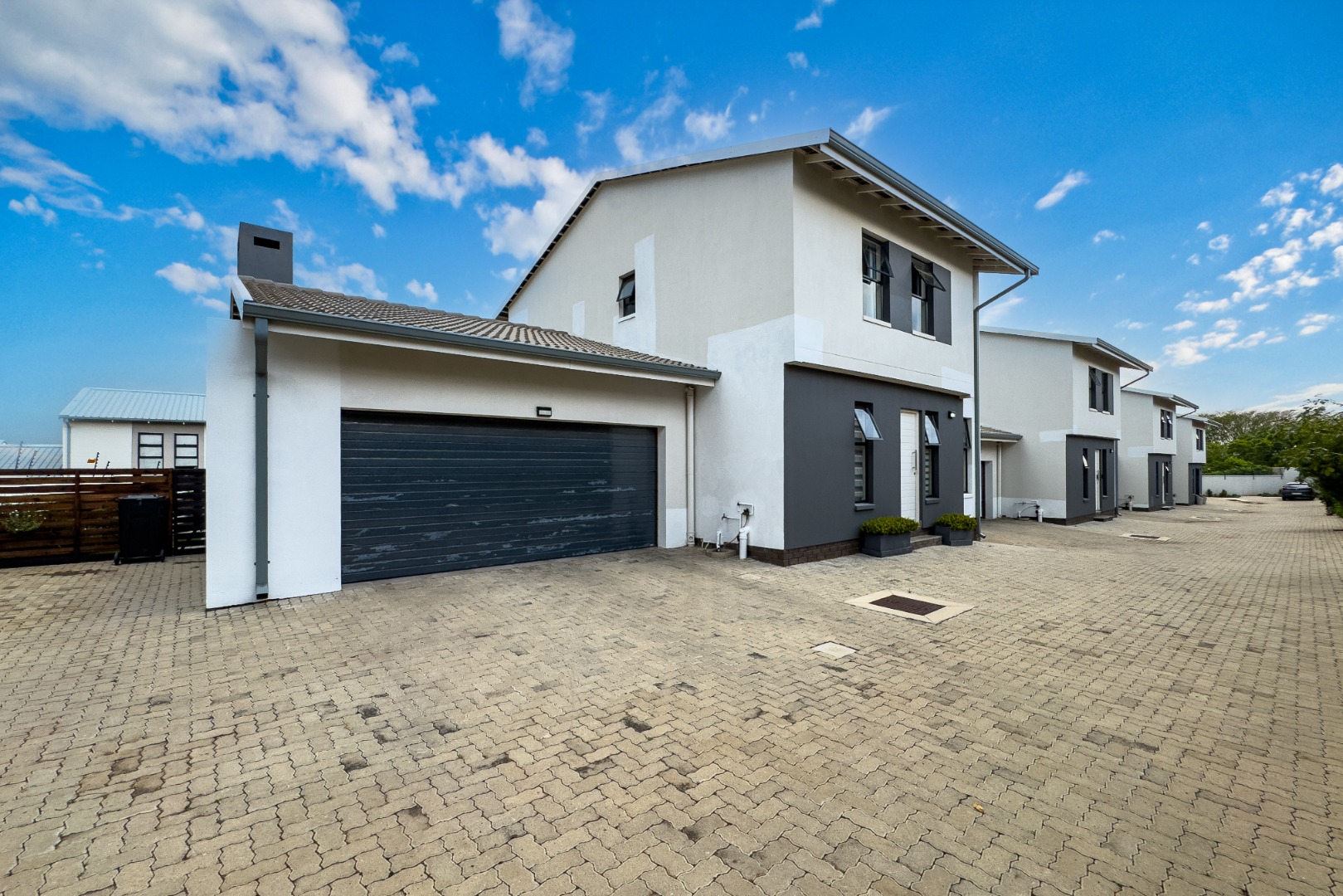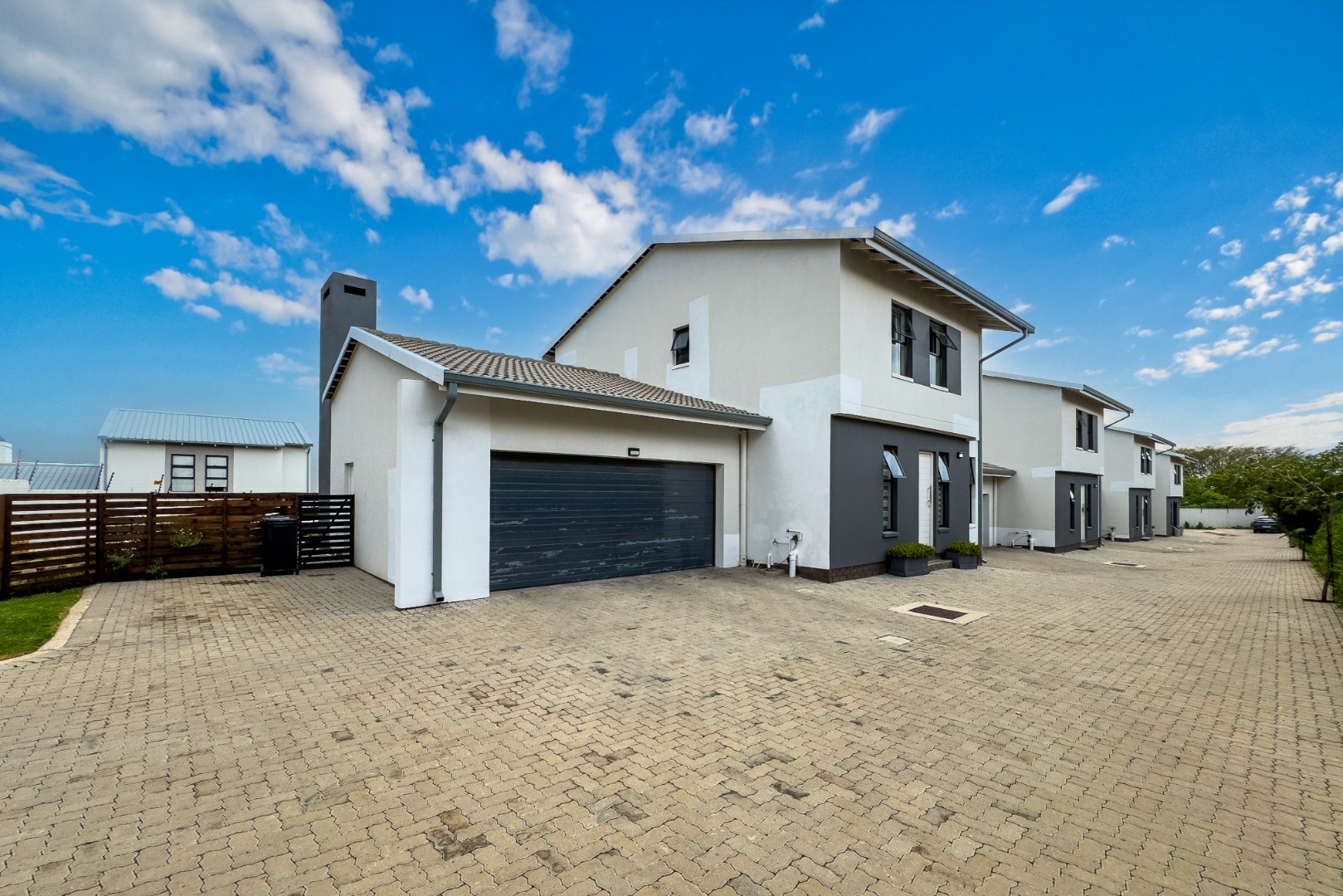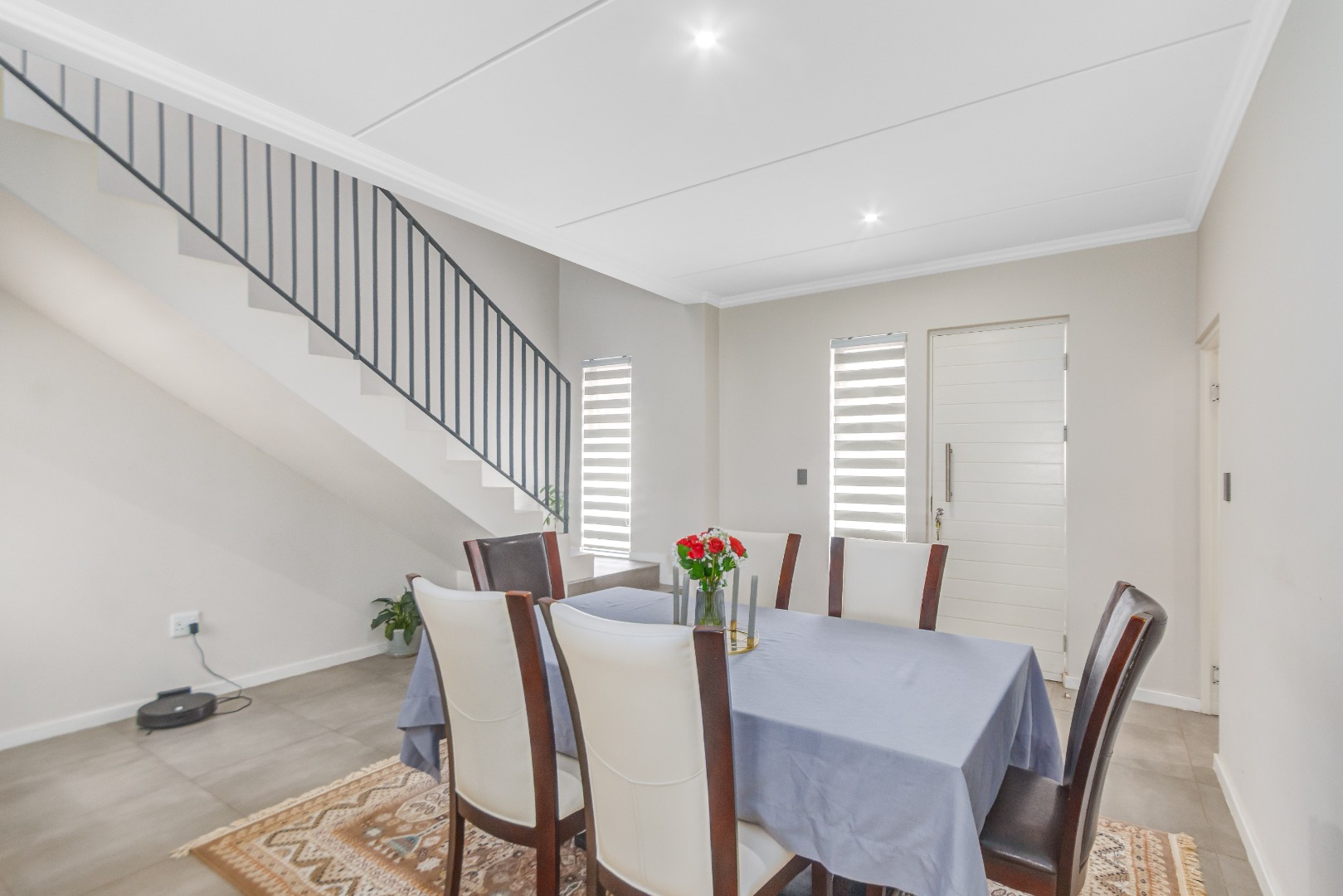 Upstairs, three spacious and well-lit bedrooms with built-in cupboards are complemented by two modern bathrooms, including a main en-suite with a bathtub. The main bedroom also enjoys a private balcony with distant views of the Magaliesberg mountains. Completing the home is a double automated garage, additional parking and modern touches throughout.