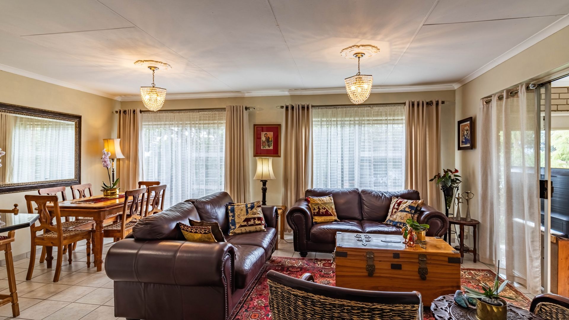 A standout feature of this home is the enclosed patio off the dining room, currently used as a second lounge or pyjama lounge. With a large sliding door, roll down blinds, and security gate, this space is ideal as a sunroom in winter and equally enjoyable during summer rains, making it a true all season living area.