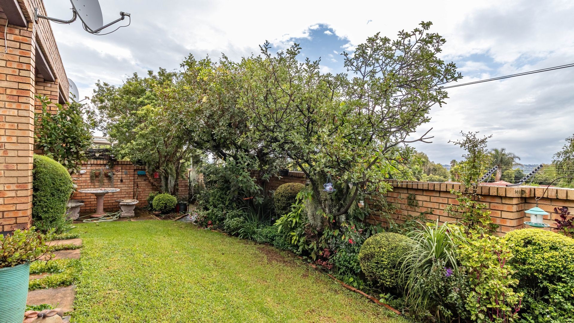 - Established garden with bird life