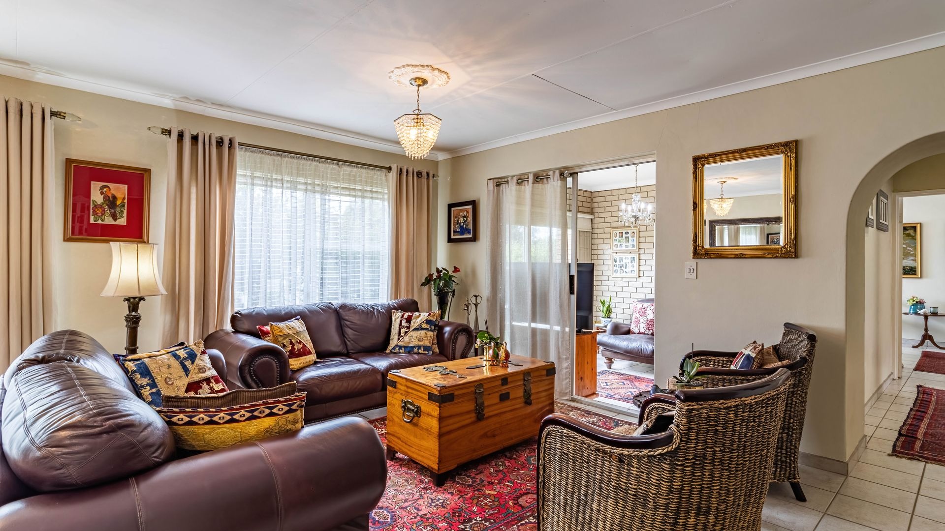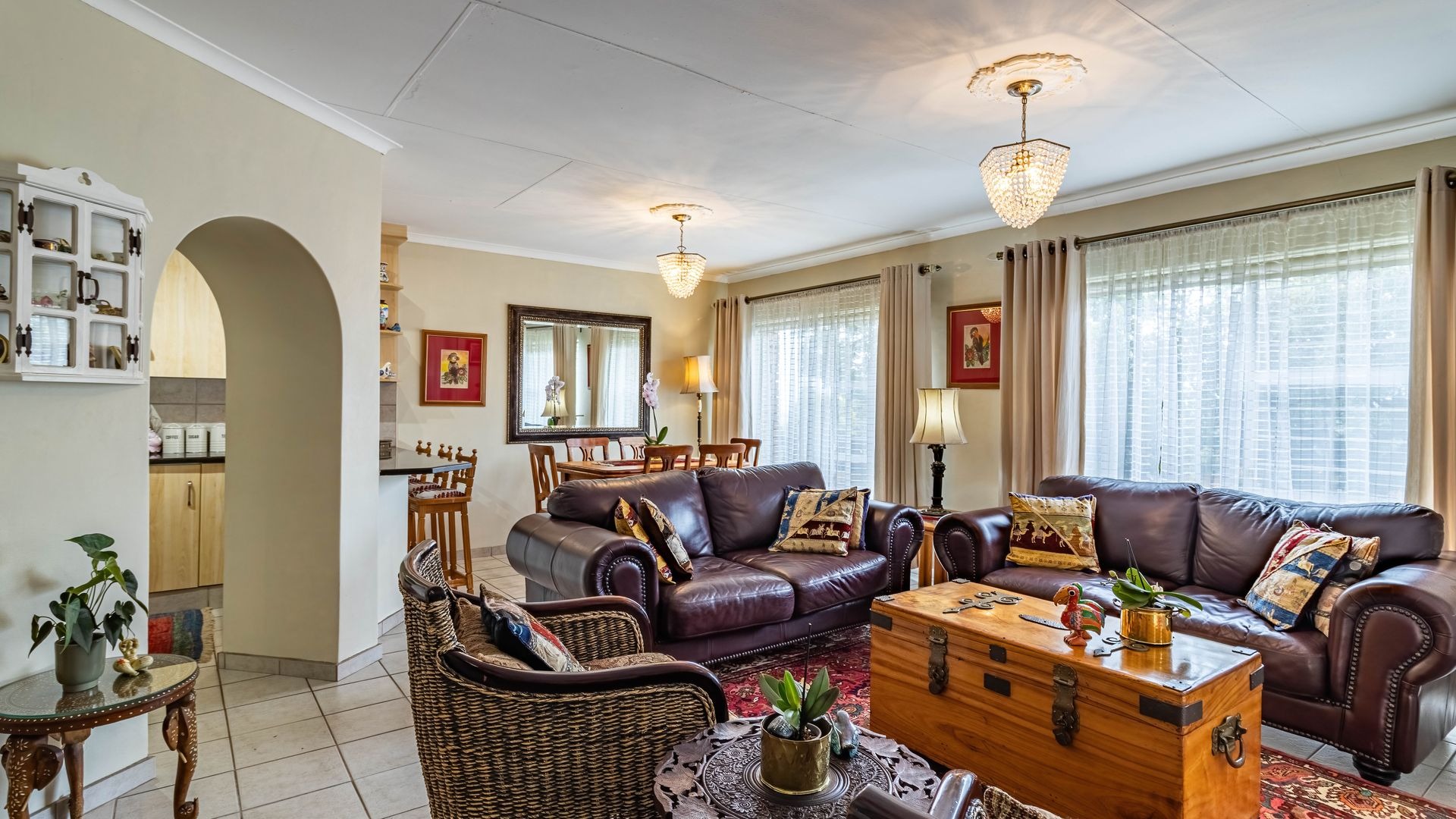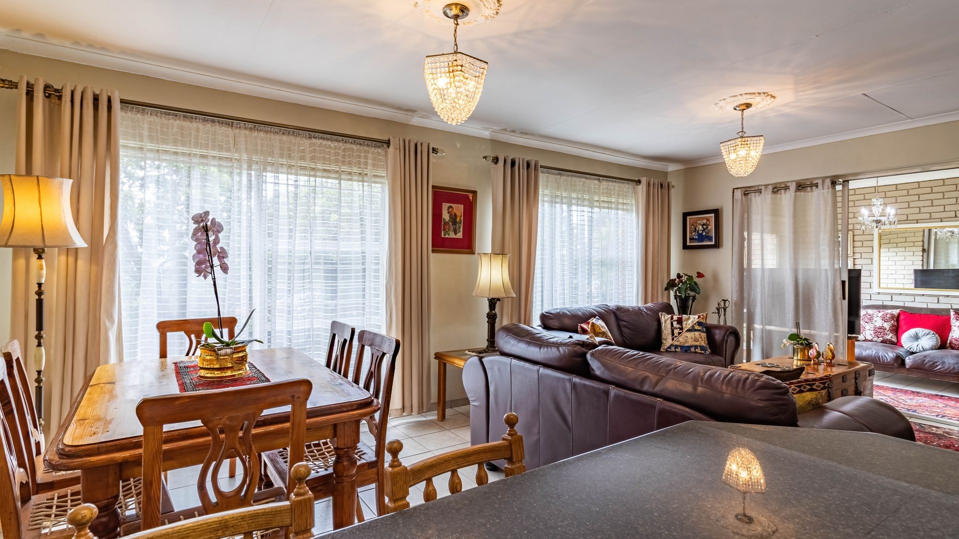 A standout feature of this home is the enclosed patio off the dining room, currently used as a second lounge or pyjama lounge. With a large sliding door, roll down blinds, and security gate, this space is ideal as a sunroom in winter and equally enjoyable during summer rains, making it a true all season living area.