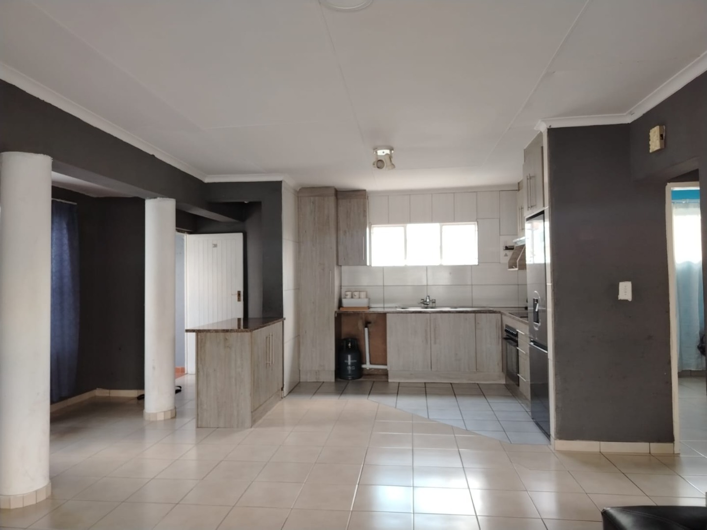 - A spacious lounge and a modern fitted kitchen