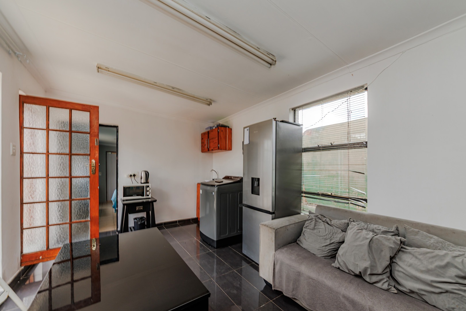 Outside, the property boasts a spacious one-bedroom flatlet complete with a lounge, kitchenette, bedroom, and bathroom—ideal for extended family, guests, or rental income. A Wendy hut with electricity and plumbing serves as a practical laundry room. For secure parking, an enclosed lock-up carport accommodates up to four cars.