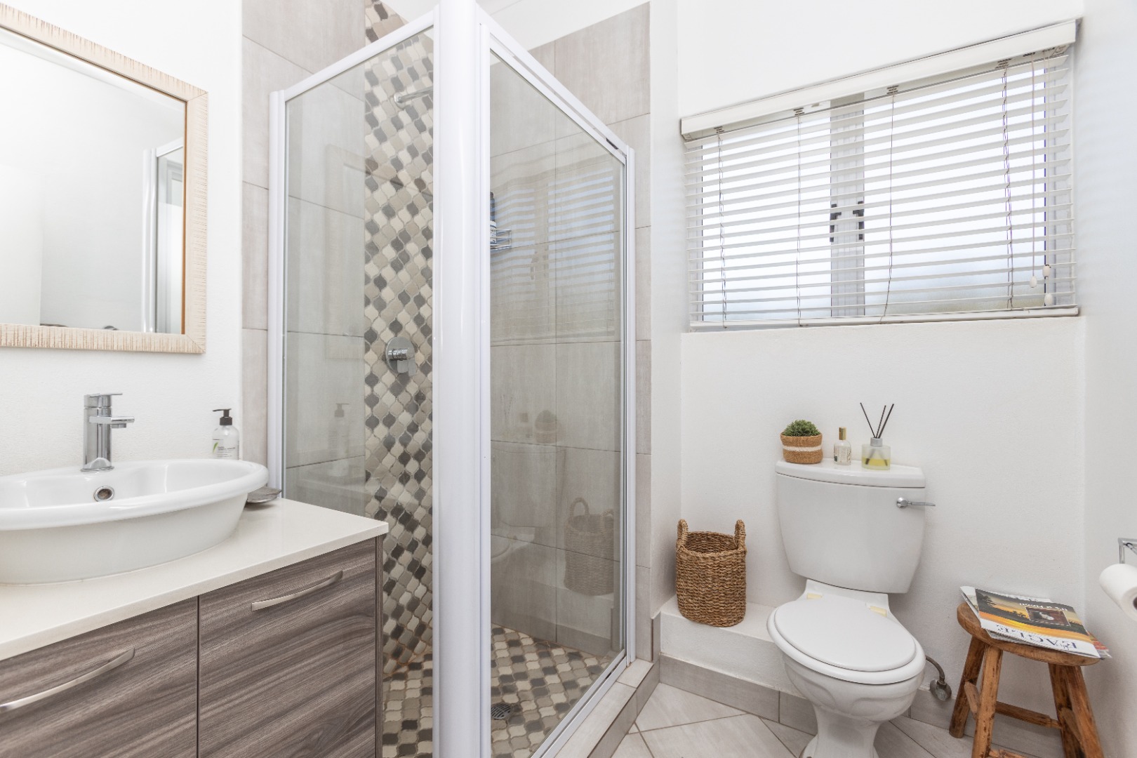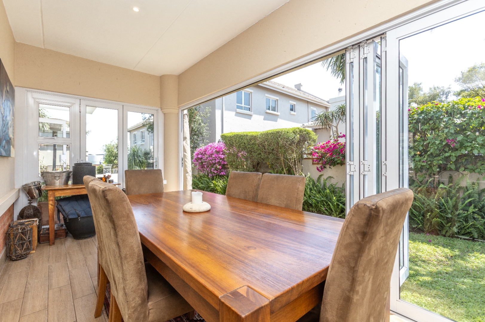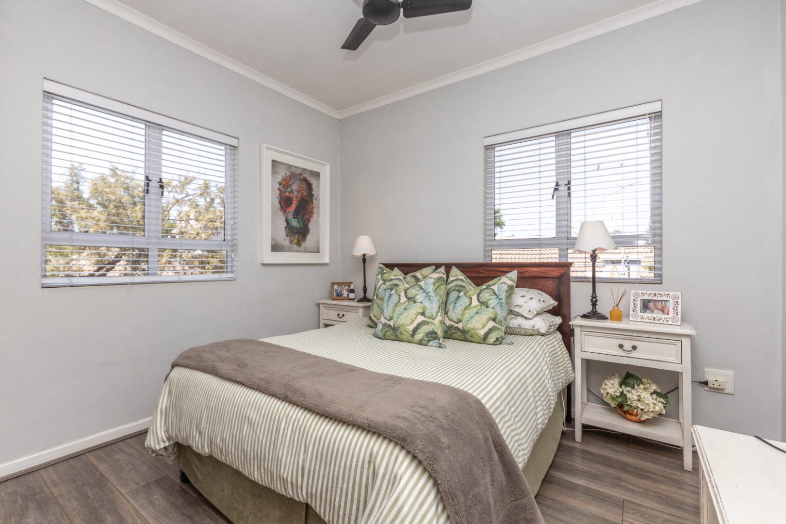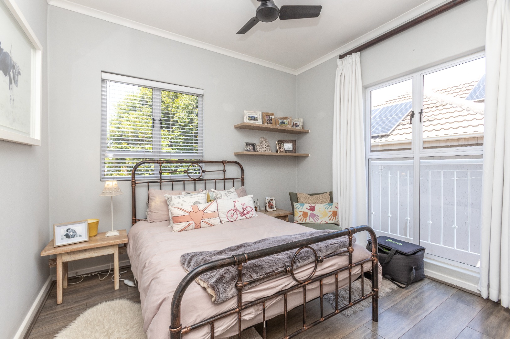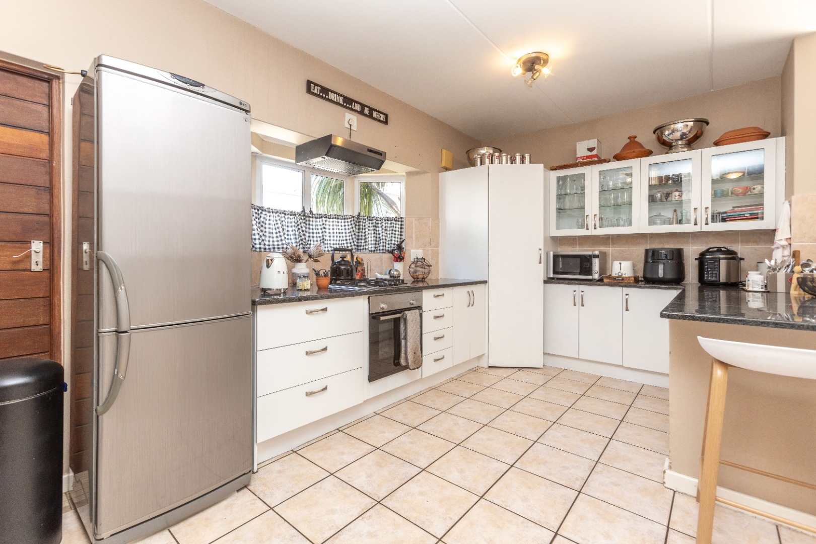The cozy lounge, complete with a charming fireplace, seamlessly extends to the patio. Here, you'll find a built-in braai and elegant stack doors that open to your private garden. An additional open patio offers the perfect setting for alfresco dining, making entertaining a delight. The home is thoughtfully designed with the convenience of a guest loo.