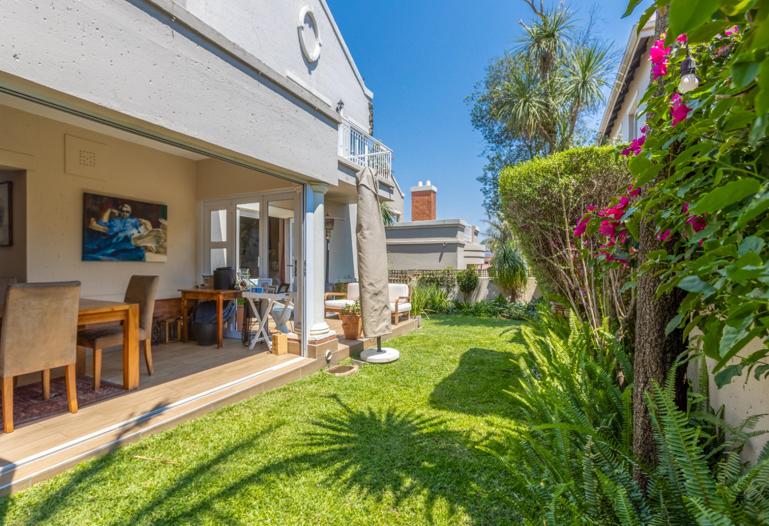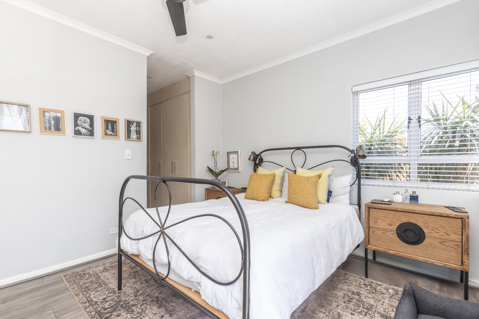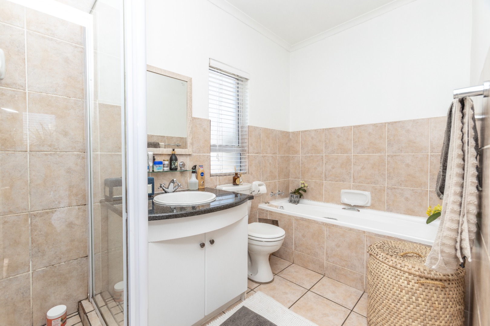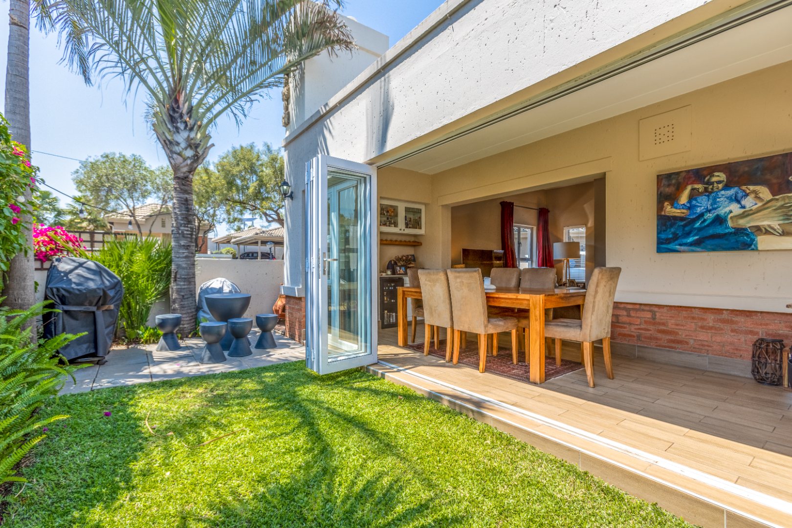 The cozy lounge, complete with a charming fireplace, seamlessly extends to the patio. Here, you'll find a built-in braai and elegant stack doors that open to your private garden. An additional open patio offers the perfect setting for alfresco dining, making entertaining a delight. The home is thoughtfully designed with the convenience of a guest loo.