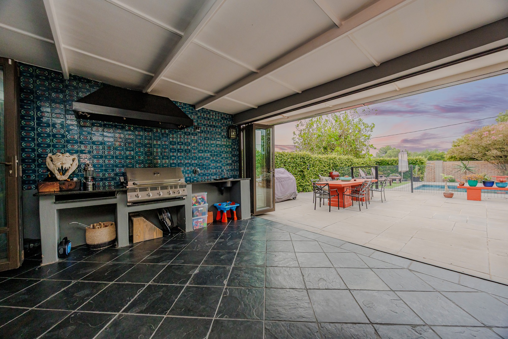 Step inside and be greeted by generous living spaces that flow seamlessly from the large lounge into an inviting open braai room, which opens out to a sparkling swimming pool and a lush, well-established garden—the ideal setting for family gatherings, weekend braais, and relaxed outdoor living.