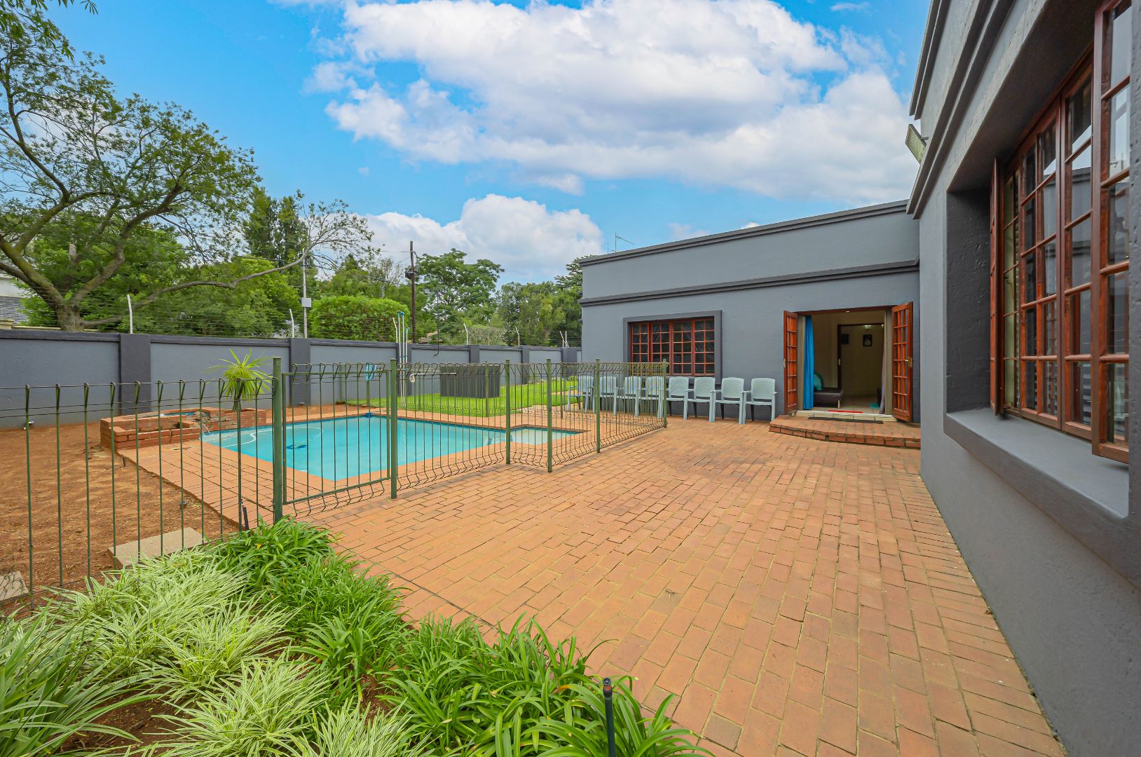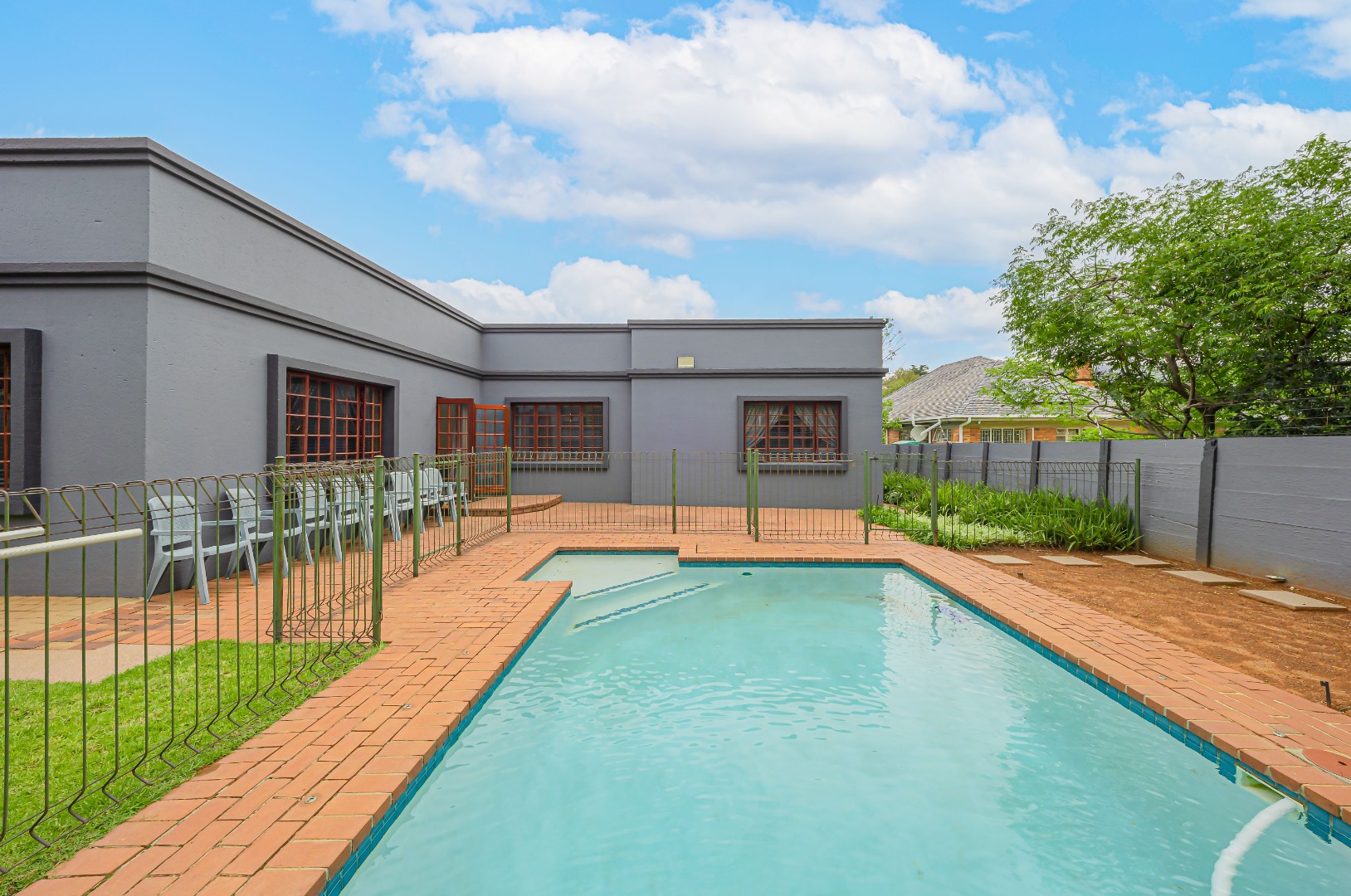 The property features a lovely, well-established garden with a swimming pool, perfect for outdoor relaxation and entertaining.