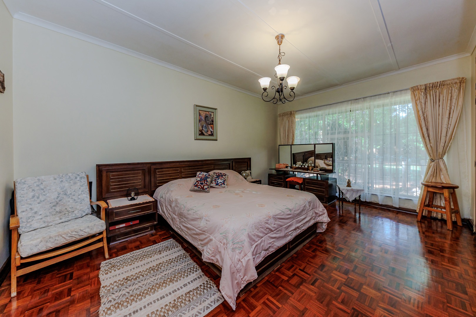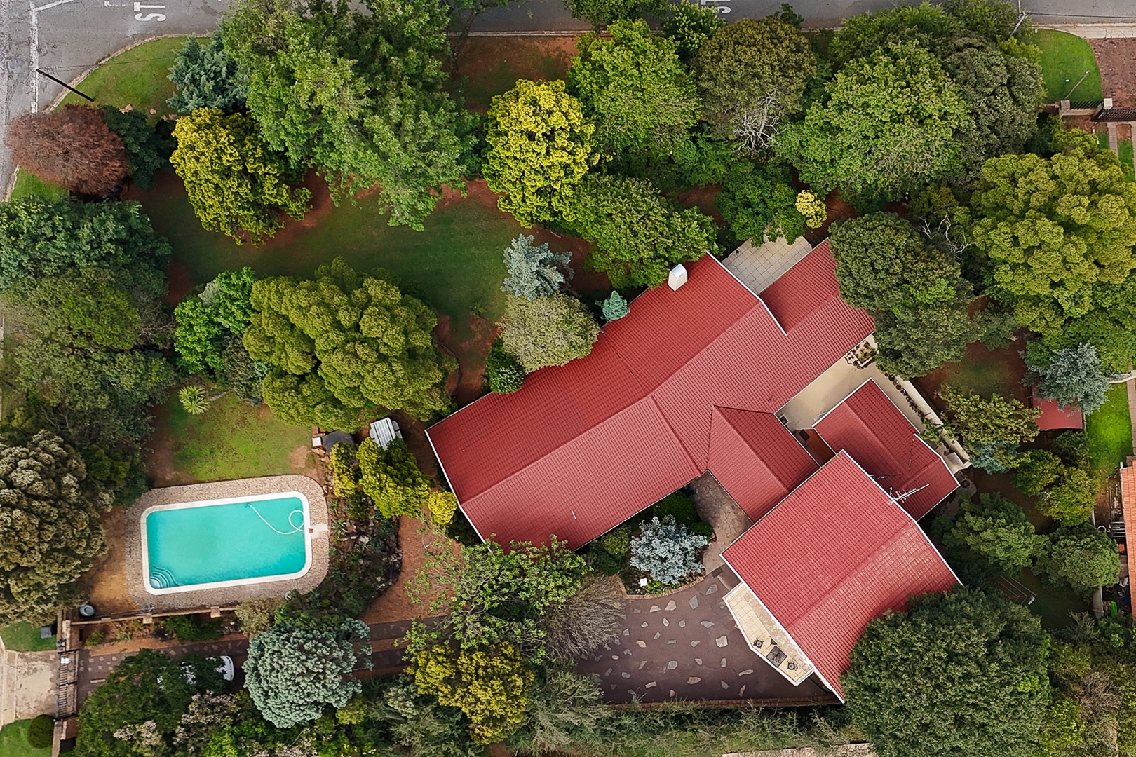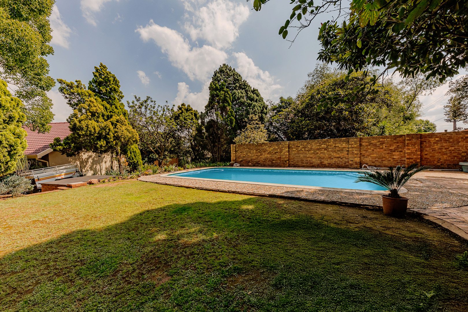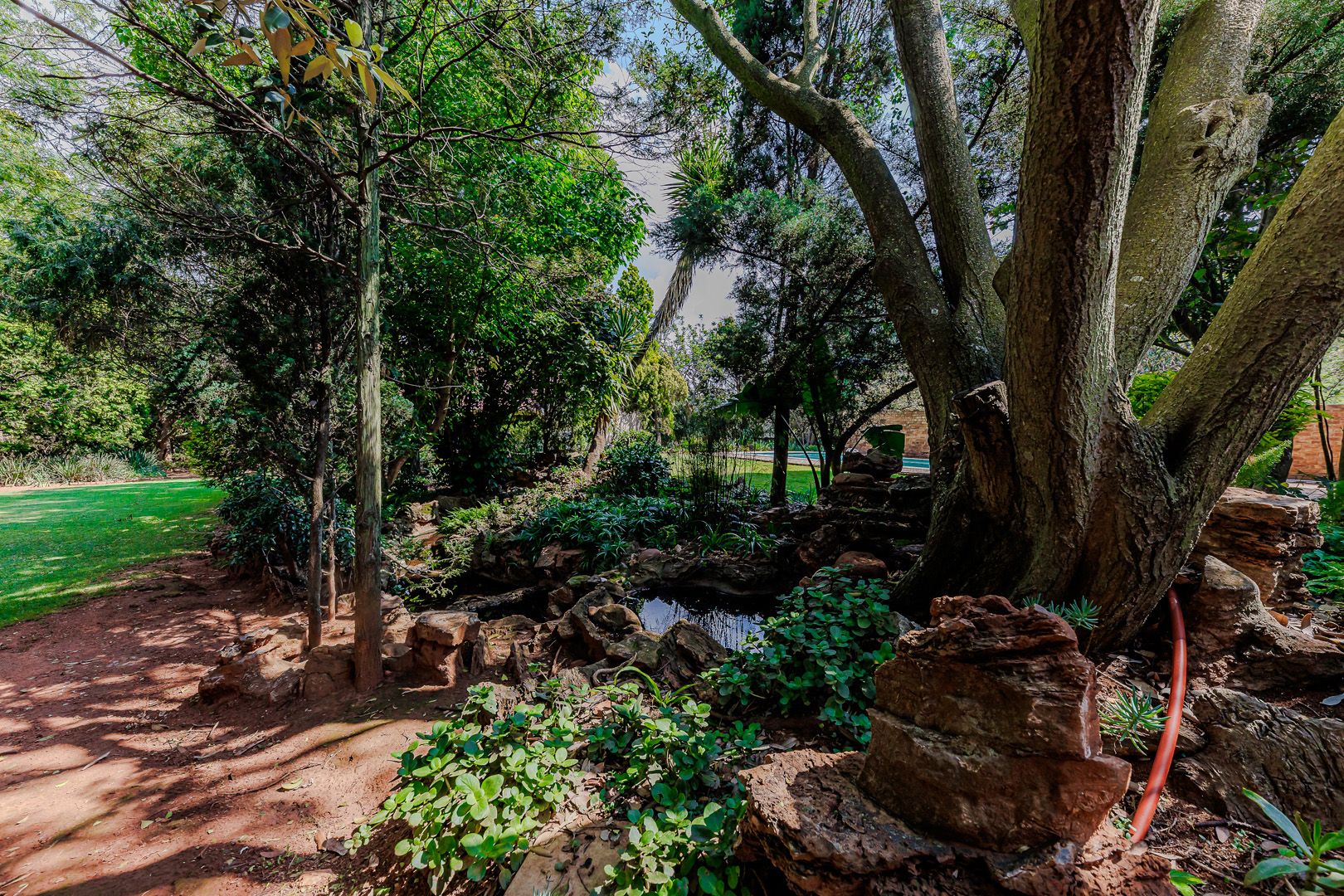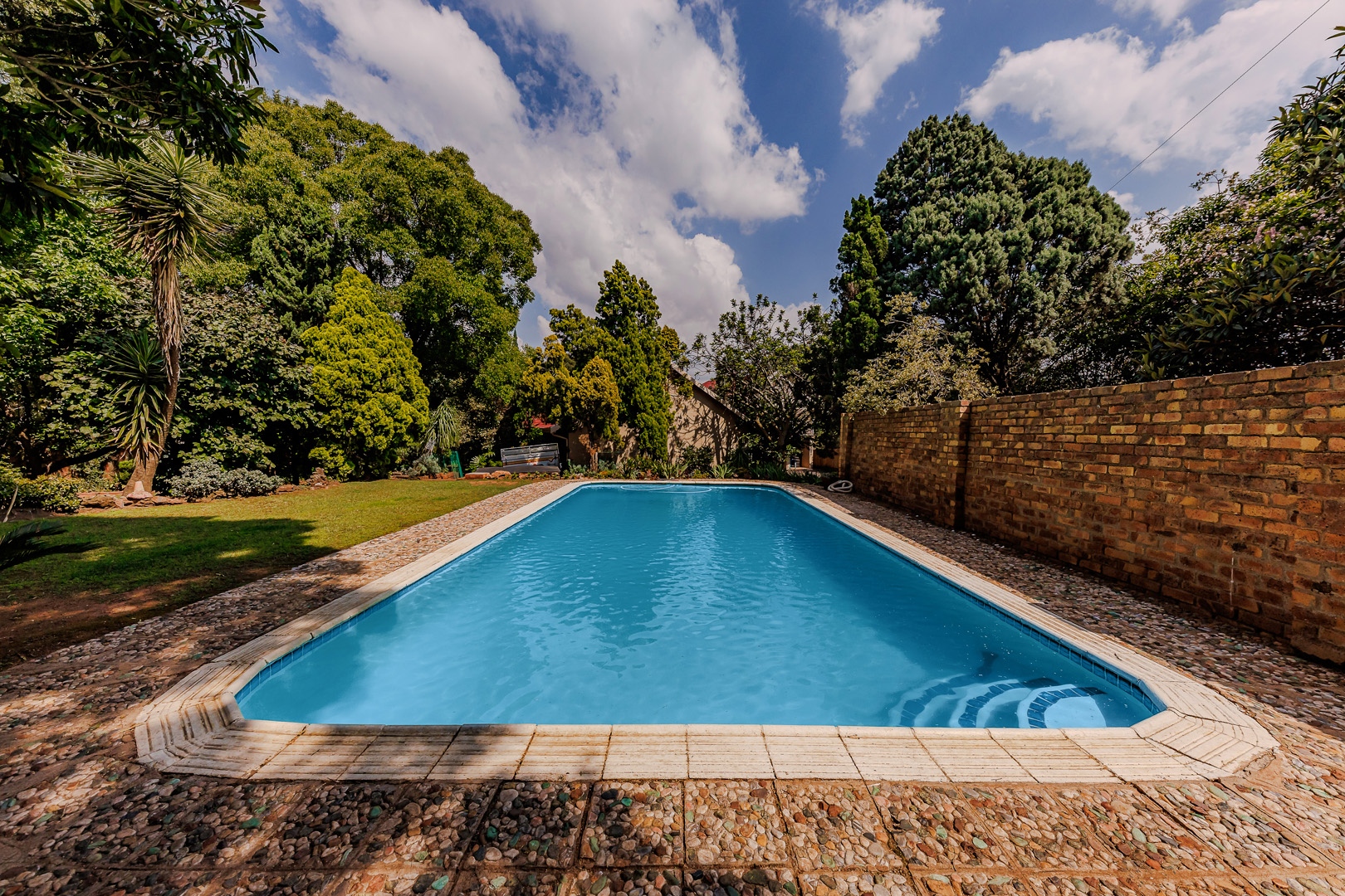 The property boasts a 70,000-litre swimming pool, recently serviced and renewed where needed, with its own electrical distribution box. The established garden features an eight-metre-long waterfall stream powered by an electric pump. The outdoor entertainment area provides space for a braai, while the double automated garage and single garage, plus long-term open parking for one additional vehicle, offer ample parking. A dedicated storeroom provides space for garden tools, and a borehole with pump controller ensures reliable water supply (no irrigation system installed).