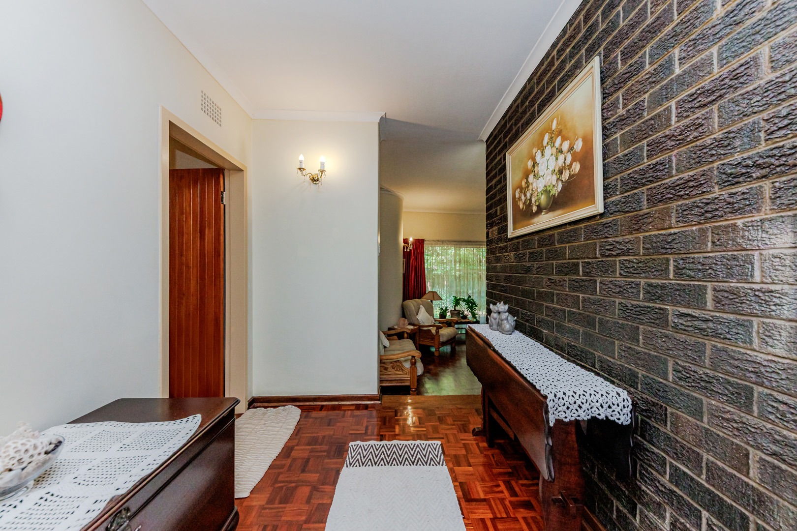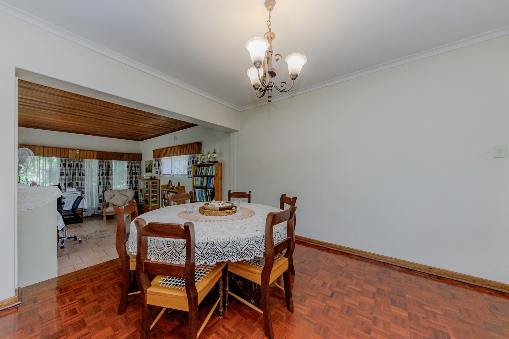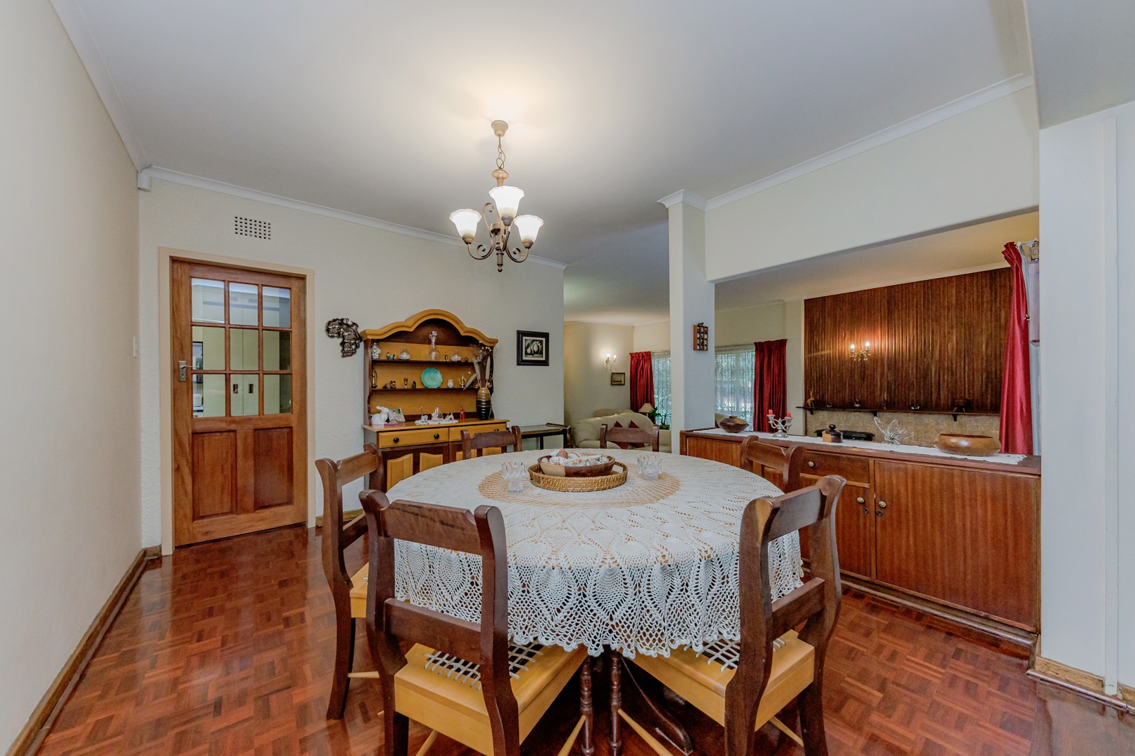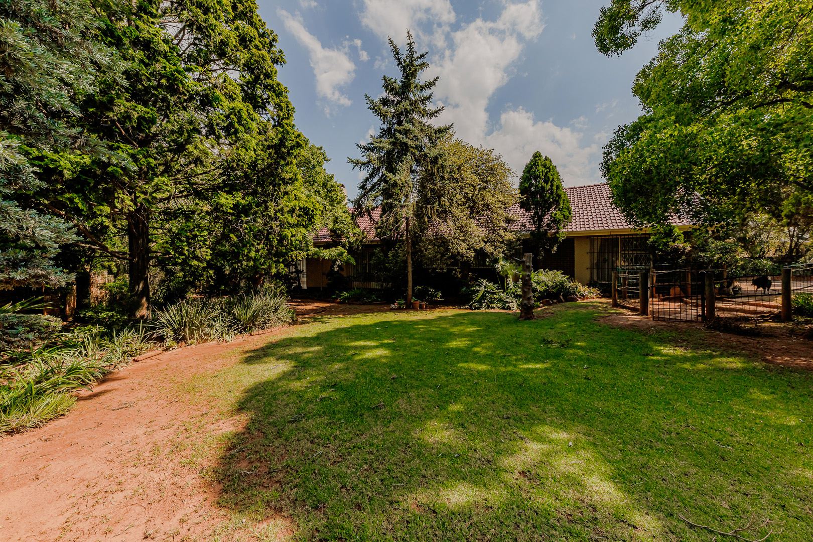 The property boasts a 70,000-litre swimming pool, recently serviced and renewed where needed, with its own electrical distribution box. The established garden features an eight-metre-long waterfall stream powered by an electric pump. The outdoor entertainment area provides space for a braai, while the double automated garage and single garage, plus long-term open parking for one additional vehicle, offer ample parking. A dedicated storeroom provides space for garden tools, and a borehole with pump controller ensures reliable water supply (no irrigation system installed).