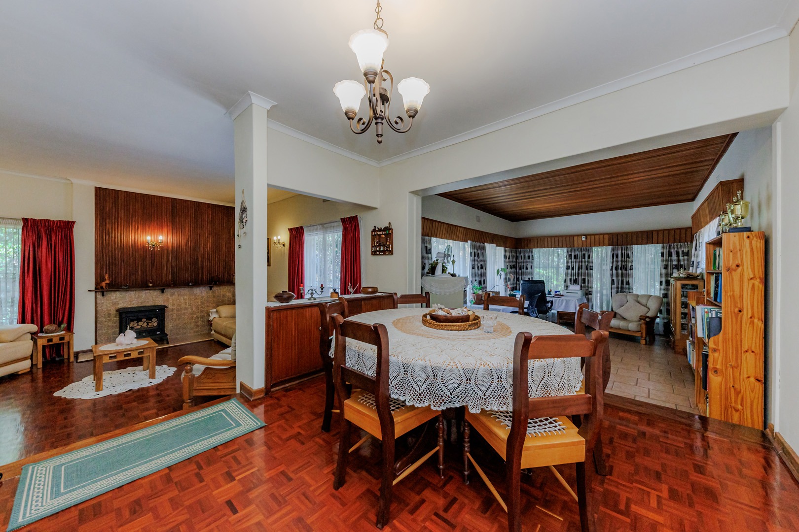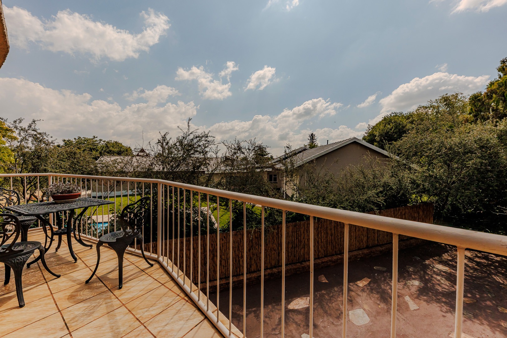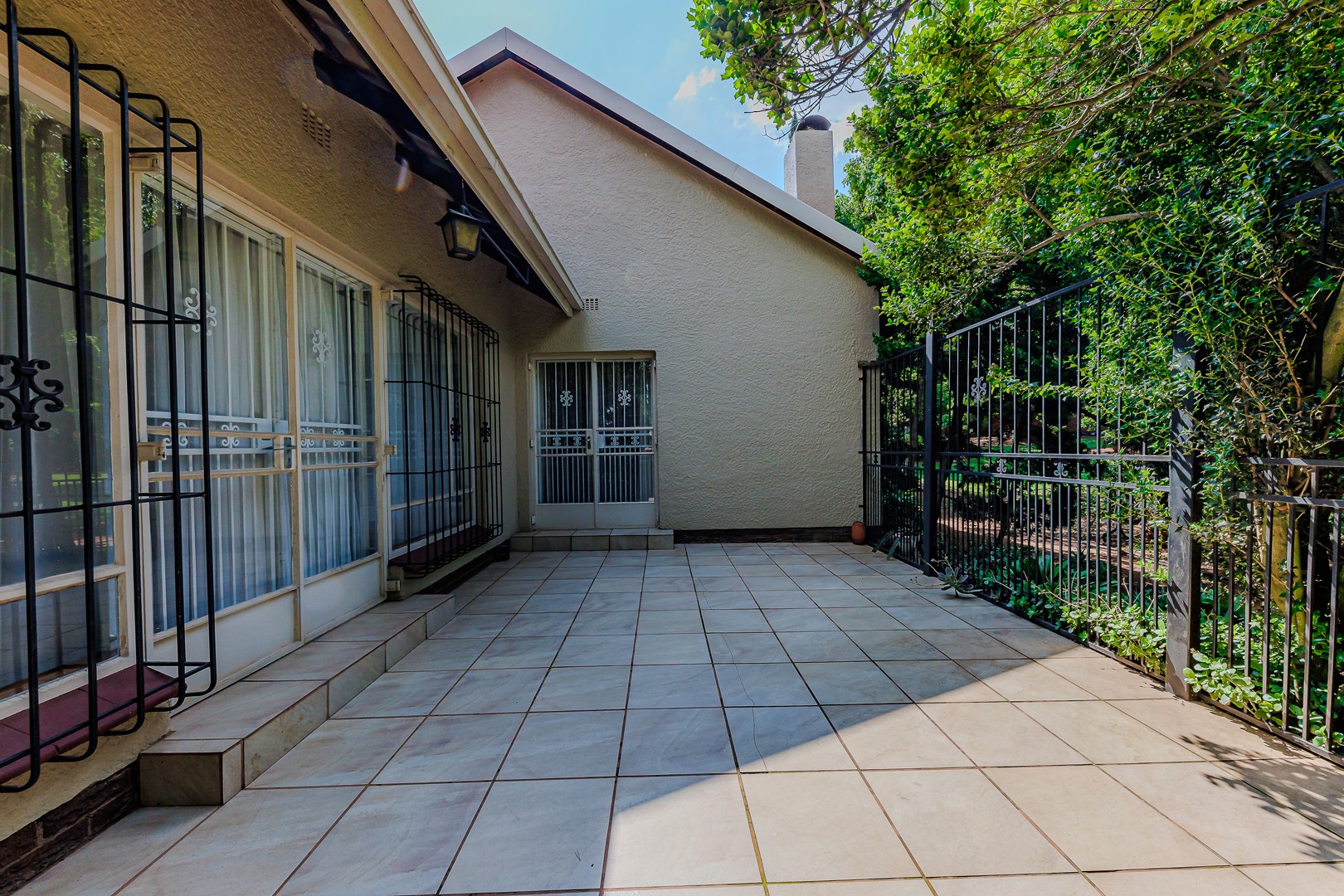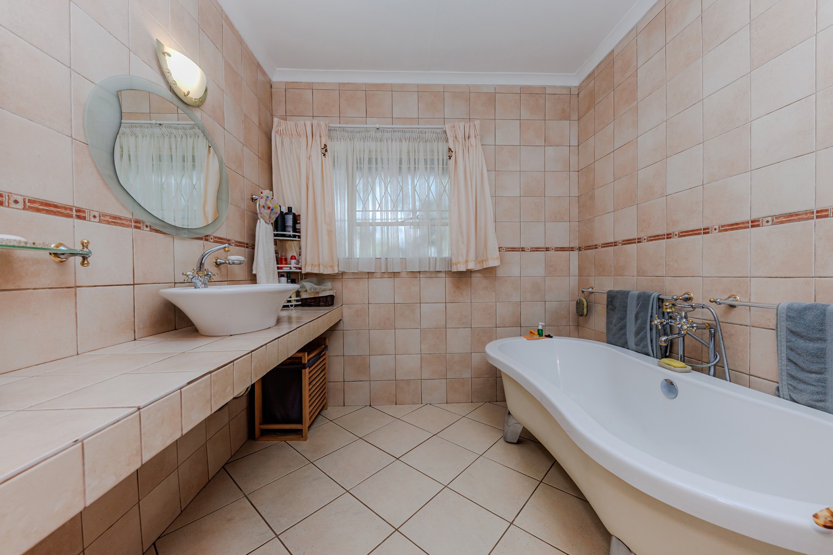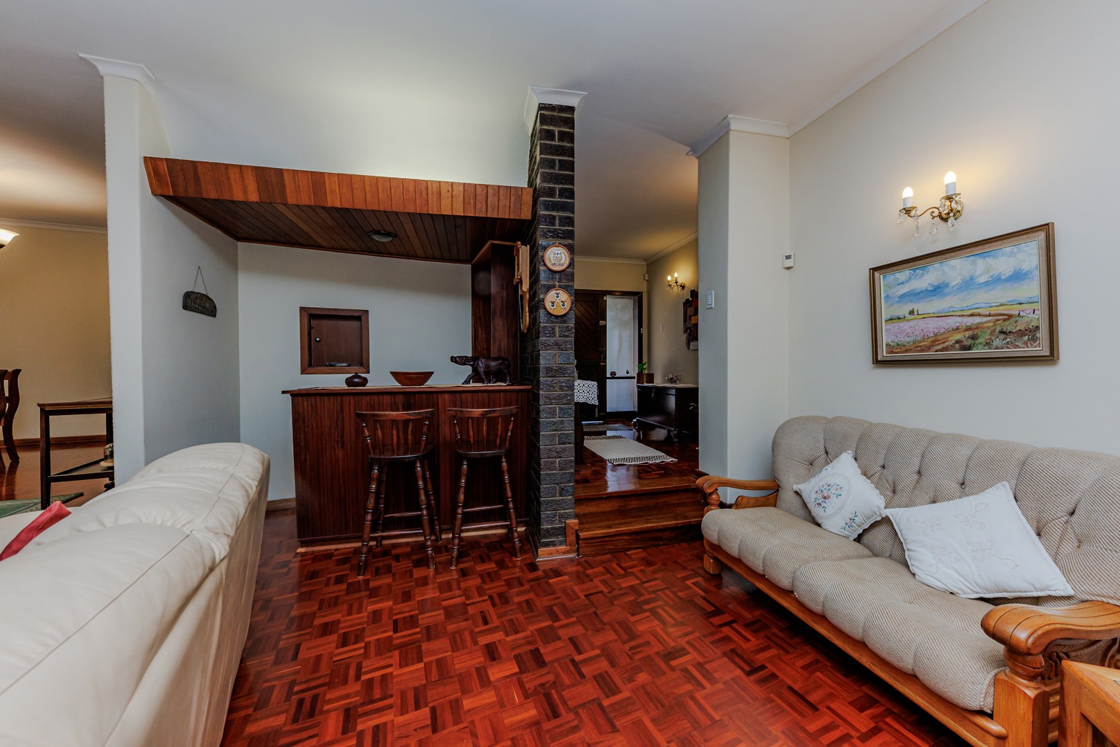 The property boasts a 70,000-litre swimming pool, recently serviced and renewed where needed, with its own electrical distribution box. The established garden features an eight-metre-long waterfall stream powered by an electric pump. The outdoor entertainment area provides space for a braai, while the double automated garage and single garage, plus long-term open parking for one additional vehicle, offer ample parking. A dedicated storeroom provides space for garden tools, and a borehole with pump controller ensures reliable water supply (no irrigation system installed).