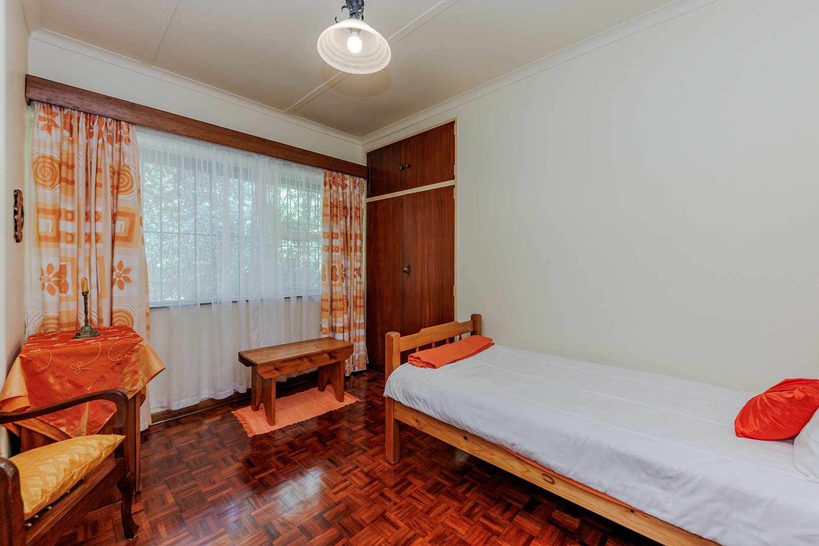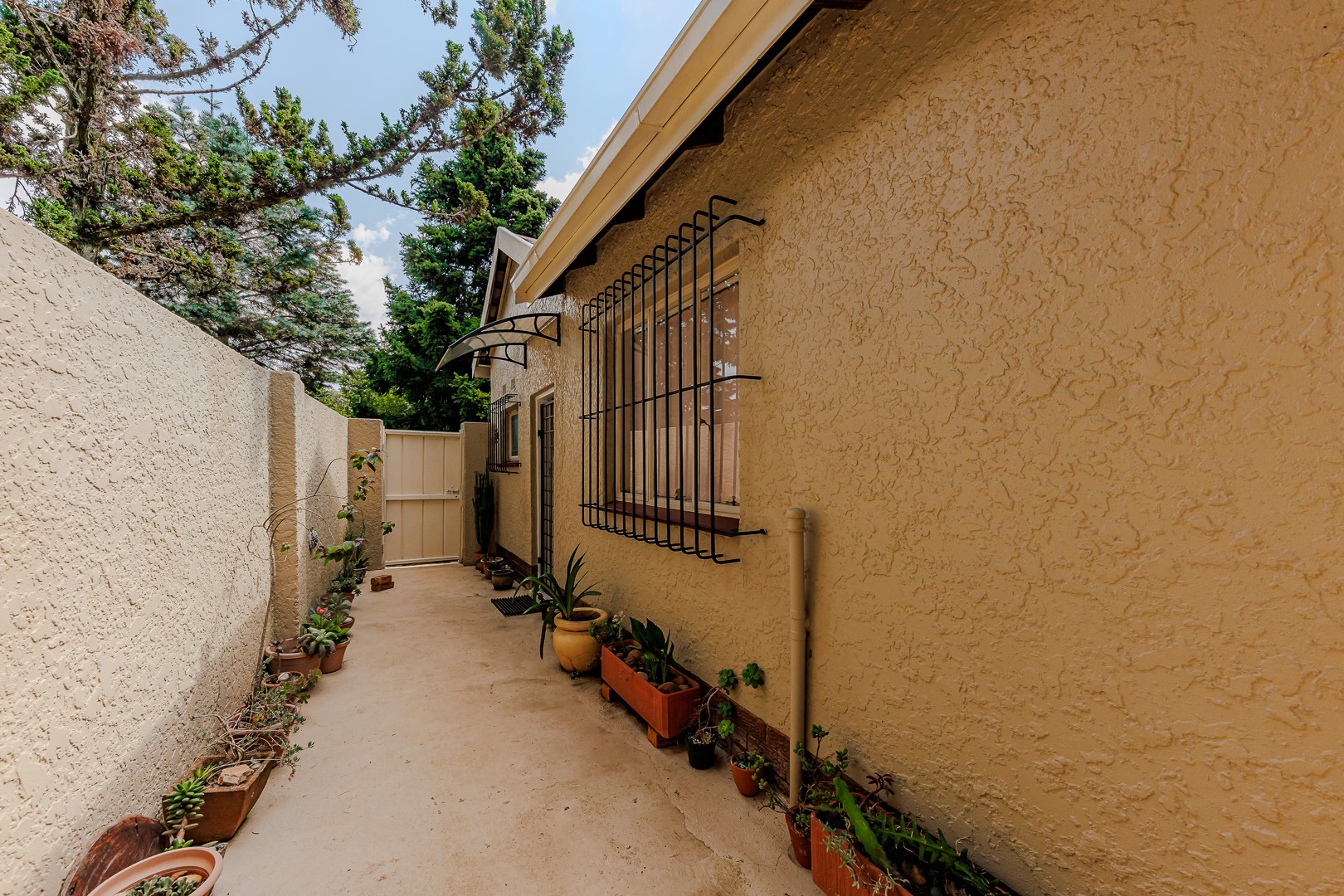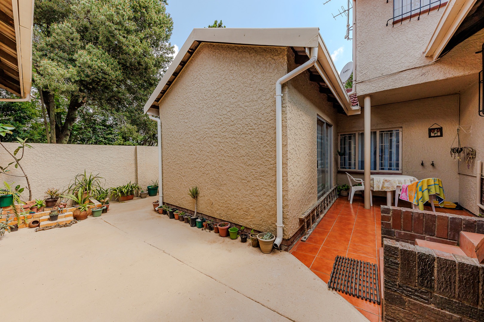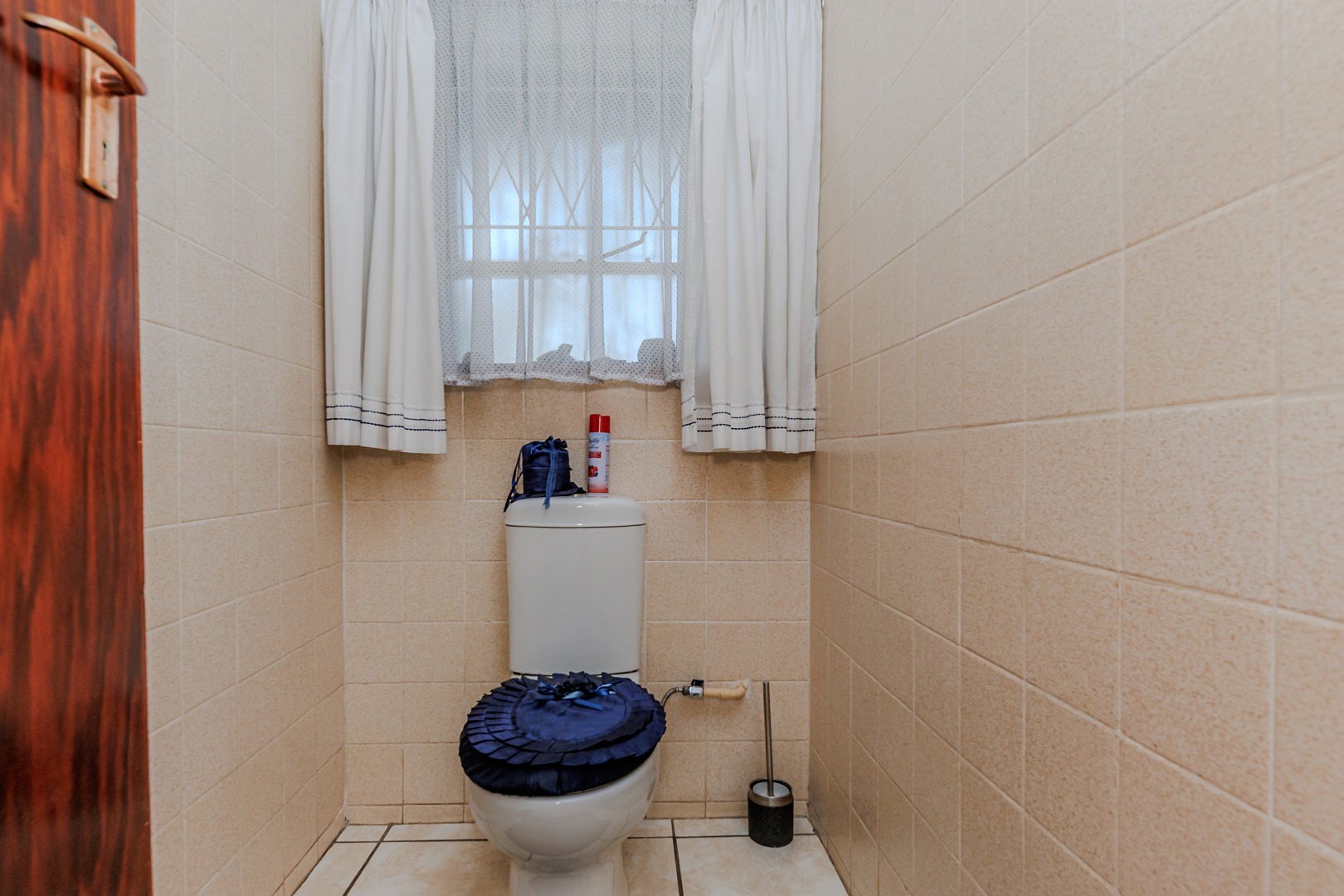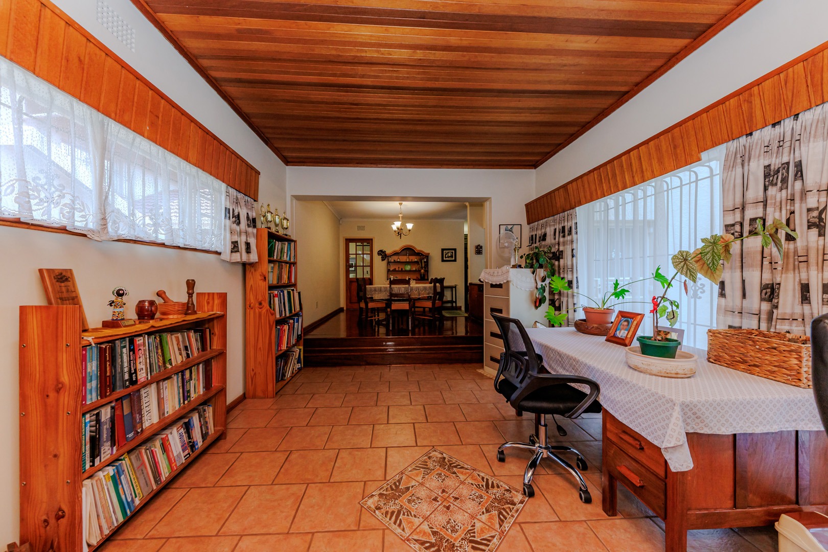 The property boasts a 70,000-litre swimming pool, recently serviced and renewed where needed, with its own electrical distribution box. The established garden features an eight-metre-long waterfall stream powered by an electric pump. The outdoor entertainment area provides space for a braai, while the double automated garage and single garage, plus long-term open parking for one additional vehicle, offer ample parking. A dedicated storeroom provides space for garden tools, and a borehole with pump controller ensures reliable water supply (no irrigation system installed).