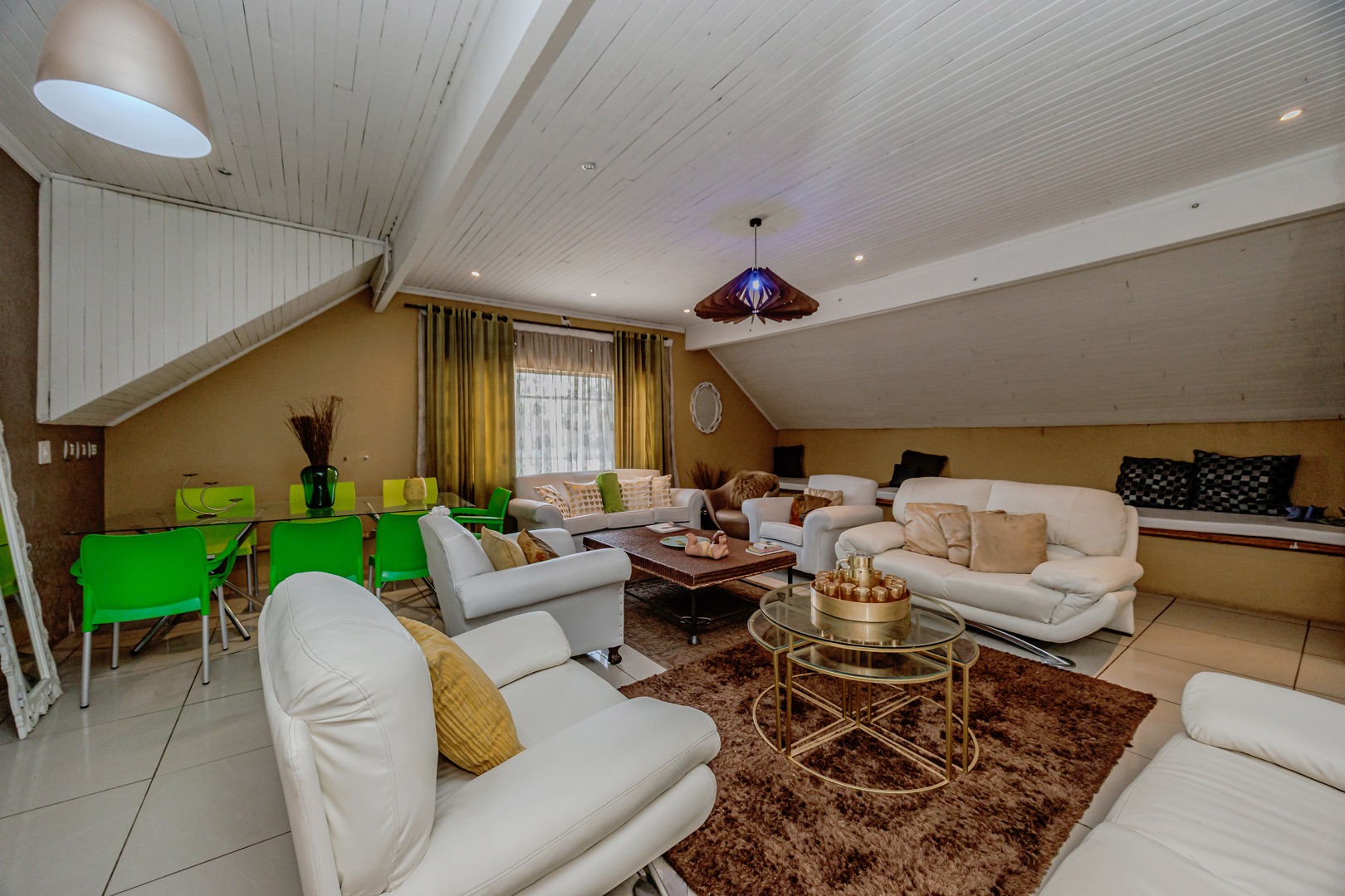 Outside, the property continues to impress with three garages, ample additional parking, a large garden ideal for kids and pets, and plenty of storage space throughout. An outside bachelor’s cottage or staff room adds even more versatility. The home is also fitted with a pre-paid electricity meter, offering practical, cost-effective living.