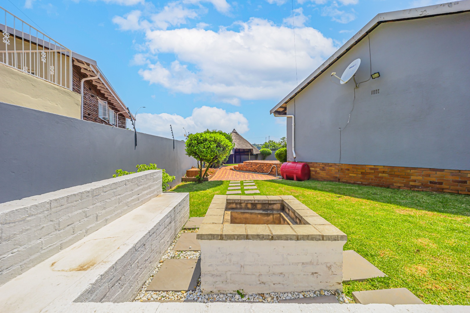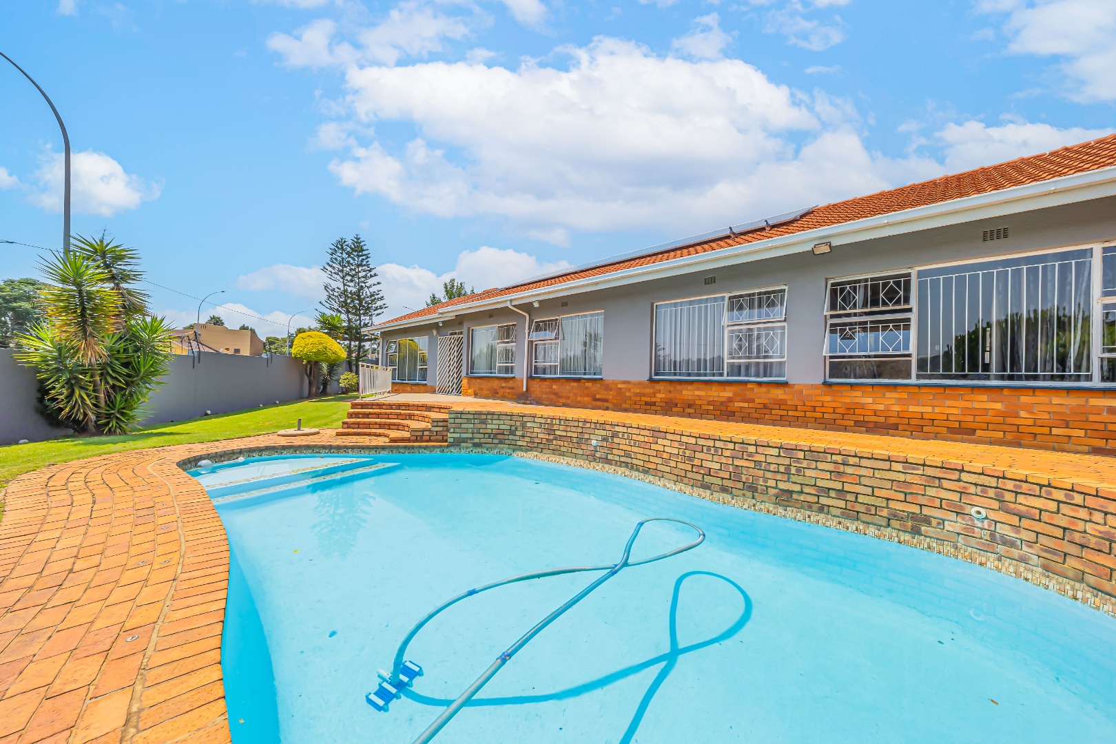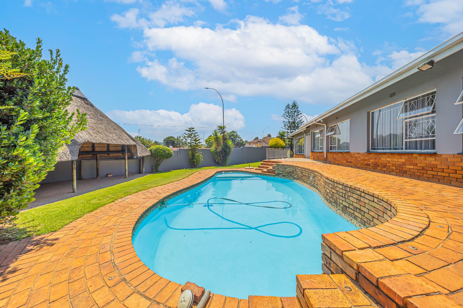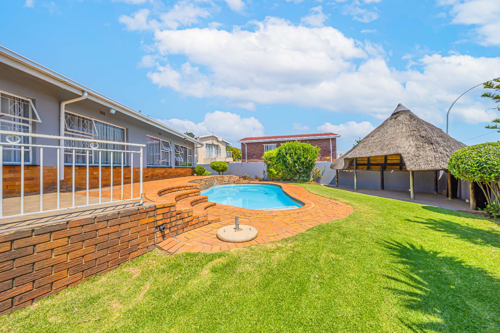 Outdoor features include a swimming pool with thatched lapa and a boma area, perfect for entertaining. Additional highlights include a double garage and a solar system, providing energy efficiency and peace of mind.