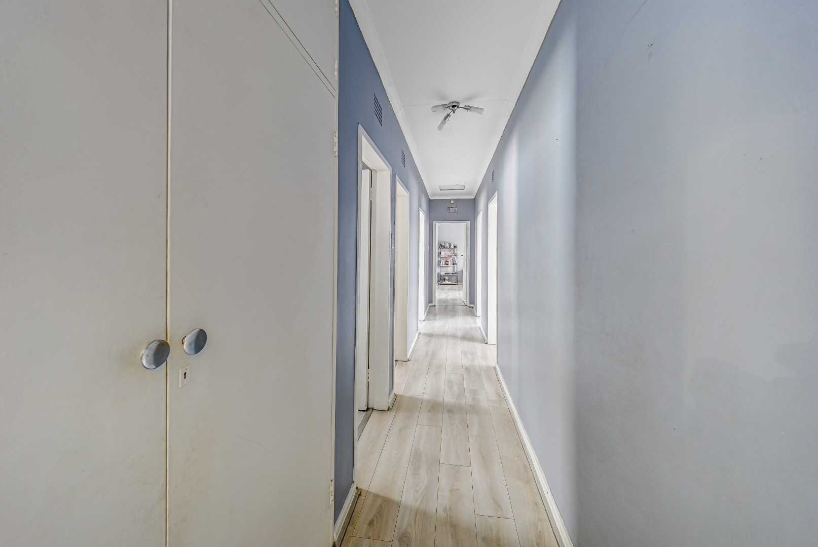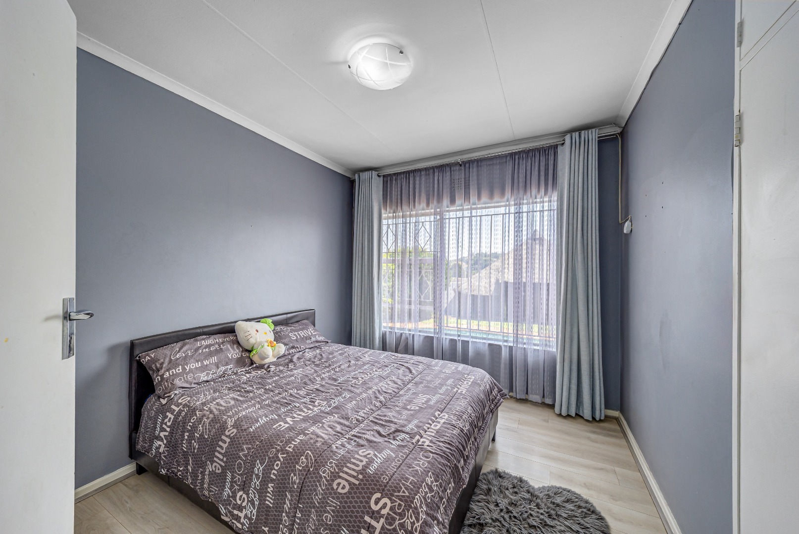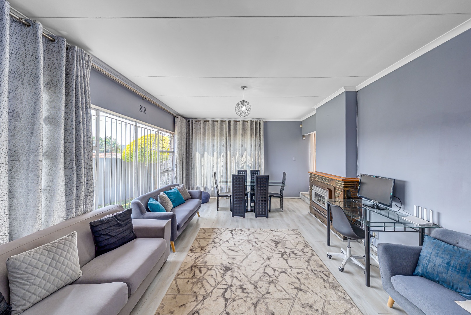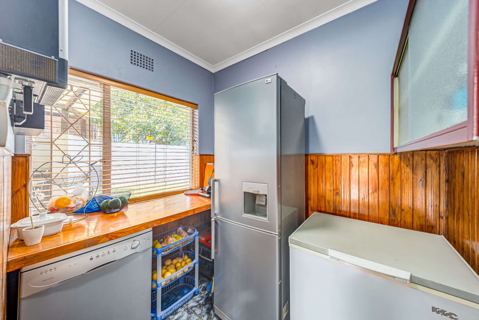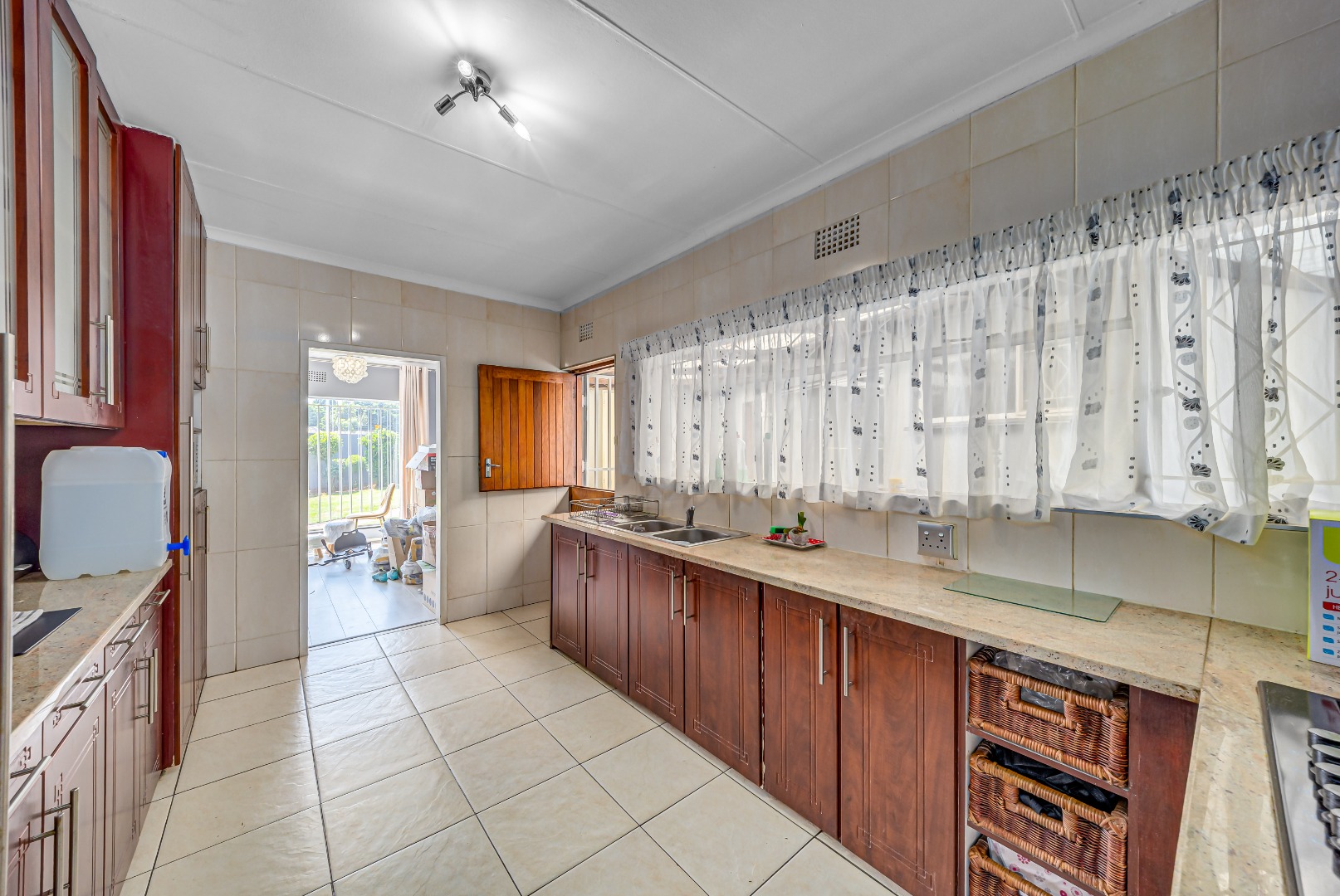 As you enter the home, you are welcomed into a neat kitchen fitted with a gas stove, double sink, and ample cupboard space, complemented by a separate scullery for added convenience. The open-plan lounge and dining area create a relaxed and functional living space ideal for family life.