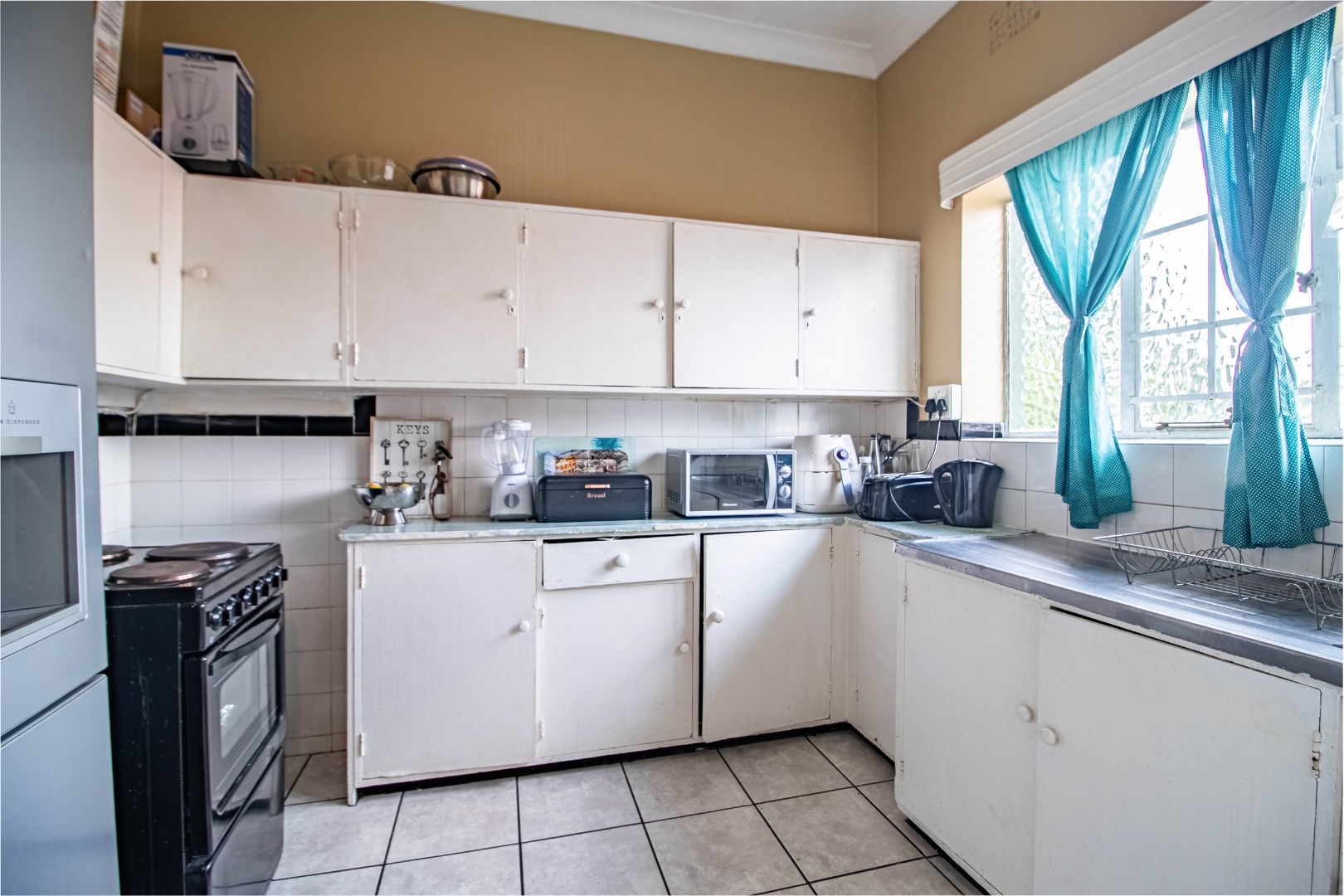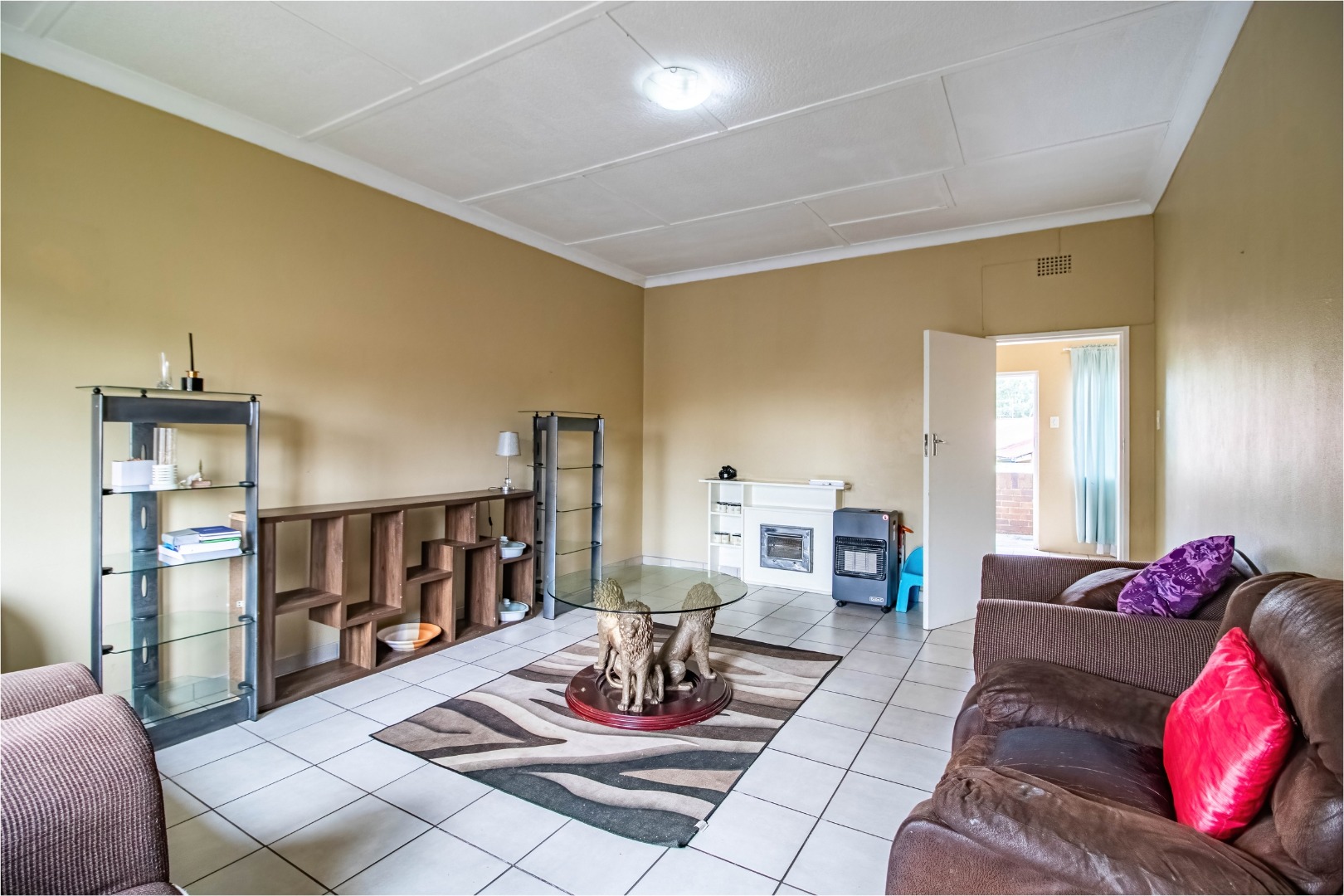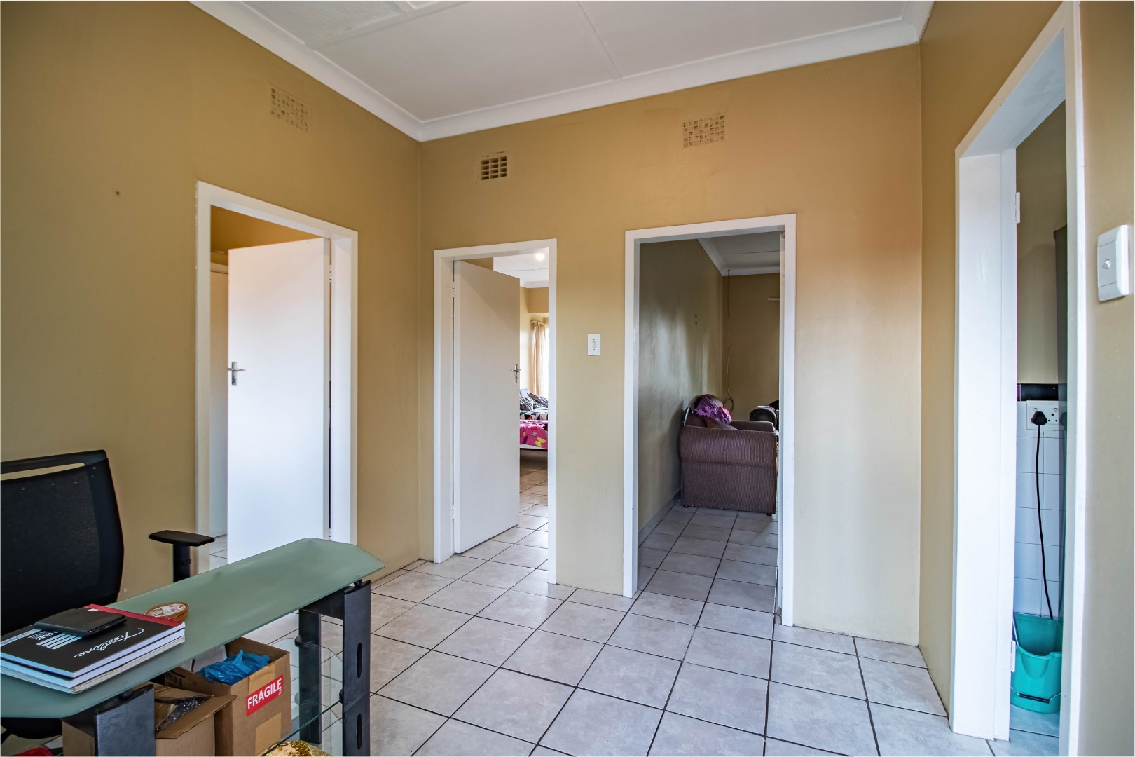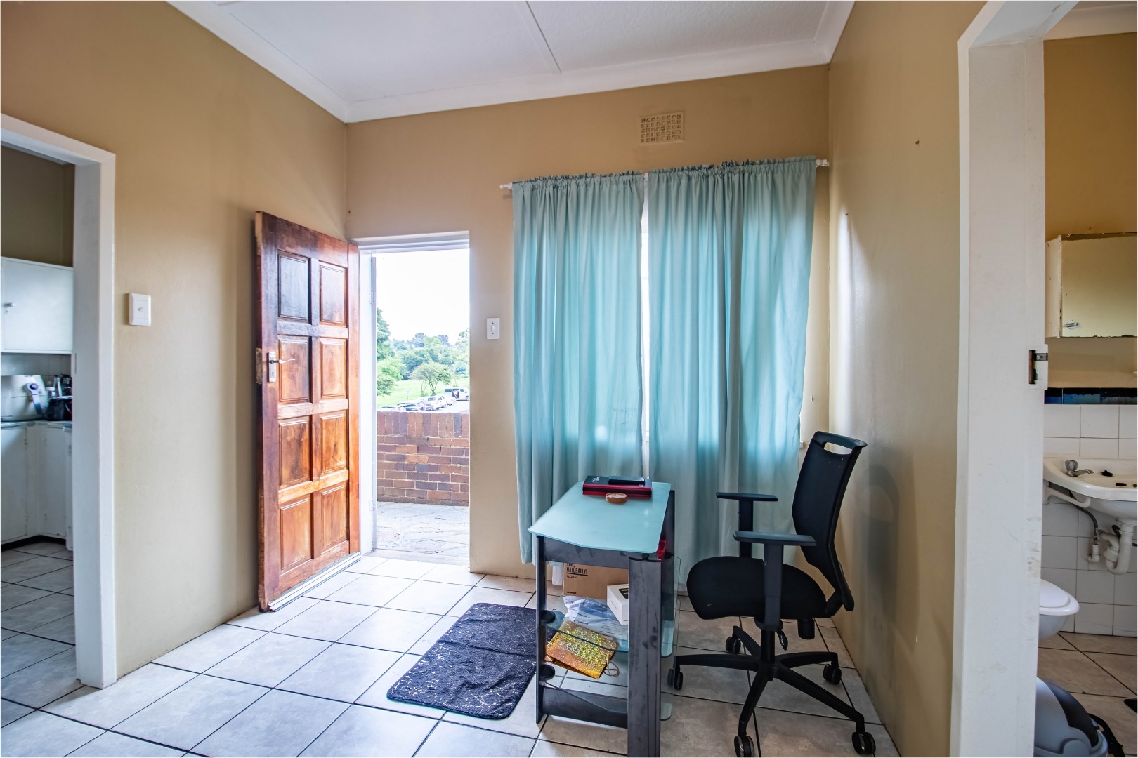 The semi-tiled bathroom is practical and well laid out, while tiled flooring throughout the apartment ensures easy maintenance and durability.