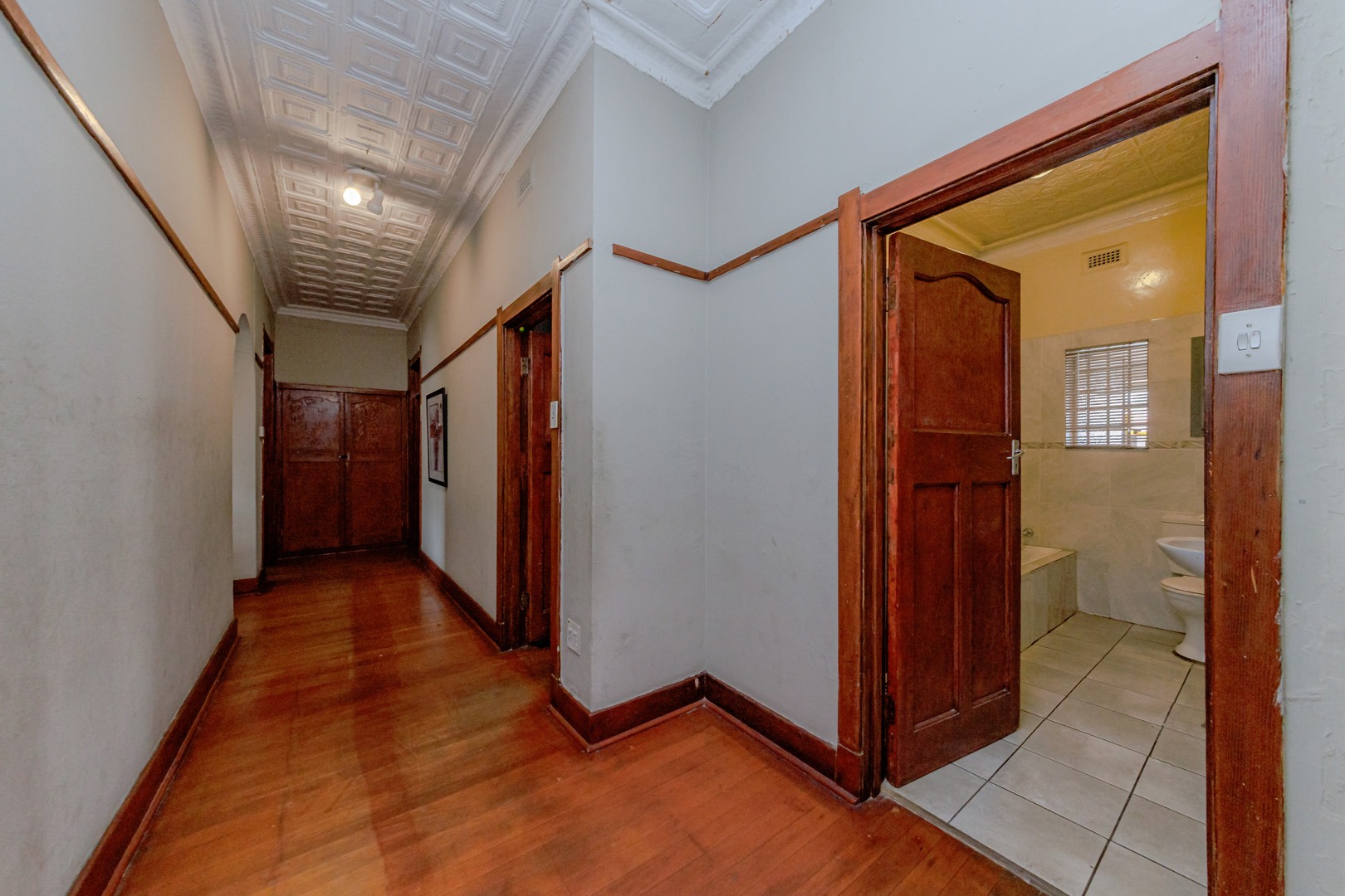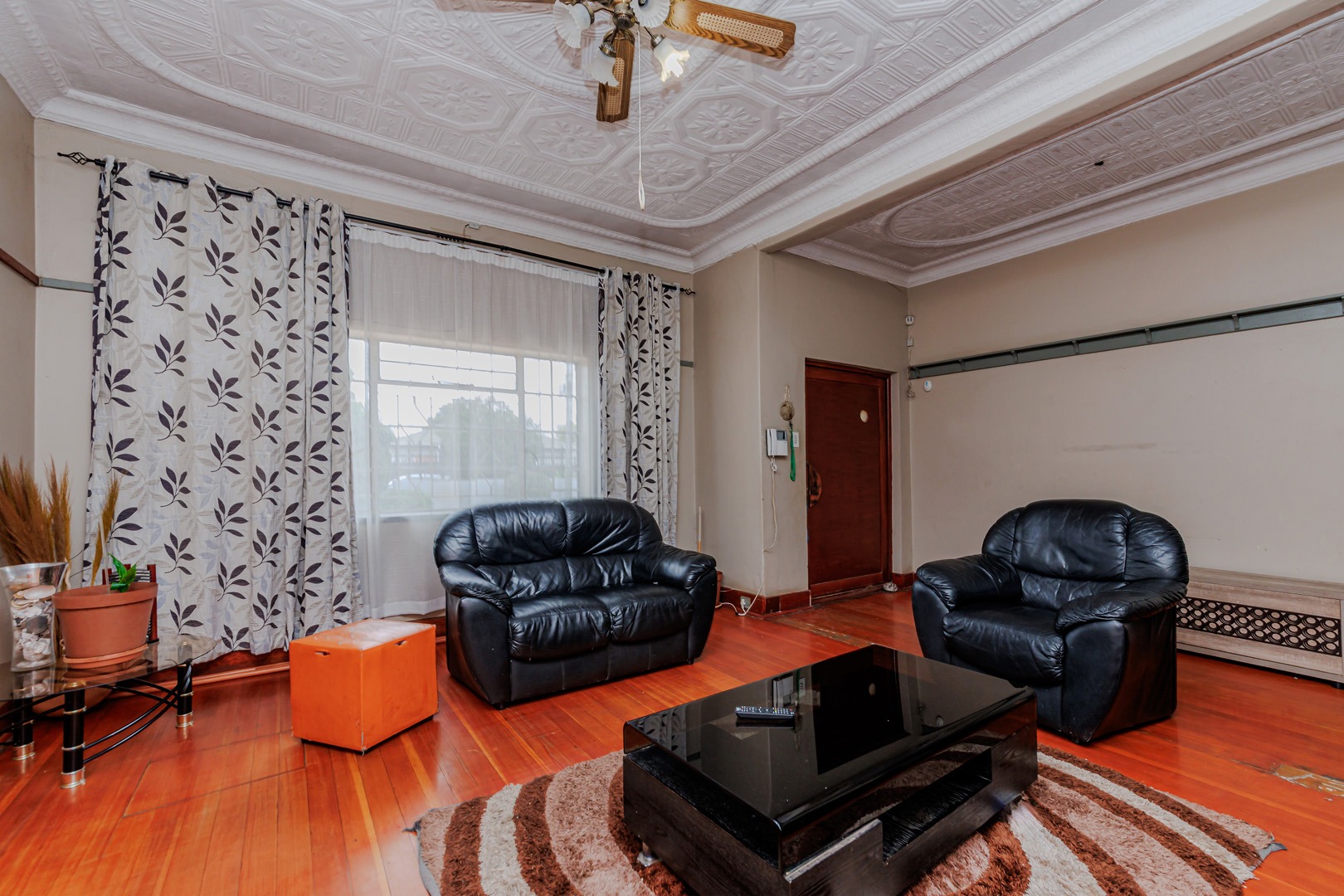 Down the passage, you’ll find three comfortable bedrooms, all featuring elegant wooden floors and built-in cupboards. The main bedroom includes a private en-suite toilet, while the shared family bathroom is fitted with a bath, basin, shower, and toilet.