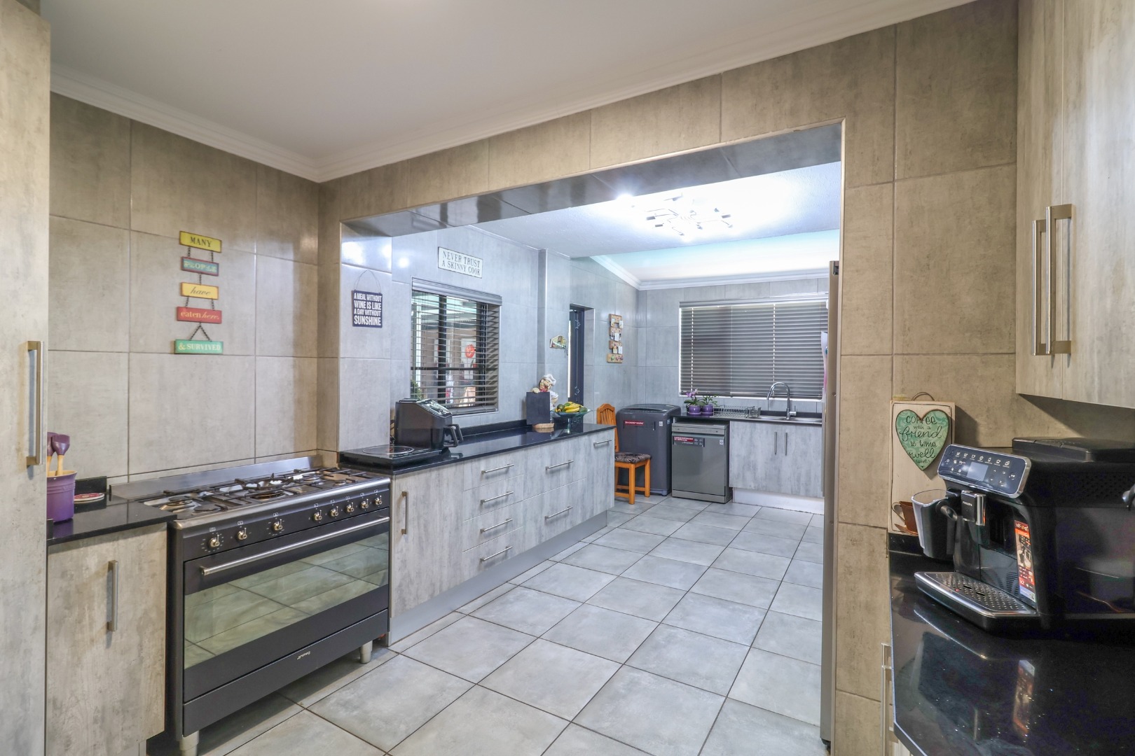 As you step inside the main house, you'll be greeted by an open-plan living area, complete with a spacious lounge and dining room. The kitchen is a culinary delight, boasting modern design and top-of-the-line Smeg gas stove and gas oven. Abundant cupboard space, as well as provisions for a dishwasher, washing machine, and double-door fridge, ensure that both functionality and style are seamlessly combined.