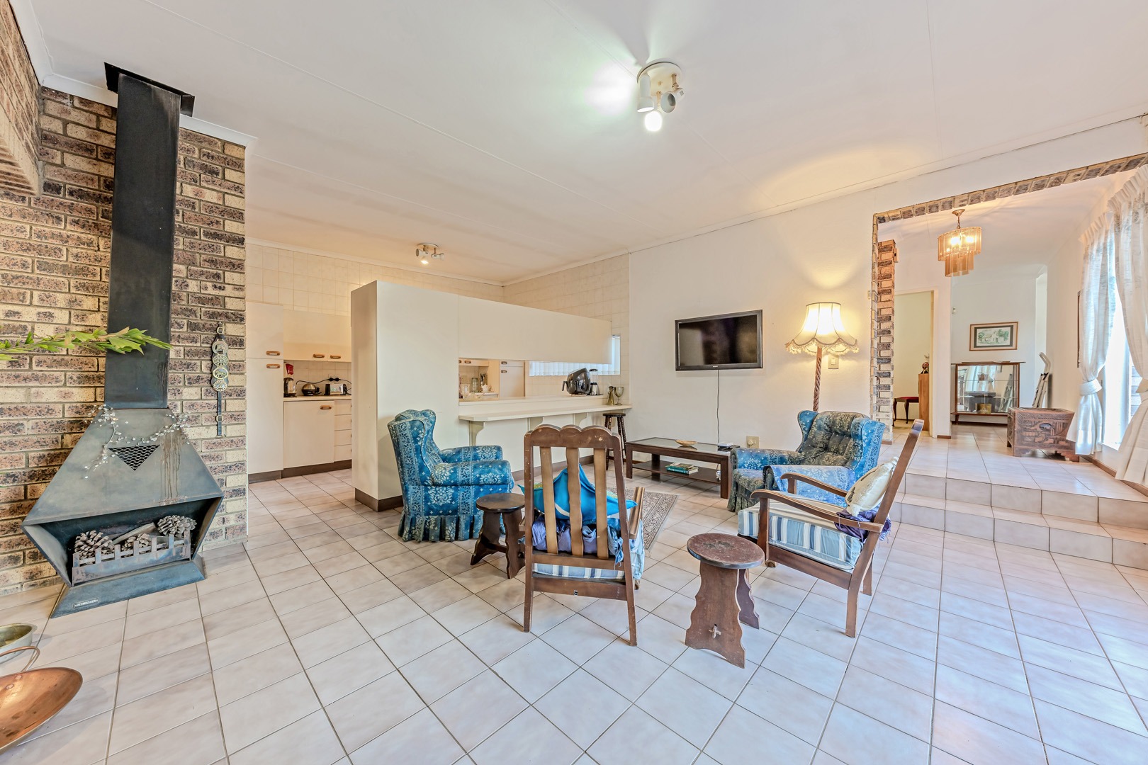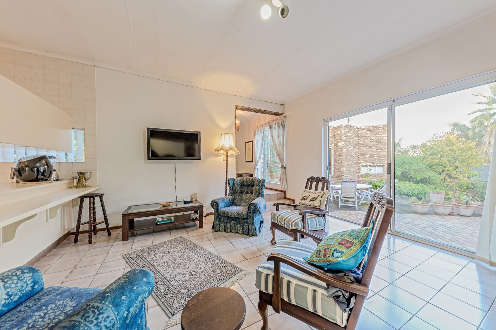 - A stylish living room, cozy TV room, and an elegant dining area
