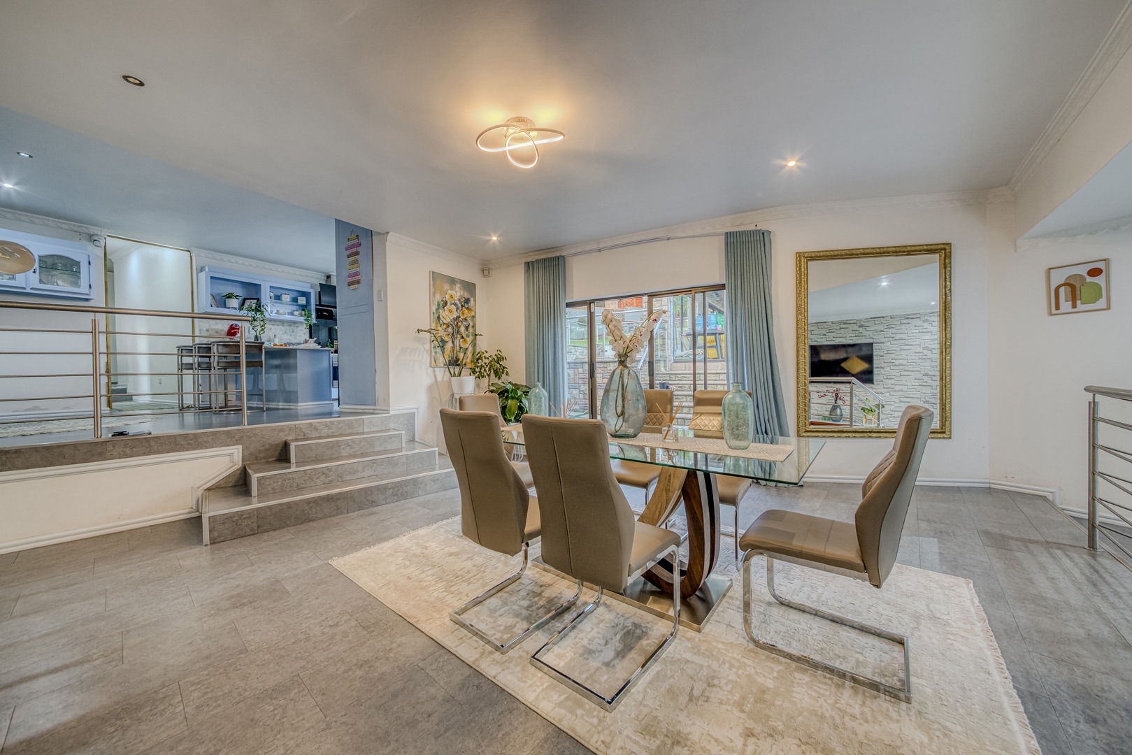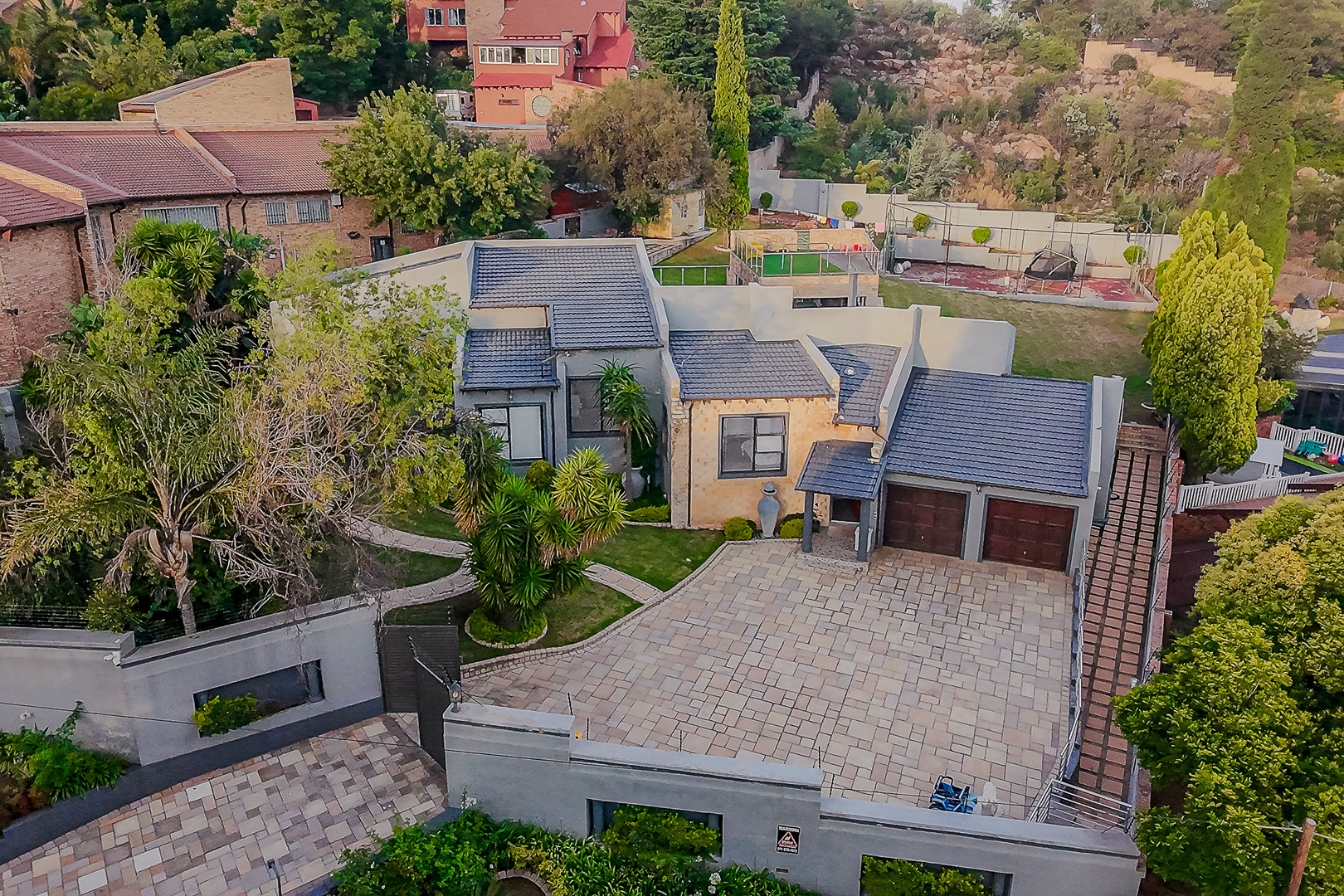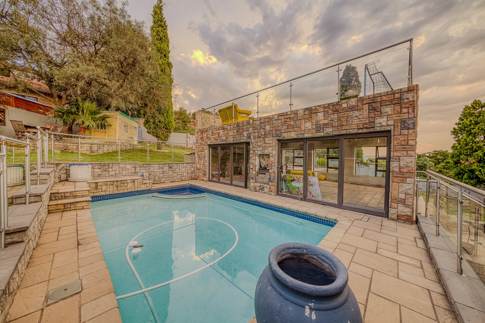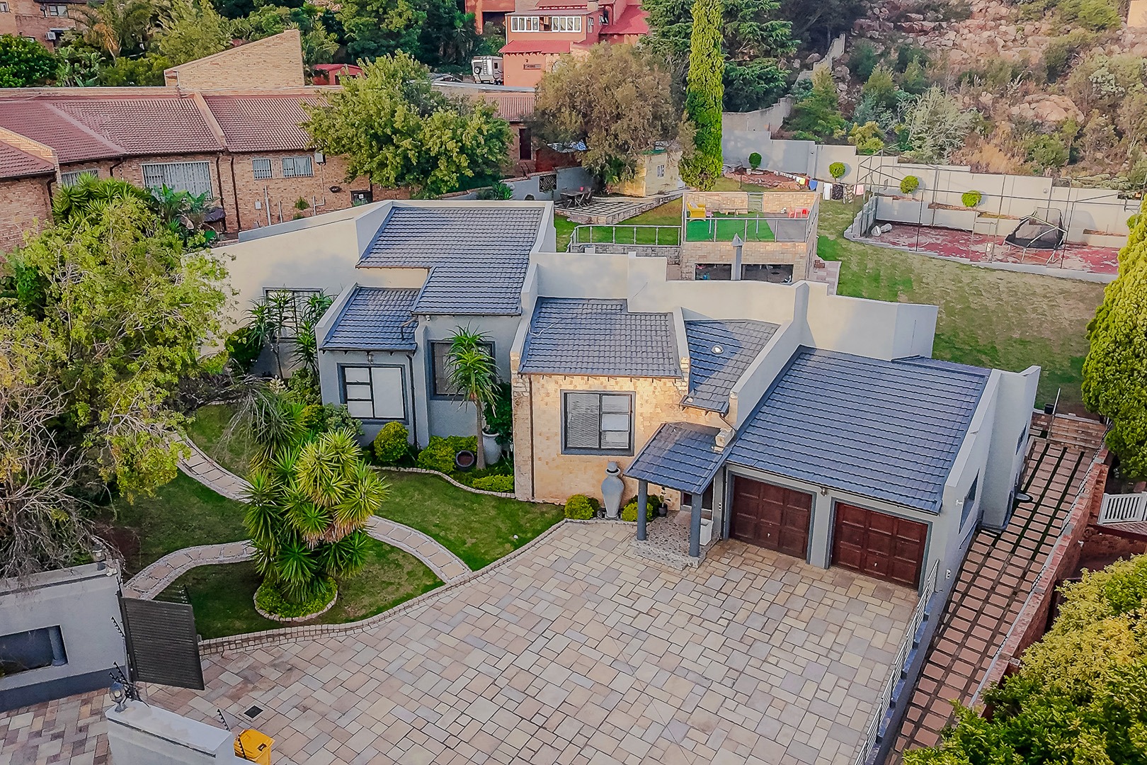 This distinguished 4-bedroom, 2.5-bathroom residence, situated on an expansive 1834 sqm erf in Helderkruin View, Roodepoort, offers sophisticated living. The property features a contemporary aesthetic with an intelligently designed split-level open-plan layout, fostering a seamless flow between its two lounges and dedicated dining area. Recessed lighting and ample natural light enhance the modern ambiance throughout the primary living zones. The well-appointed kitchen includes a breakfast bar, ample cabinetry, and a dedicated pantry, catering to both culinary enthusiasts and daily convenience. Accommodation comprises four generously proportioned bedrooms, including one with an en-suite bathroom, complemented by an additional 1.5 bathrooms. A versatile flatlet is also present on the property. Exterior amenities are designed for leisure, featuring a private swimming pool, a meticulously maintained garden, and a built-in braai area. Substantial parking includes two garages and ten open spaces. Security is paramount within this gated community, fortified by an alarm system, electric fencing, and 24-hour surveillance. Helderkruin View is a sought-after residential area in Roodepoort, known for its tranquil environment. Key Features: * 4 Bedrooms, 2.5 Bathrooms (1 En-suite) * 2 Lounges, 1 Dining Room * Private Swimming Pool & Garden * 2 Garages, 10 Parking Spaces * Gated Community with 24-Hour Security * Borehole, Water Tanks, Electric Fencing * Built-in Braai, Flatlet, Wendy House