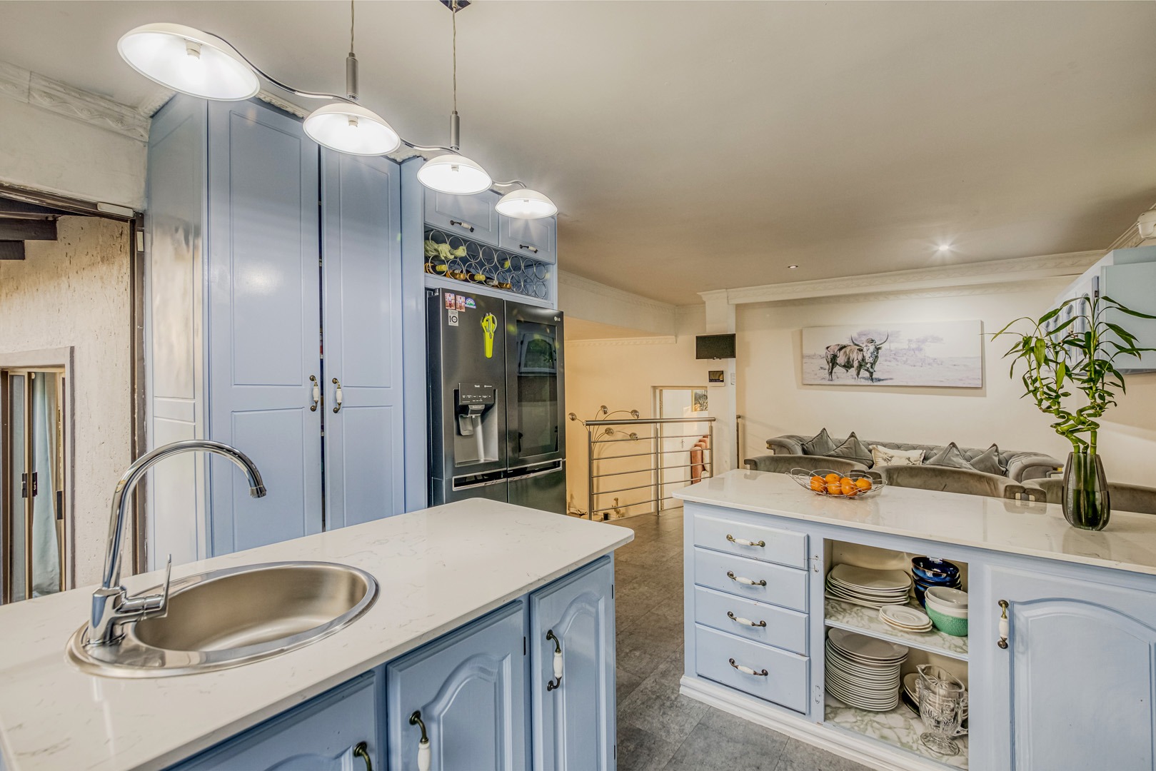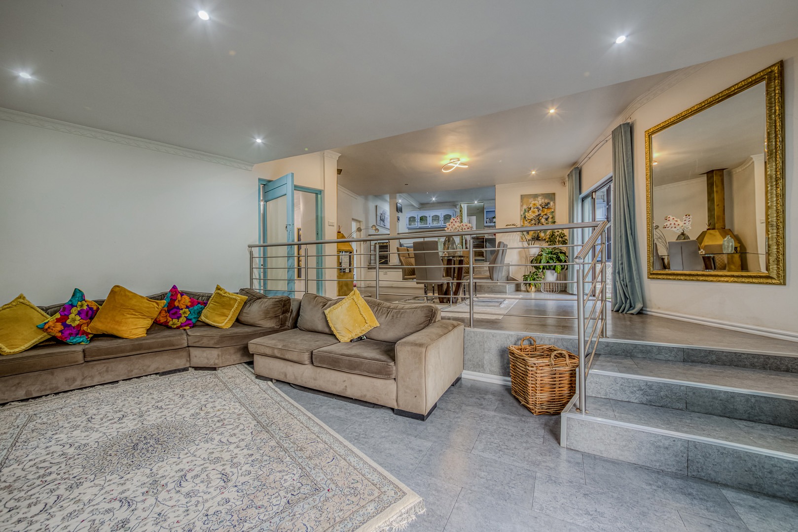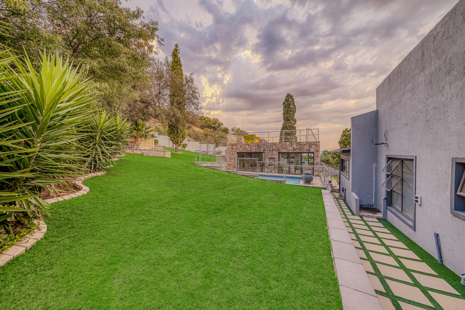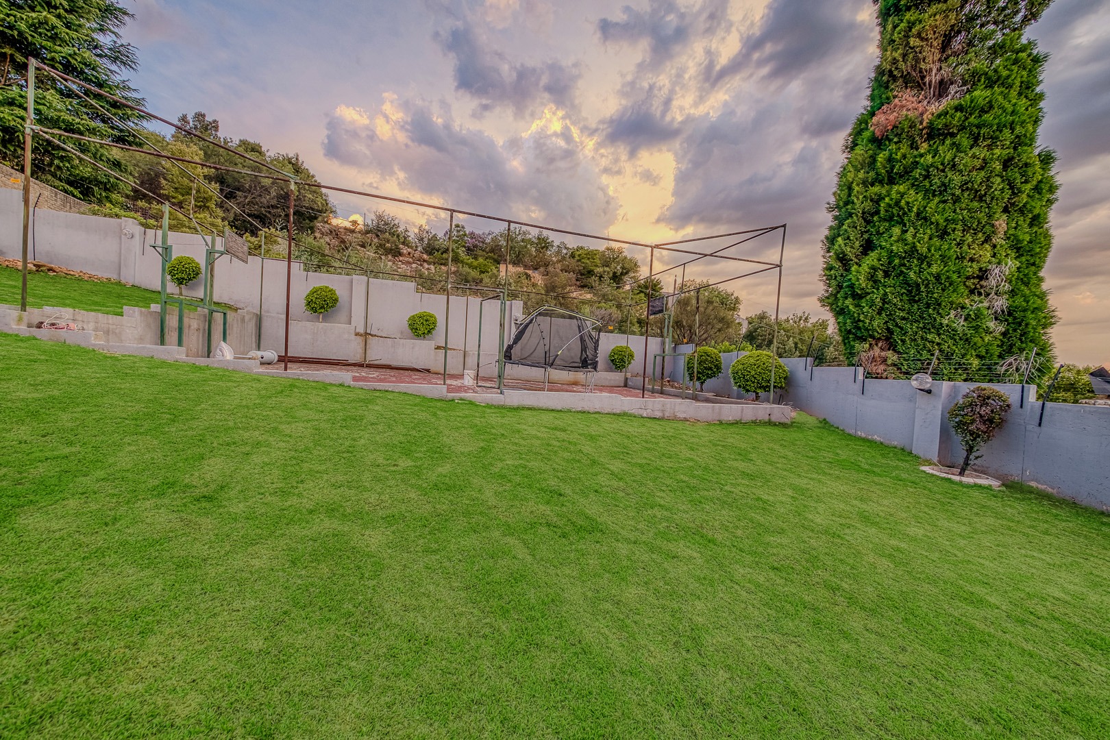 This distinguished 4-bedroom, 2.5-bathroom residence, situated on an expansive 1834 sqm erf in Helderkruin View, Roodepoort, offers sophisticated living. The property features a contemporary aesthetic with an intelligently designed split-level open-plan layout, fostering a seamless flow between its two lounges and dedicated dining area. Recessed lighting and ample natural light enhance the modern ambiance throughout the primary living zones. The well-appointed kitchen includes a breakfast bar, ample cabinetry, and a dedicated pantry, catering to both culinary enthusiasts and daily convenience. Accommodation comprises four generously proportioned bedrooms, including one with an en-suite bathroom, complemented by an additional 1.5 bathrooms. A versatile flatlet is also present on the property. Exterior amenities are designed for leisure, featuring a private swimming pool, a meticulously maintained garden, and a built-in braai area. Substantial parking includes two garages and ten open spaces. Security is paramount within this gated community, fortified by an alarm system, electric fencing, and 24-hour surveillance. Helderkruin View is a sought-after residential area in Roodepoort, known for its tranquil environment. Key Features: * 4 Bedrooms, 2.5 Bathrooms (1 En-suite) * 2 Lounges, 1 Dining Room * Private Swimming Pool & Garden * 2 Garages, 10 Parking Spaces * Gated Community with 24-Hour Security * Borehole, Water Tanks, Electric Fencing * Built-in Braai, Flatlet, Wendy House