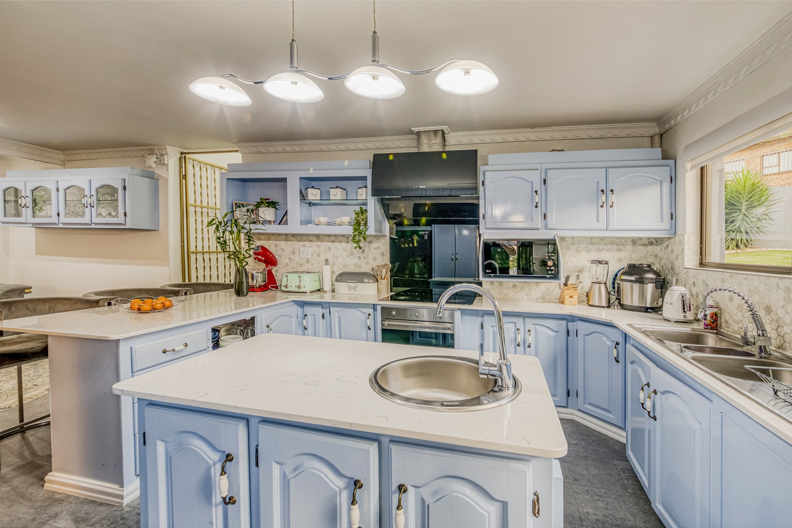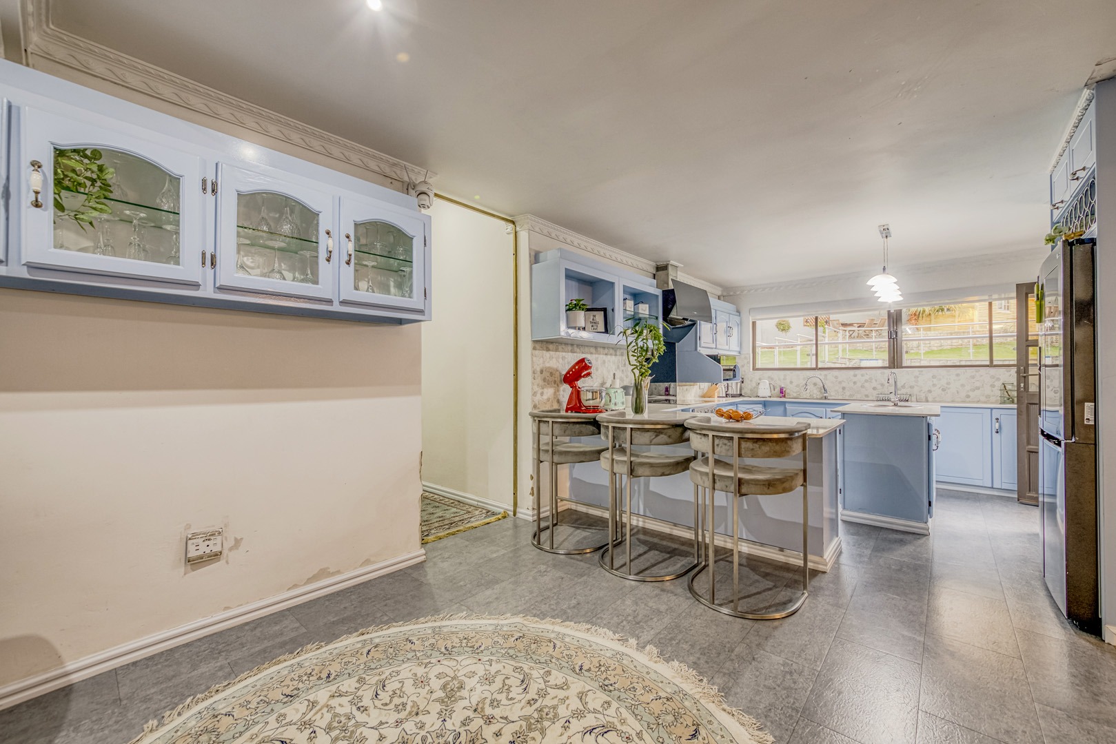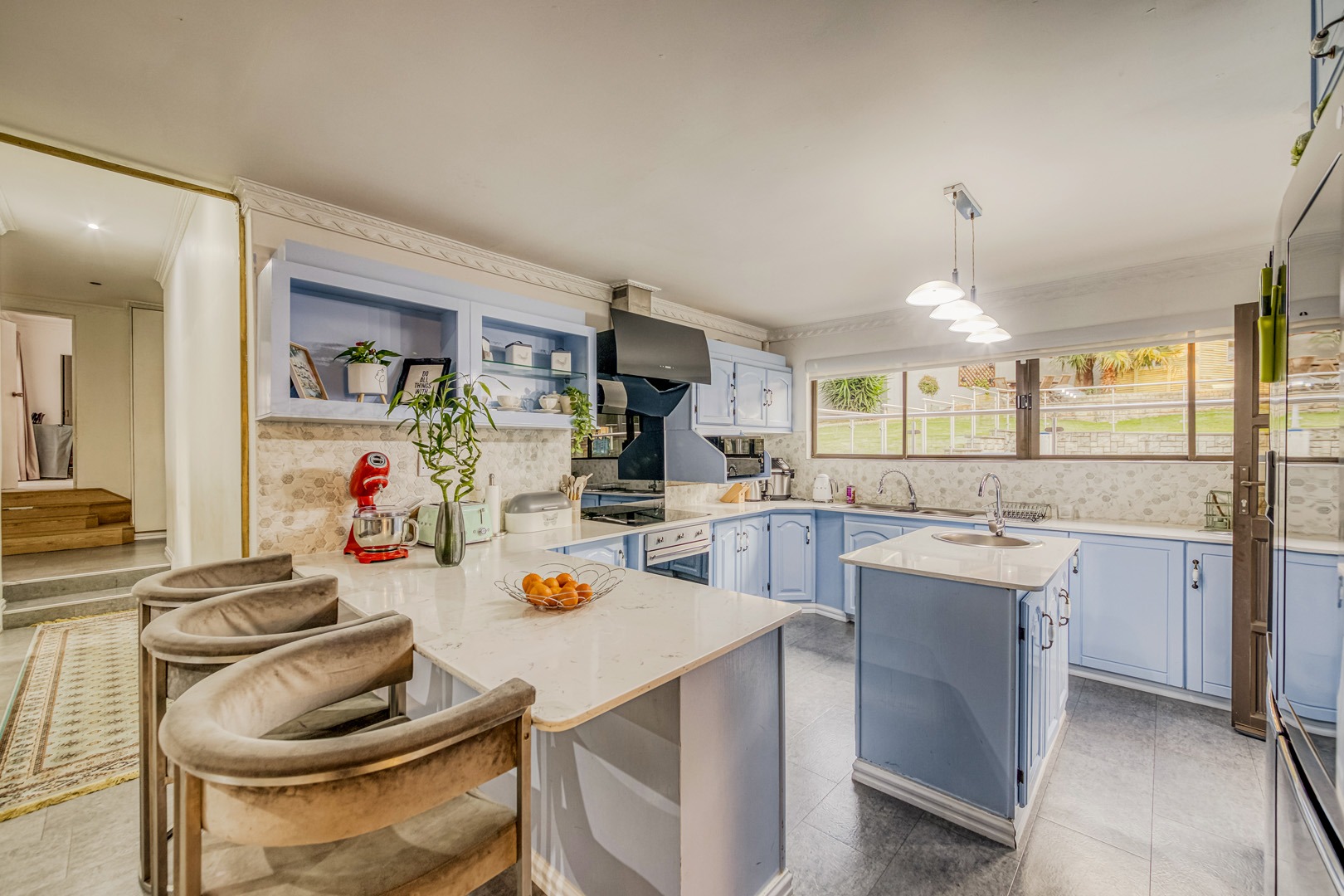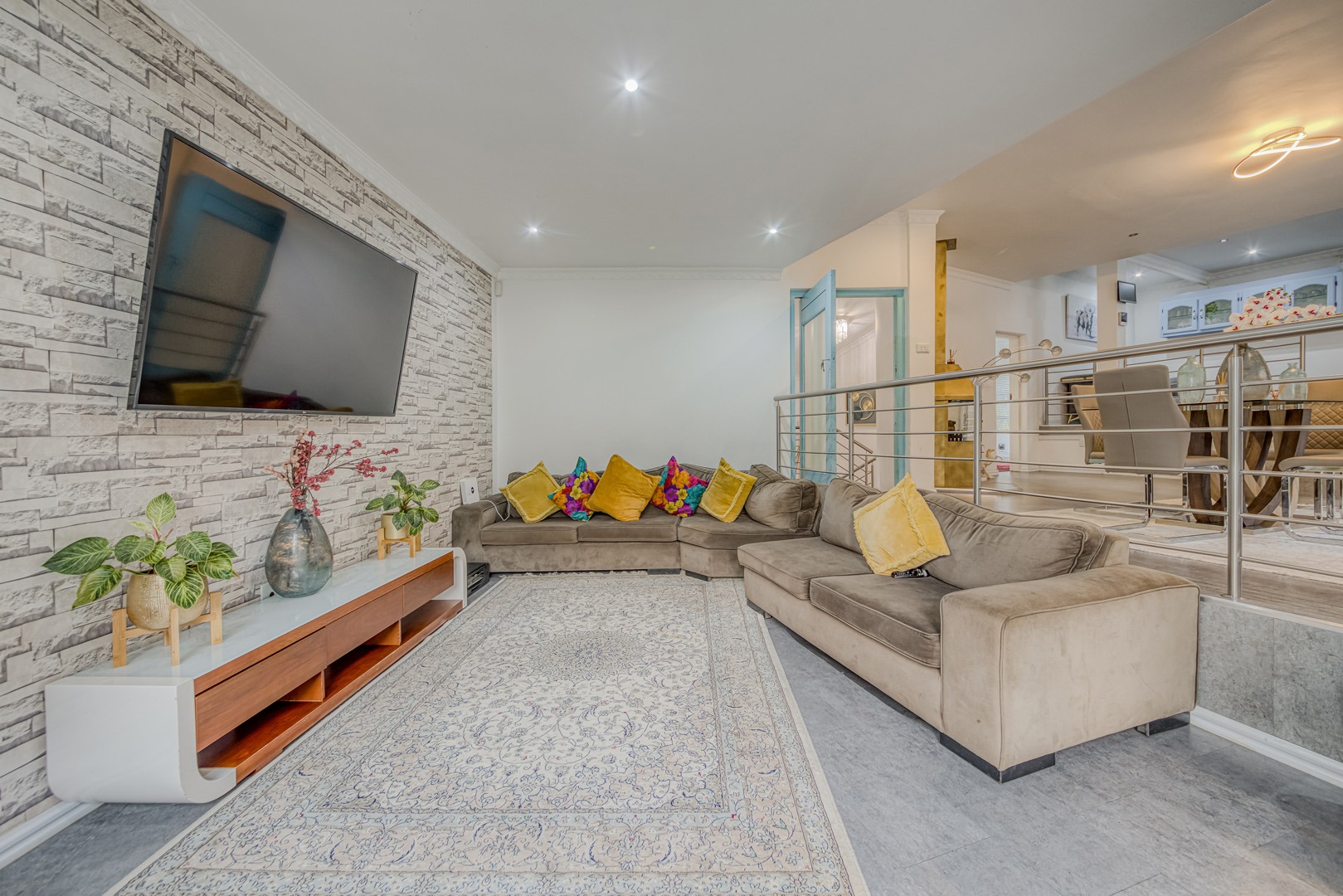 This distinguished 4-bedroom, 2.5-bathroom residence, situated on an expansive 1834 sqm erf in Helderkruin View, Roodepoort, offers sophisticated living. The property features a contemporary aesthetic with an intelligently designed split-level open-plan layout, fostering a seamless flow between its two lounges and dedicated dining area. Recessed lighting and ample natural light enhance the modern ambiance throughout the primary living zones. The well-appointed kitchen includes a breakfast bar, ample cabinetry, and a dedicated pantry, catering to both culinary enthusiasts and daily convenience. Accommodation comprises four generously proportioned bedrooms, including one with an en-suite bathroom, complemented by an additional 1.5 bathrooms. A versatile flatlet is also present on the property. Exterior amenities are designed for leisure, featuring a private swimming pool, a meticulously maintained garden, and a built-in braai area. Substantial parking includes two garages and ten open spaces. Security is paramount within this gated community, fortified by an alarm system, electric fencing, and 24-hour surveillance. Helderkruin View is a sought-after residential area in Roodepoort, known for its tranquil environment. Key Features: * 4 Bedrooms, 2.5 Bathrooms (1 En-suite) * 2 Lounges, 1 Dining Room * Private Swimming Pool & Garden * 2 Garages, 10 Parking Spaces * Gated Community with 24-Hour Security * Borehole, Water Tanks, Electric Fencing * Built-in Braai, Flatlet, Wendy House