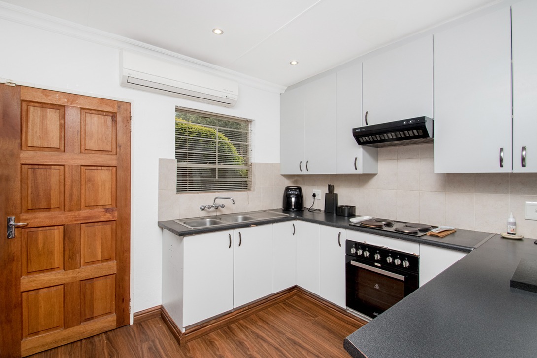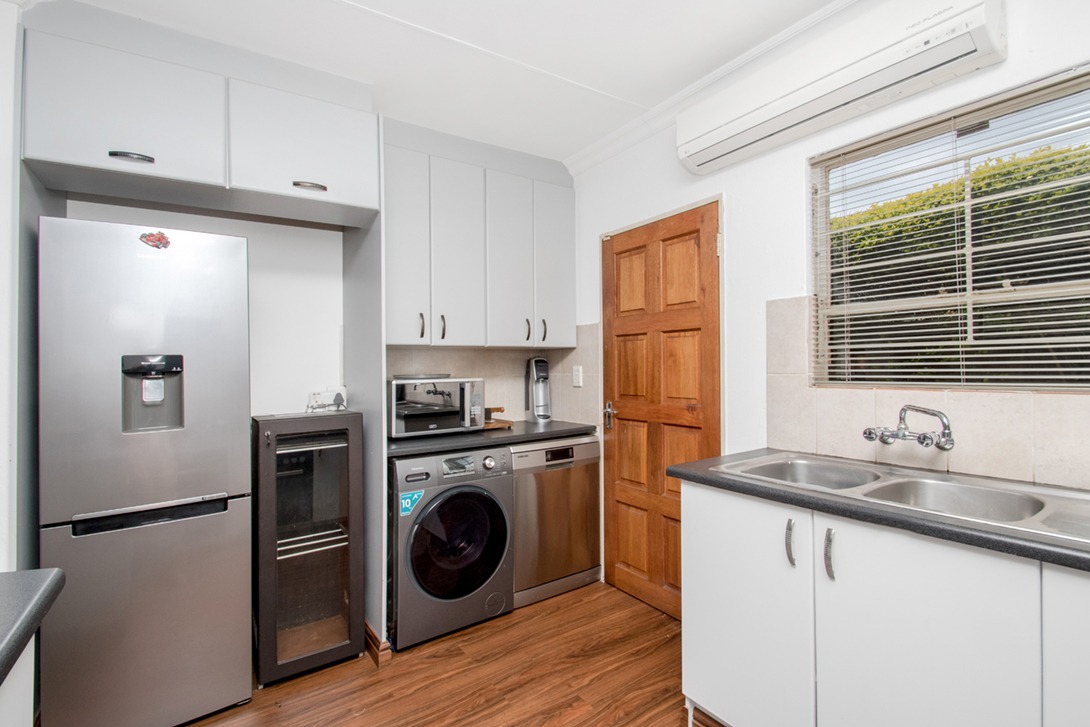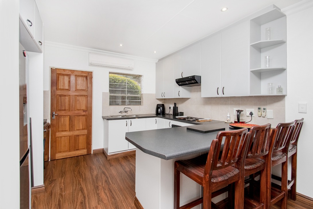 Direct access into the double automated garage an added convenience. Beautiful automated wooden garage doors . The 5kva inverter is mounted on the inside of garage, and is a massive bonus for those troubling loadshedding and power outage times (only stove and geyser not connected). The unit is fibre-ready.