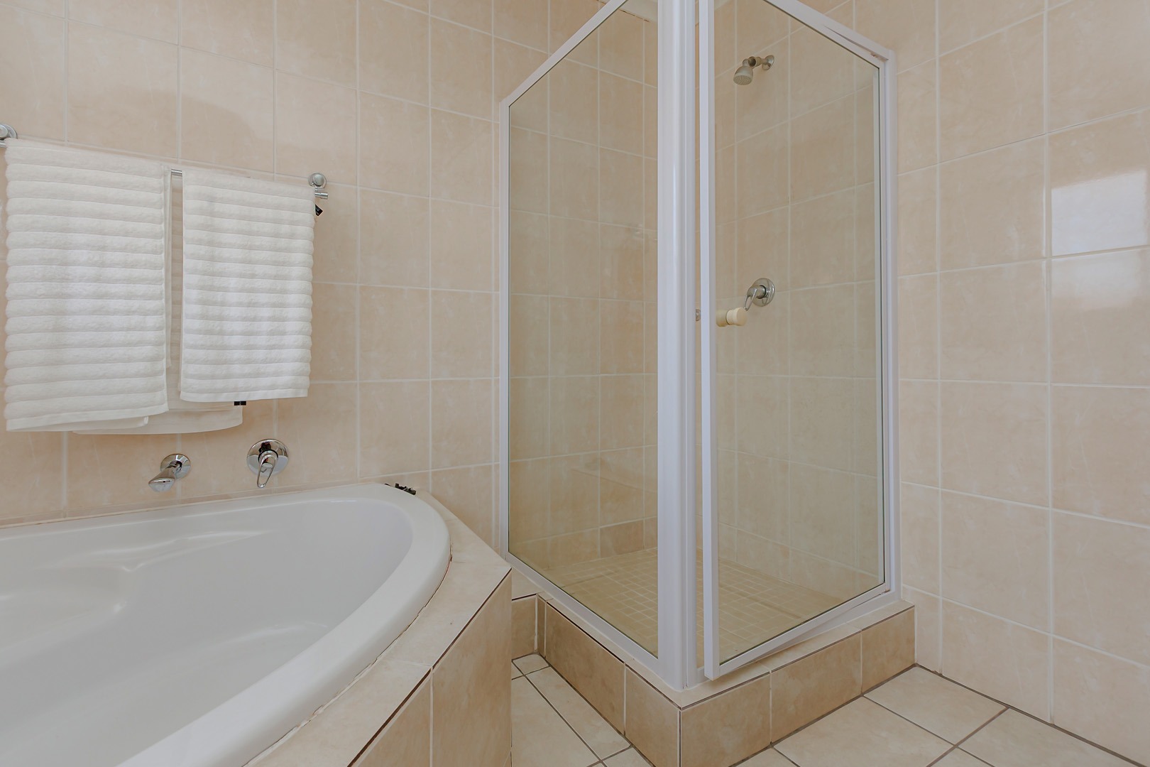 The other two bedrooms easily fit double beds and share a second bathroom.