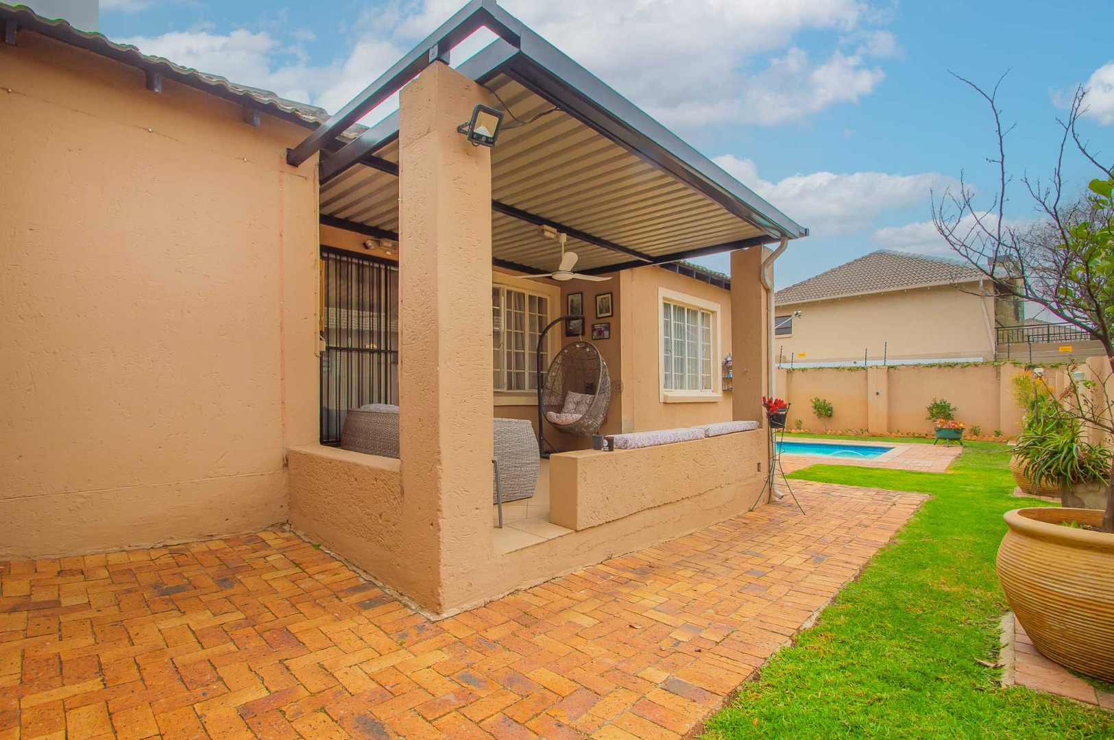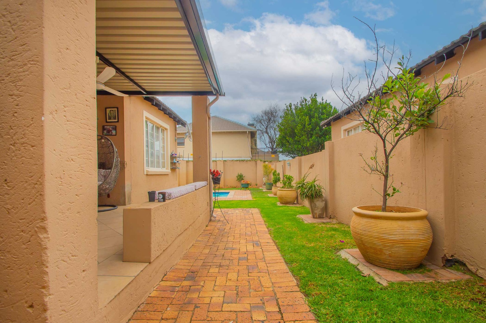 Step through the living space and onto the outdoor covered, entertainment area, featuring a wrap-around garden and a sparkling swimming pool. This oasis is ideal for hosting summer braai’s, pool parties, or simply enjoying a quiet afternoon in the sun.