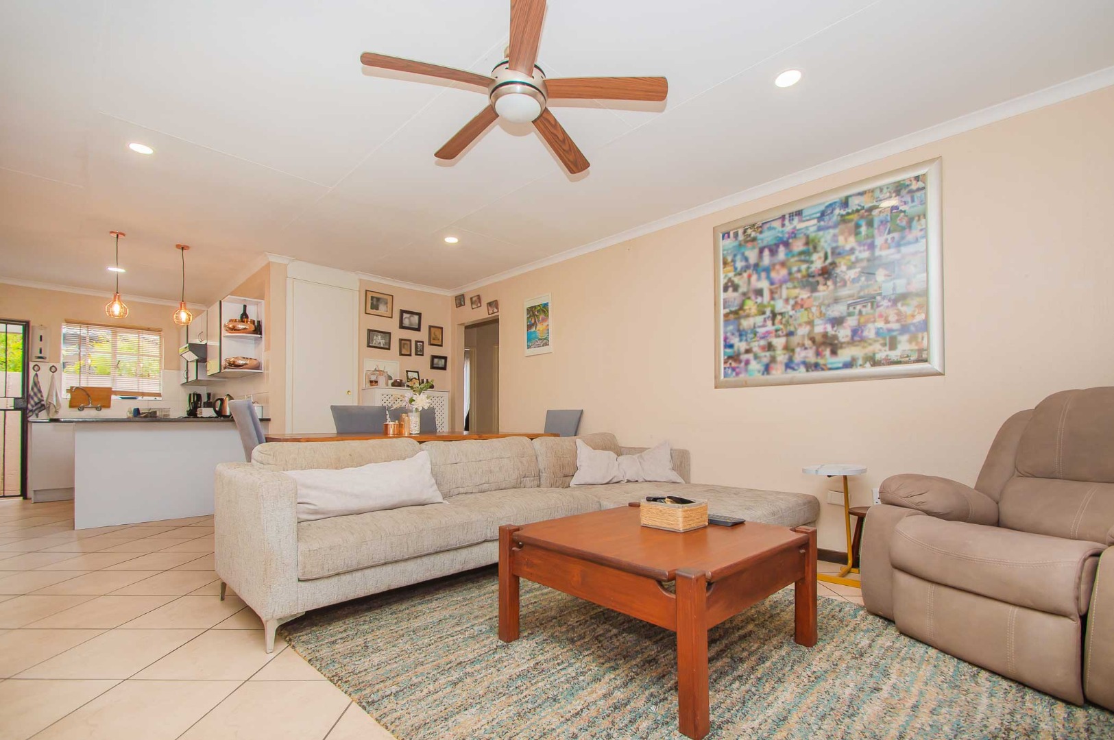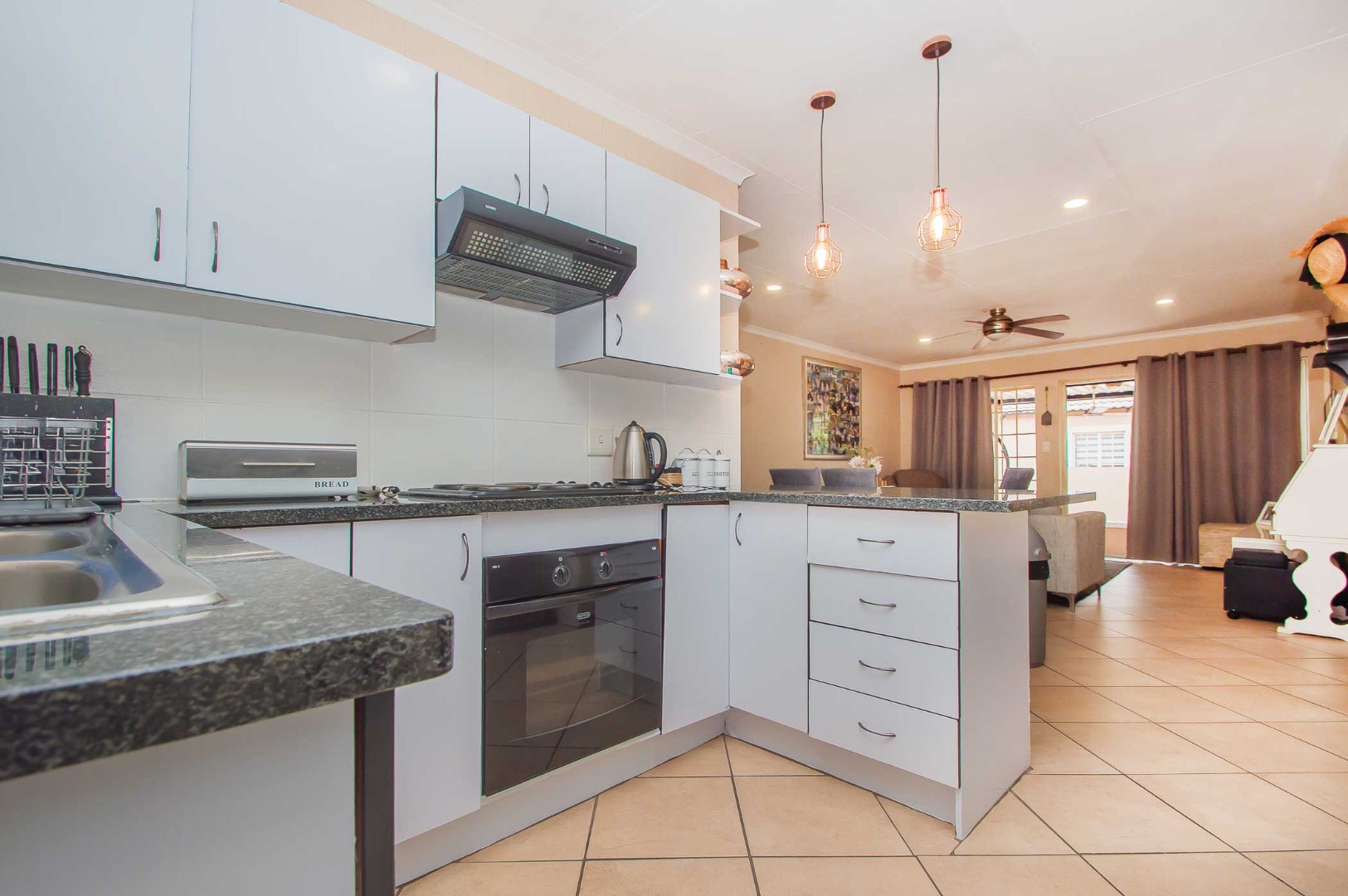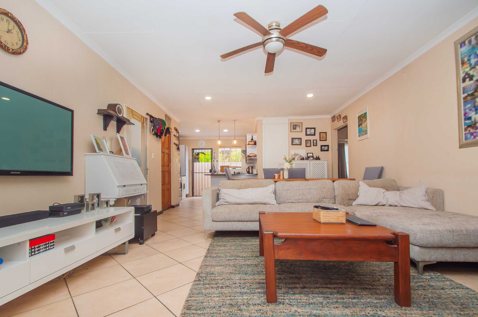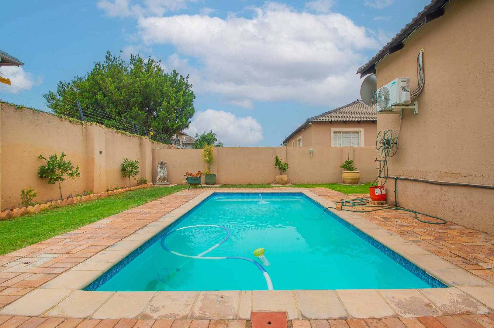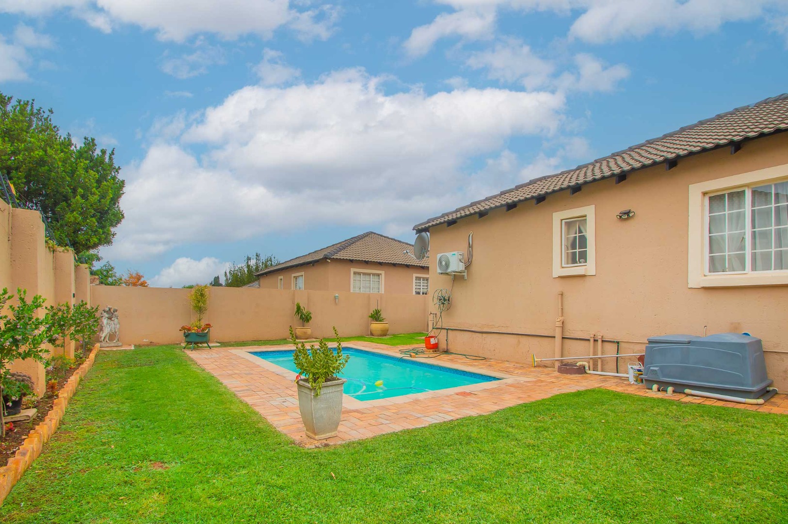 Step through the living space and onto the outdoor covered, entertainment area, featuring a wrap-around garden and a sparkling swimming pool. This oasis is ideal for hosting summer braai’s, pool parties, or simply enjoying a quiet afternoon in the sun.