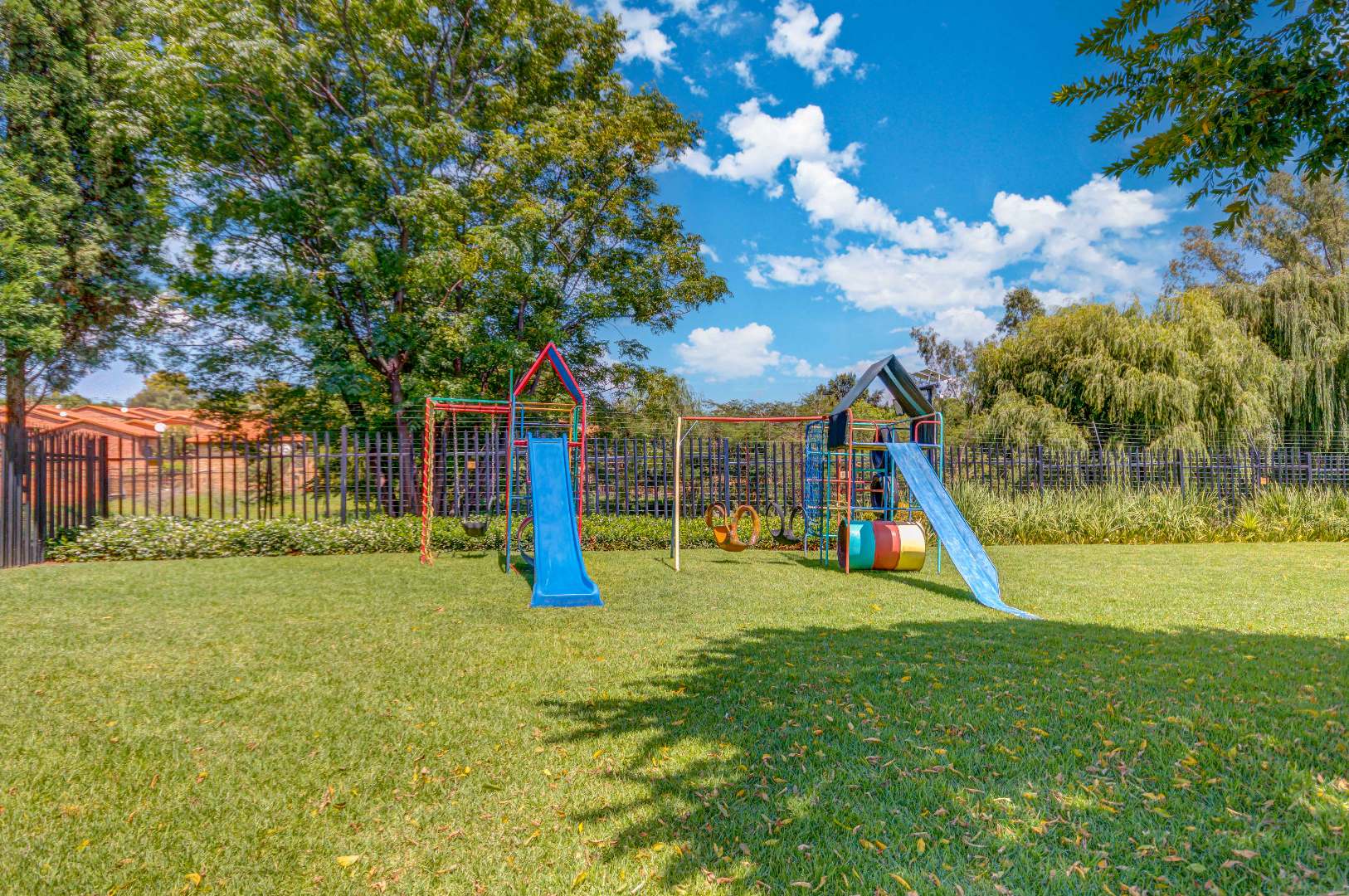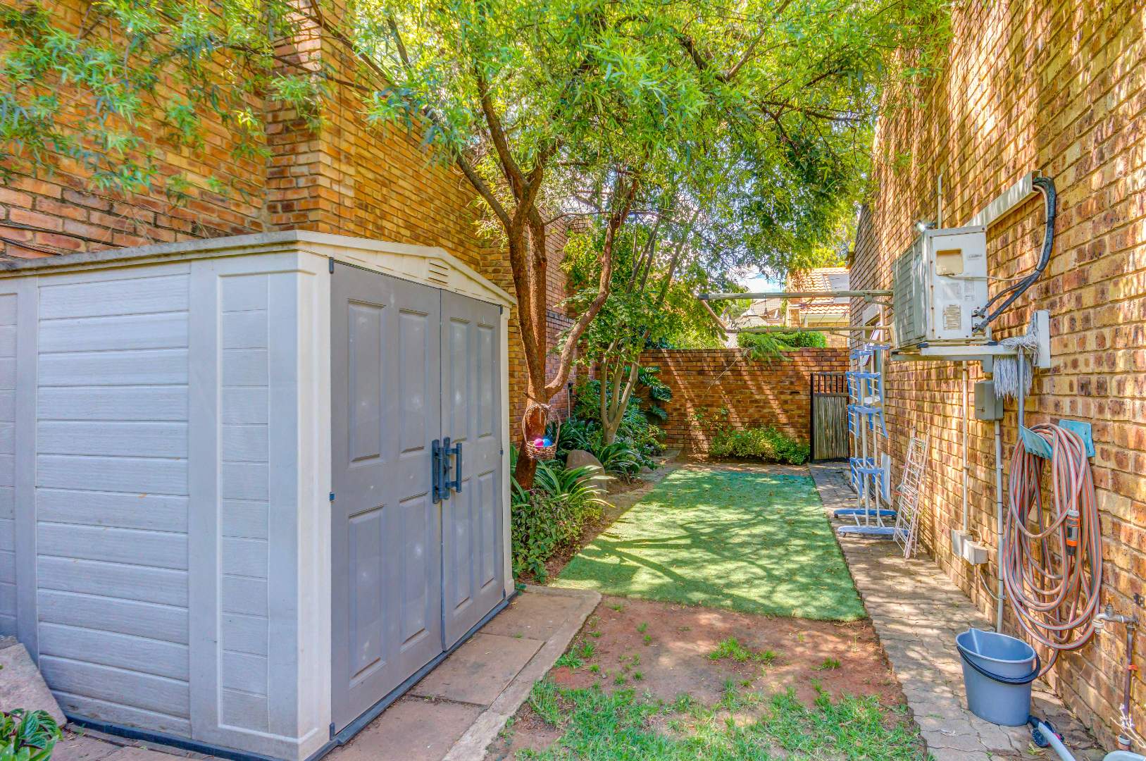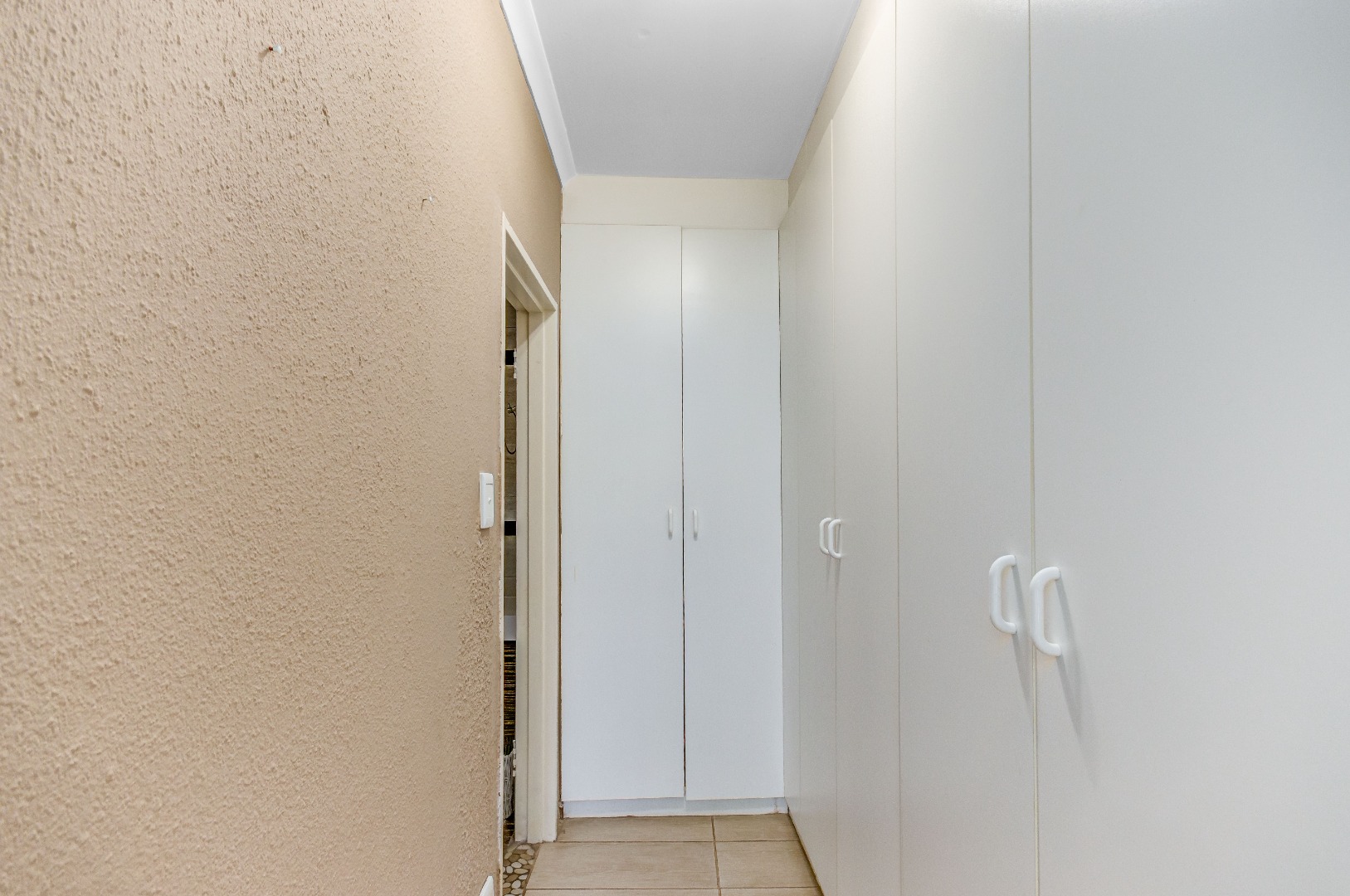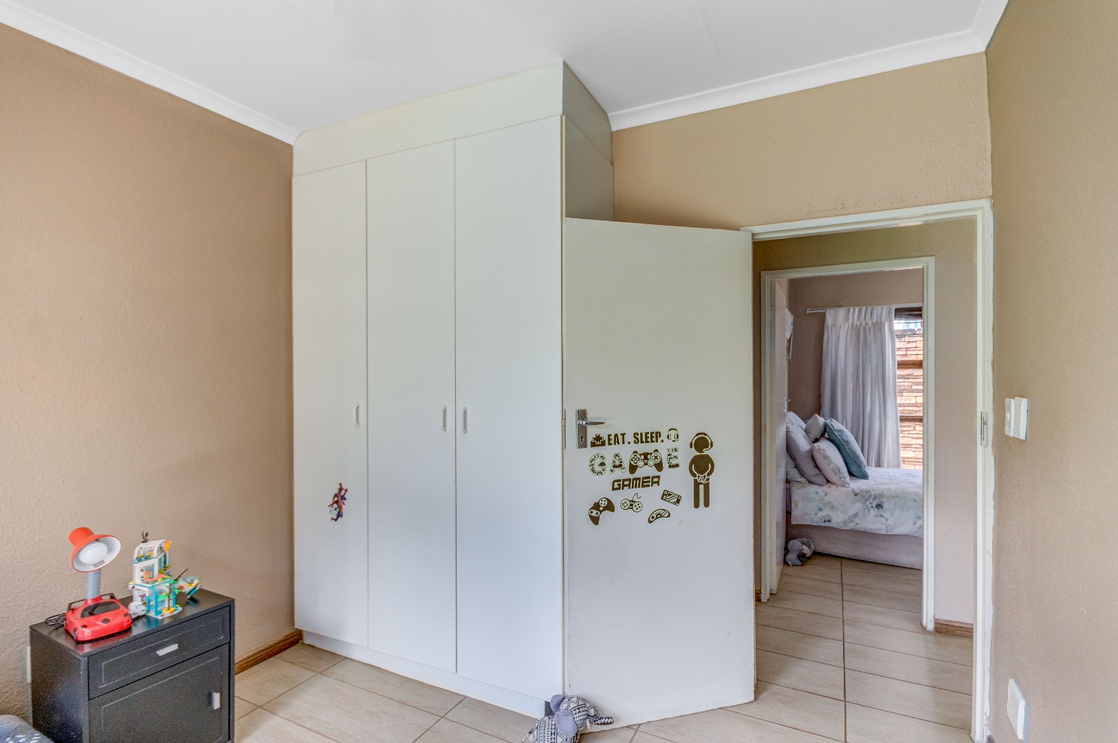 The property boasts three well-sized bedrooms, all with built-in cupboards and an abundance of natural light. The main bedroom is a private retreat, complete with air-conditioning and a full en-suite bathroom. The second bathroom is fitted with a shower, conveniently serving the remaining bedrooms.