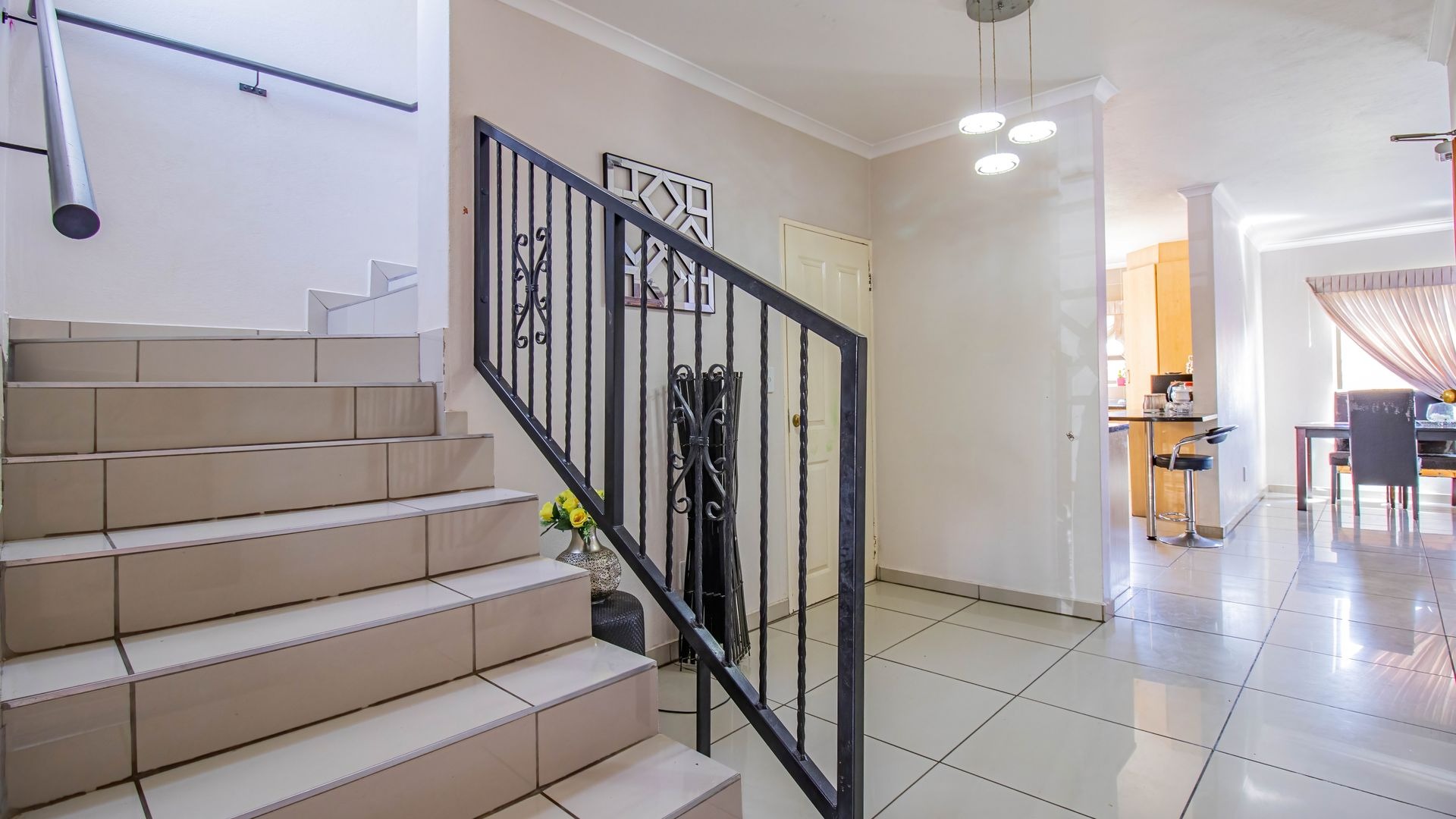 Upstairs, the home offers three well-proportioned bedrooms, all designed to provide comfort and privacy. The main bedroom features an en-suite bathroom and a private balcony, creating a peaceful retreat. An additional bathroom services the remaining bedrooms.
