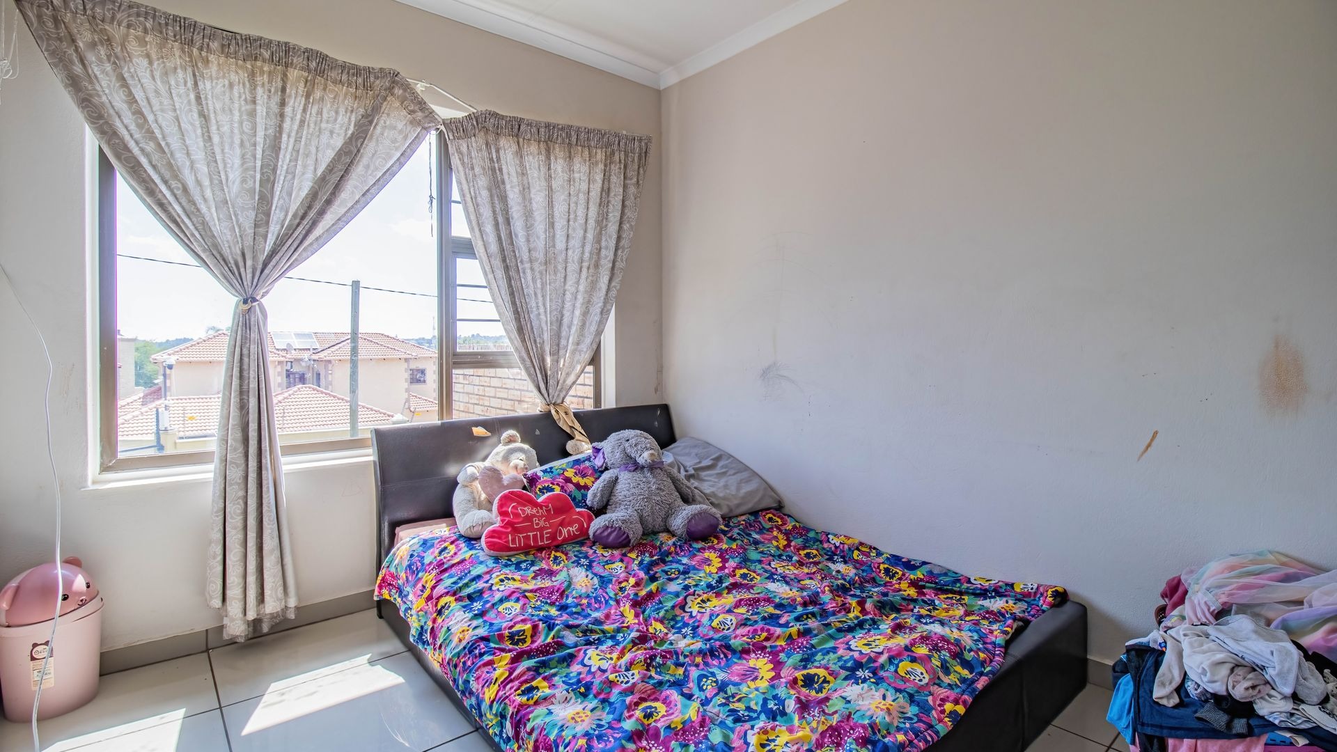 Located within a secure estate, residents enjoy access to a communal swimming pool and a park for children, creating a well-rounded lifestyle environment.
