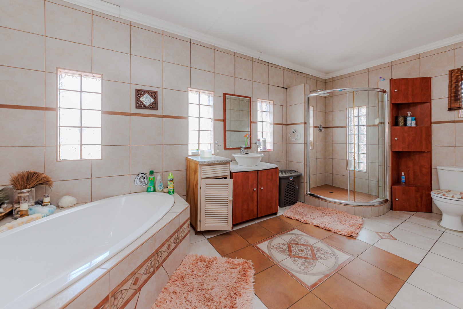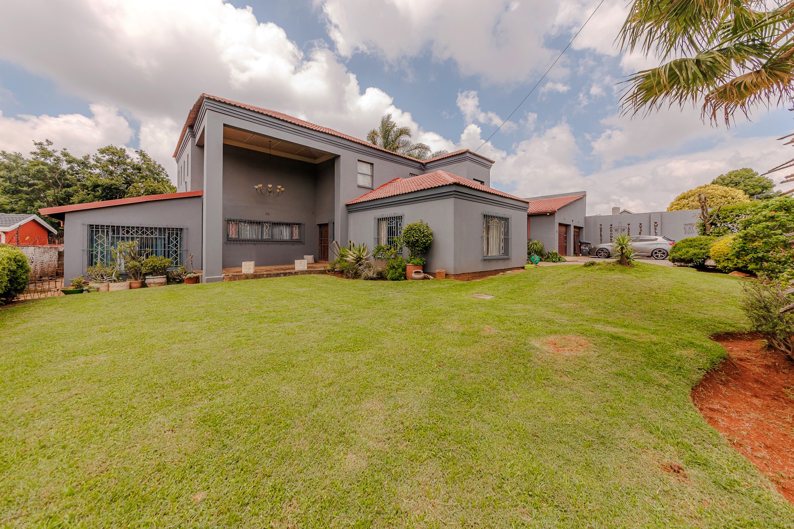 Presenting an exceptional residential offering in the esteemed suburb of Horison Park, Roodepoort, this property epitomises sophisticated family living within a generous 1031 square metre erf. The residence boasts a contemporary architectural aesthetic, characterised by a modern grey exterior complemented by a classic red tiled roof, creating a distinguished first impression. A spacious paved driveway leads to a double garage, providing ample secure parking for two vehicles, with additional capacity for four more vehicles on the property.