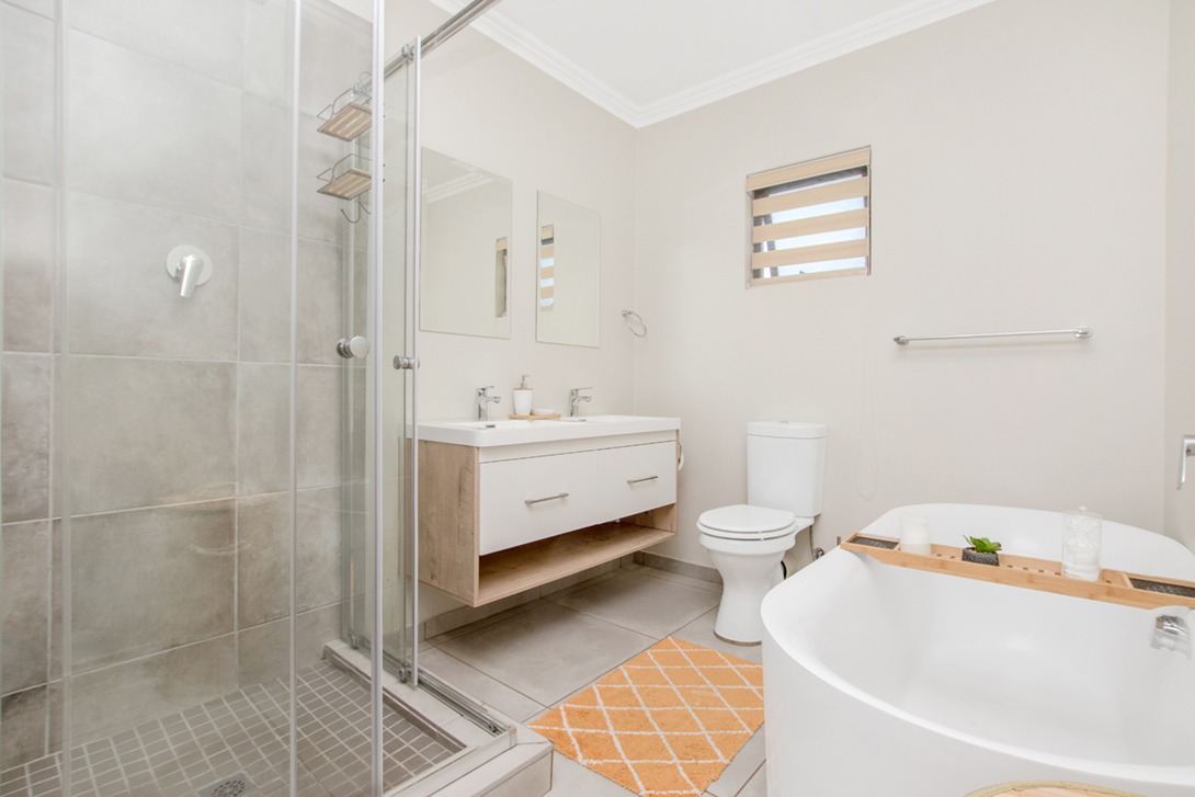 Accommodation includes four well-proportioned bedrooms, two of which benefit from private en-suite bathrooms, offering personal retreats for residents. An additional guest toilet ensures convenience for visitors, while all bathrooms feature modern fixtures and a clean aesthetic. This beautiful home offers power back up that will ensure that your power stays on during load reduction.