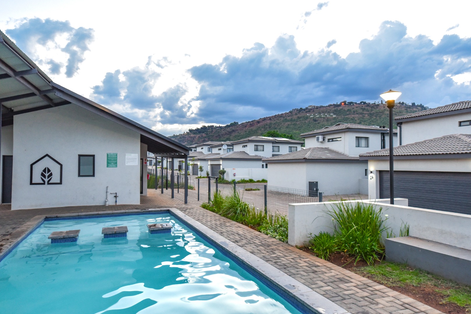 Residents enjoy 24-hour security, a clubhouse, and a swimming pool, all impeccably maintained.