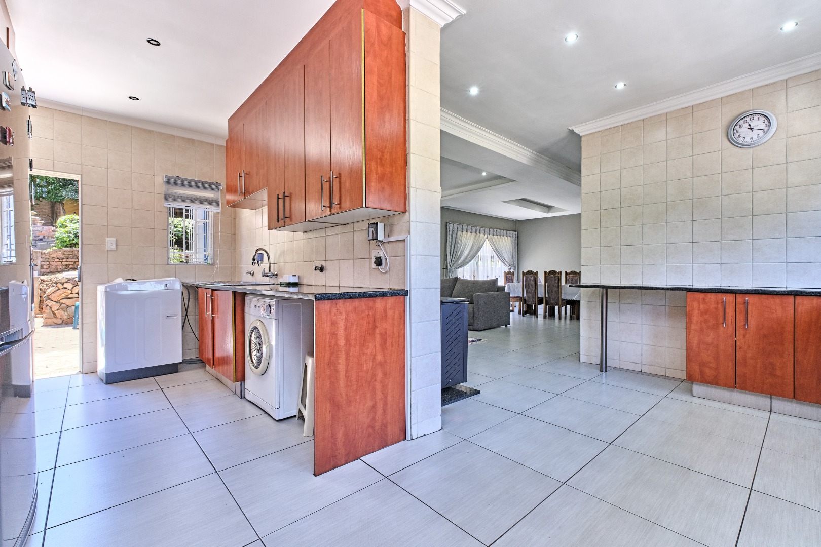 Security is a priority, with features such as security bars on windows and a secure gate providing peace of mind. This Roodepoort location offers a tranquil suburban lifestyle with convenient access to local amenities, schools, and major routes.